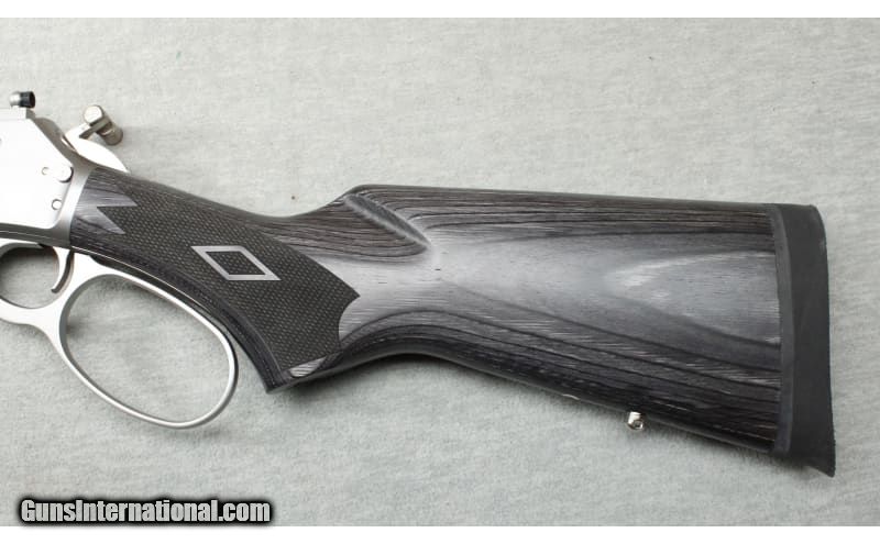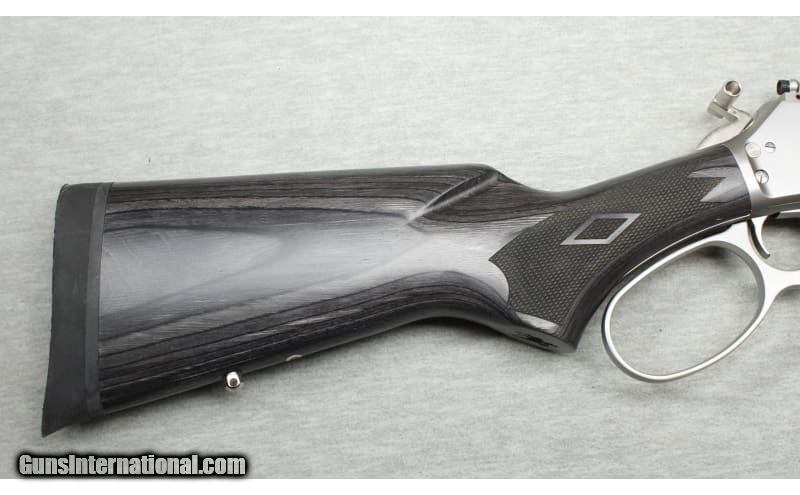 Description: Appears as new with original box. Marlin lever action hunting rifle, 16" threaded barrel with full length mag tube, stainless metal, smooth large loop lever action and ghost ring sights. Checkered laminated gray wood forend and butt stock with Marlin recoil pad and sling swivel mounts. .45-70 Government SOLD Chambers: Lever action Metal Condition: As new Wood Condition: As new Bore Condition: Bright Barrels: 16 Triggers: Factory Stock Dimensions: 13 1/2" LOP Fore End: Checkered Butt Pad: Marlin pad Sights: "Ghost ring rear, ramp front sights Item Location: La Vista, NE |