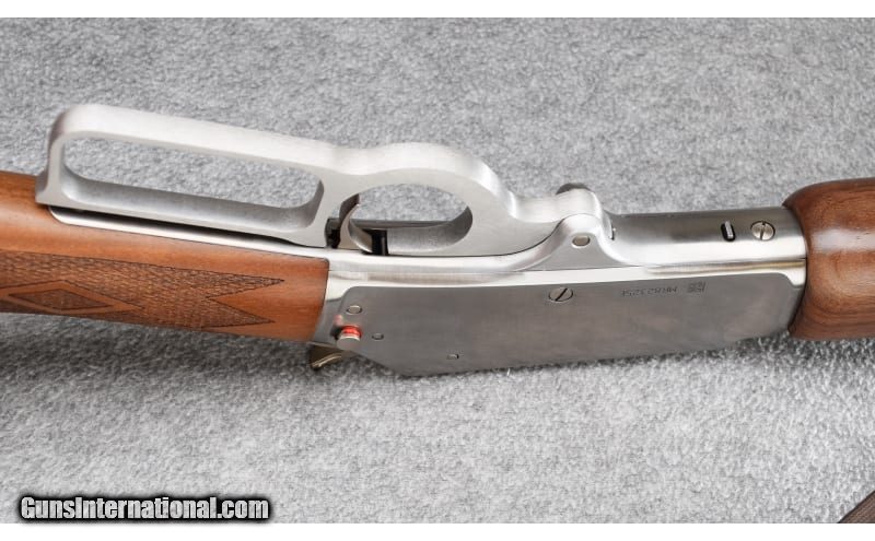 Description: This 1895 GS Marlin Guide Gun remains in excellent overall condition showing little use of any kind. Wood, stainless steel and bore are all excellent. Gun is complete with original box, Butler Creek sling, manual and lock. Beautiful gun! .45-70 Government SOLD Metal Condition: Excellent Wood Condition: Excellent Bore Condition: Excellent Barrels: 18 1/2 Triggers: Factory Stock Dimensions: 13 1/2" LOP Fore End: Checkered Walnut Straight Grip - Checkered Walnut Forend Butt Pad: Marlin Vented Black Rubber Butt Pad Weight: 7 lbs Sights: Hooded Post & Bead Front - Adjustable Buckhorn Rear - Factory Drilled & Tapped Item Location: Wheeling |
