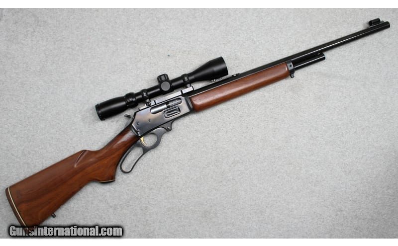 Description: Marlin Model 1895S lever-action rifle chambered in .45/70 Government. "JM" marked, features include a 21-1/2 inch blued barrel and blued receiver. Comes with a mounted unbranded 3-9x4mm rifle scope and no other accessories. .45-70 Government SOLD Metal Condition: Good with Handling Marks and Some Pitting Wood Condition: Very Good with Minor Handling Marks Bore Condition: Bright And Clear with No Pitting Barrels: 21.5 inch Stock Dimensions: 13-5/8 inch LoP Fore End: Smooth Walnut Butt Pad: Rubber Weight: 7 lbs 15 oz Sights: Adjustable Folding Rear and Hooded Front with Mounted Rifle Scope Item Location: Fort Worth, TX |