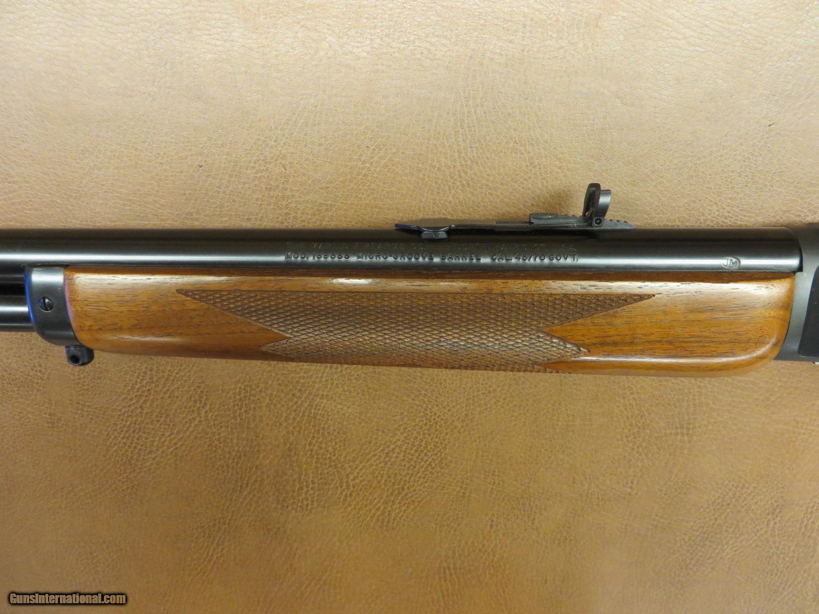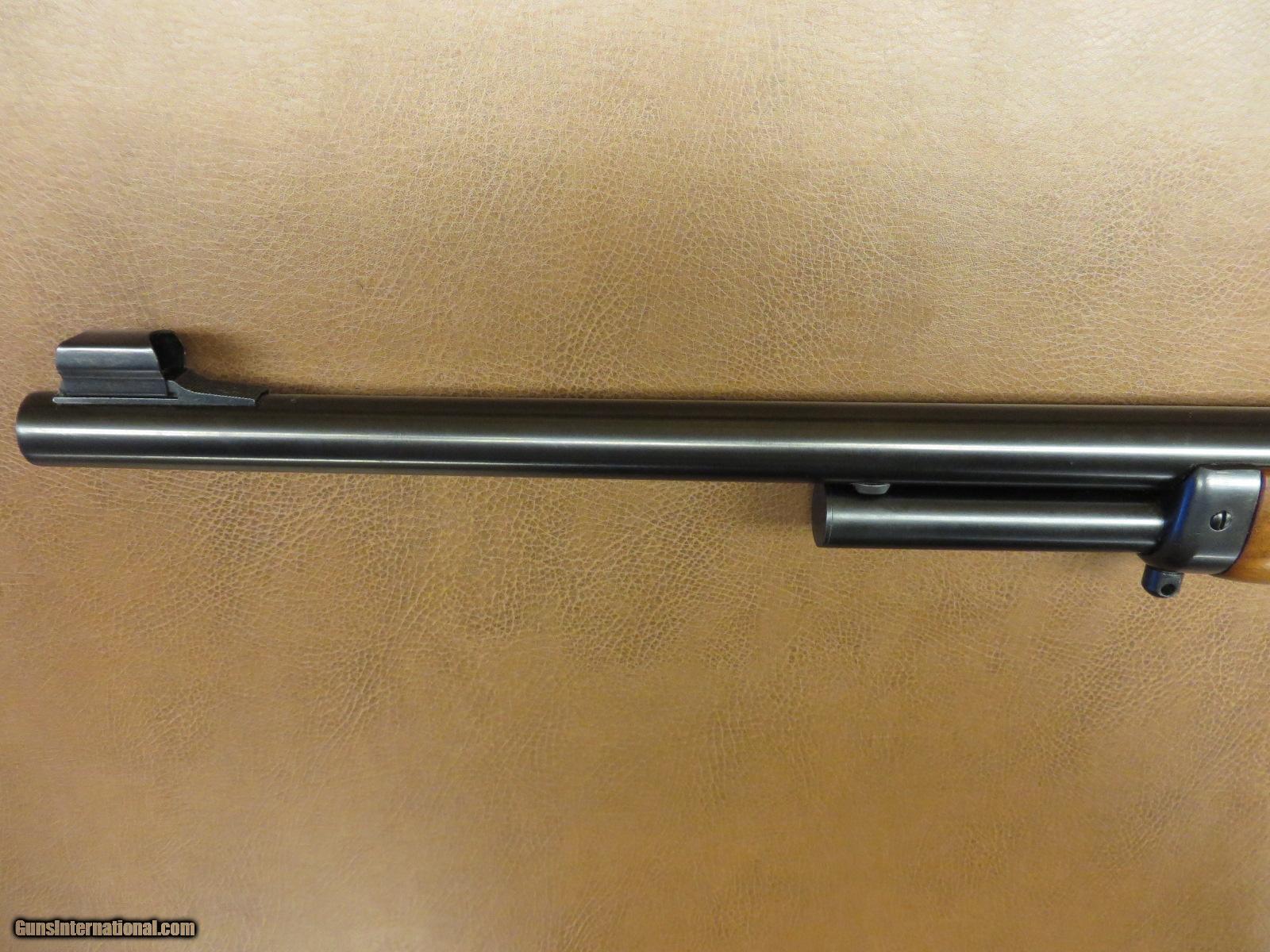 Description: 45-70 Gov't has 22 inch barrel with original sights including the front hood. 3/4 magazine. Made in 1994 in North Haven Ct. with JM proofed barrel. Hammer extension. Checkered walnut with sling swivel studs, pistol grip cap, and original rubber butt pad. All in 99% condition. SOLD |