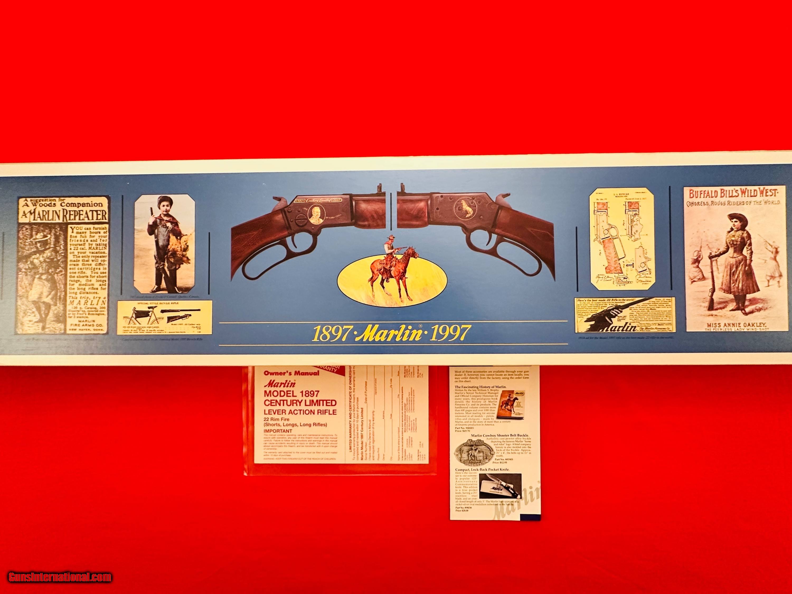 Description: Marlin Commemorative rifle produced to celebrate the 100th anniversary of the original Marlin Model 1897 22lr. Original box and paperwork, excellent condition. Please add $50 shipping and insurance. Model: Marlin 1897 Barrel Length: 24” Chambers: 22S,L, LR Stock: Checkered walnut Price: $1,450.00 Buy Now Contact Seller |