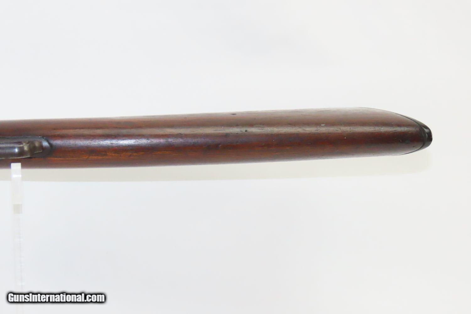 Description: MARLIN Model 1897 Lever Action .22 S L LR Rifle TAKEDOWN C&R Short Long Blue with Casehardened Receiver In .22 Caliber! Here we present a Marlin Model 1897 Lever Action .22 Rifle, made circa 1905-1922 in New Haven, Connecticut. This rifle had a production run from 1897 to 1922. Sometime during 1905, Marlin changed the model designation on the tang from “Marlin 1897” to “Marlin 97”, making this rifle post-1905. John Mahlon Marlon, founder of the company, served as a machinist with Colt Patent Firearms of Hartford prior to starting his own firearm manufacturing company in New Haven in 1863 during the American Civil War, where he concentrated primarily on production of small, single shot .22 deringers. This rifle sports a German silver blade front and sporting type rear sight, along with a full length magazine. It has a smooth forearm and a straight grip stock with an iron forend cap and a factory hard rubber buttplate. The tang of the receiver is marked “MODEL 97”. The overall condition is very good. Nice blued finish turned plum. The action is strong. The bore is semi-bright and in good condition. This example is drilled and tapped for a tang-mounted rear aperture sight. This is a fantastic example of the Marlin M1897 that would be great for hunting squirrels and rabbits, or just taking out to do a little “plinking”. This firearm is classified as a Curio & Relic. Barrel is 24 inches in length. Caliber: .22 Short, Long, Long Rifle Overall condition as seen in photos. Very Fast. Very Safe. FREE SHIPPING. Will need to be sent to your local FFL or C&R licensee. This firearm is classified as a Curio & Relic. Guaranteed AUTHENTIC & Includes CERTIFICATE OF AUTHENTICITY. ancestryguns $1250 #20248 SOLD Curio/Relic: Yes |