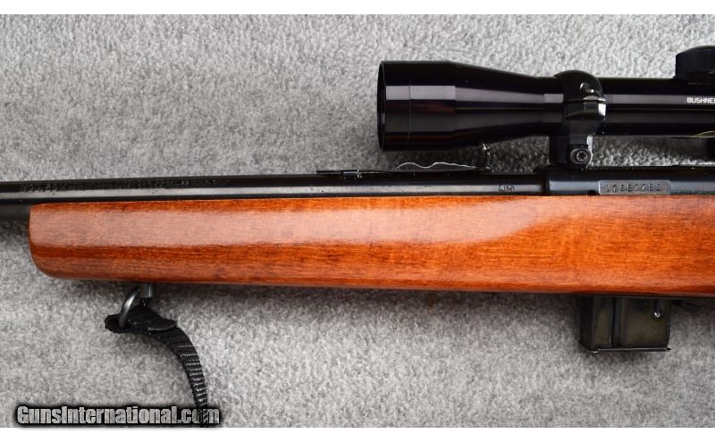 Description: This Marlin Model 25M is in excellent overall condition showing only light use. Wood is solid with few scratches and some loss of color in high contact places like cheek and left hand forend. Blue is very good with a small amount of oxidation on barrel and bore is excellent. This is a "JM" stamped gun. No box. Complete with period sling and Bushnell Sportview scope. .22 MAG SOLD Metal Condition: Very Good Wood Condition: Very Good Bore Condition: Excellent Barrels: 22 Triggers: Factory Stock Dimensions: 13 5/8" LOP Fore End: Uncheckered Walnut Finished Hardwood Semi Pistol Grip - Uncheckered Walnut Finished Hardwood Forend Butt Pad: Checkered Synthetic Butt Plate Weight: 7 lbs Sights: Original Adjustable Ramp Rear - Bushnell Sportview 3-9x Scope Item Location: Wheeling |