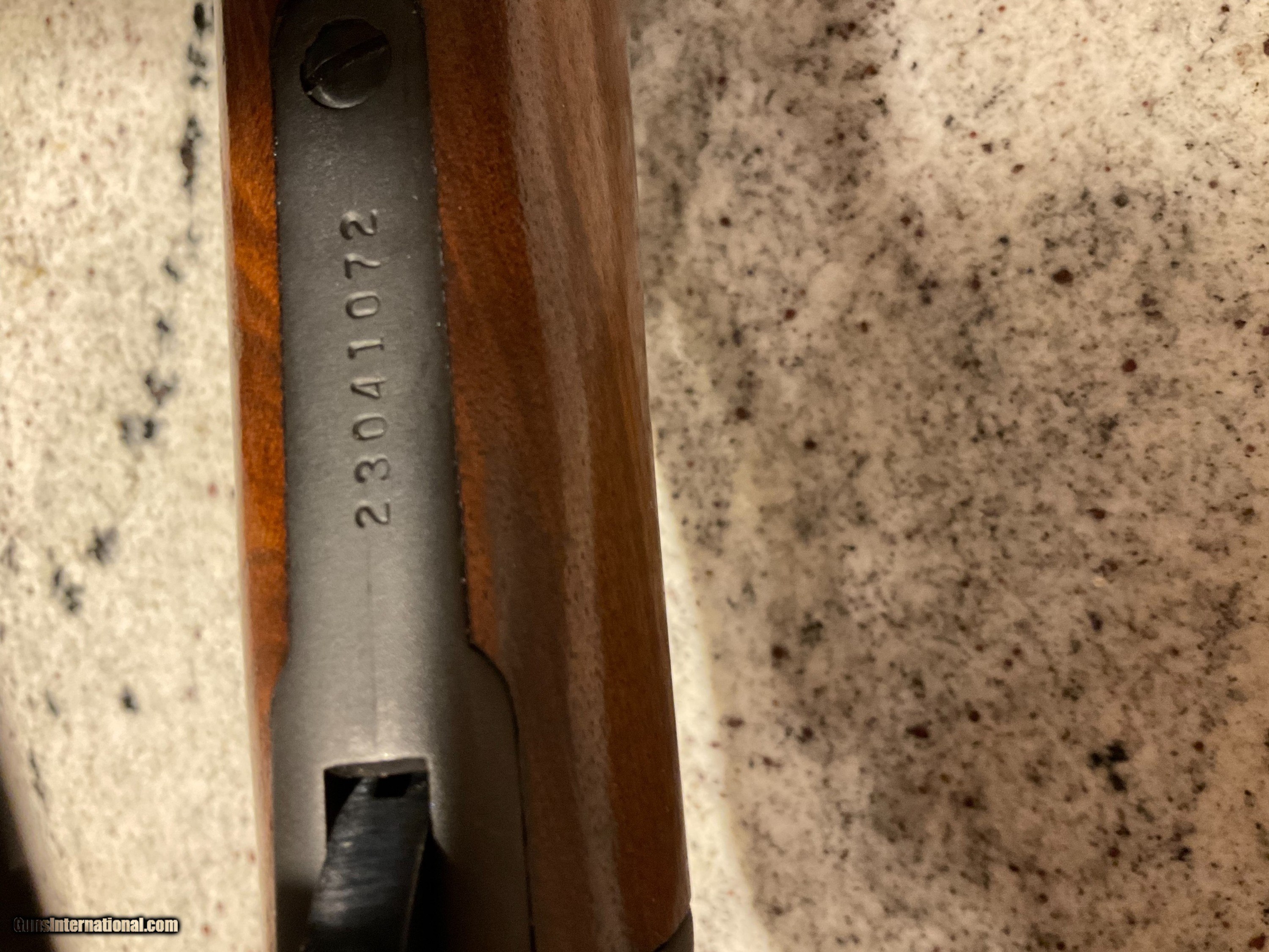 Description: This rifle is really OUTSTANDING. The condition is great for a 45 year old firearm. Please check out the photos!! Manufactured in 1977, the 20" barrel is stamped with the JM. Serial # 23041072. All the wood is in great condition showing no real wear at all. The metal is 100% blue and showing only one very insignificant single scratch on the left side of the receiver. Sports the gold trigger. Bore is clean and shiny. Mechanically sound in all functions. Comes with a covered Bushnell Sportview Scope 3x9x32. Shipped/Insured to your FFL in lower 48 for $50. SOLD |