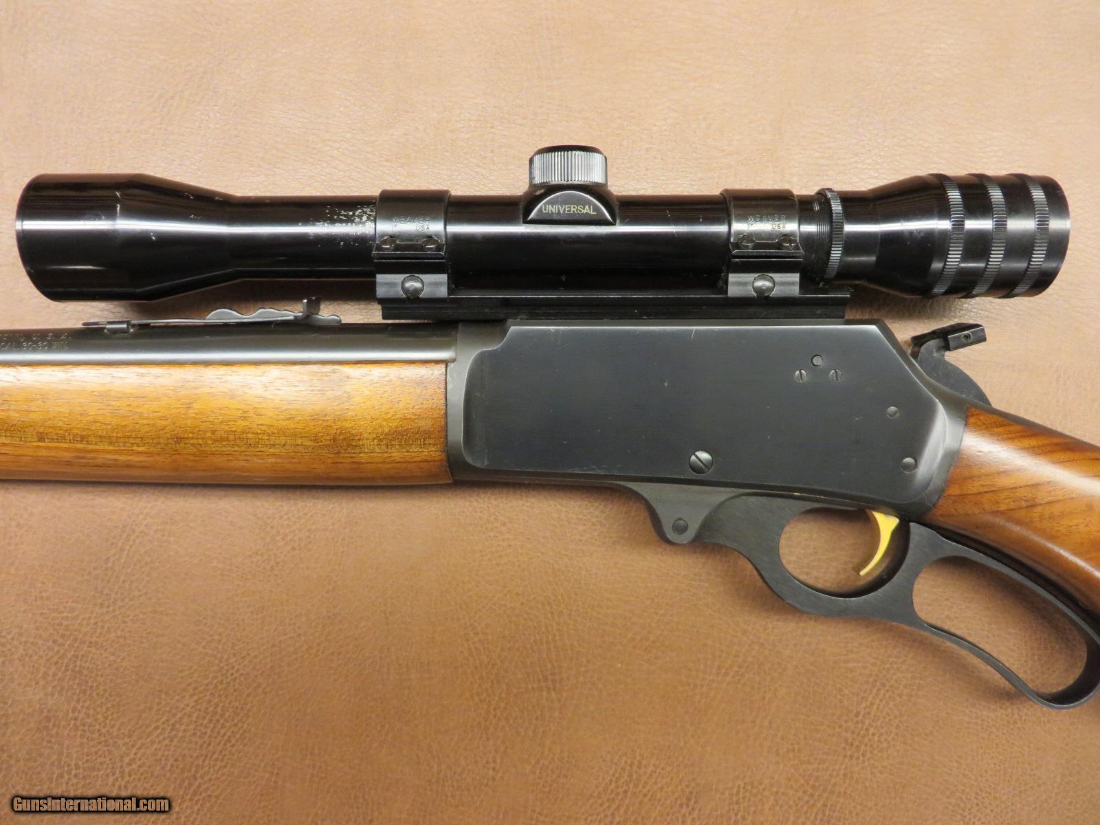 Description: 30-30 has 20 inch barrel with original sights missing the front hood. Universal 4 power scope in Weaver mounts. Made in 1970 with gold trigger. Non checkered walnut with original butt plate, pistol grip cap, and 1870-1970 medallion on right side of stock. Blue on magazine tube is about 65%. The remainder of blue and wood finish is 95%+. SOLD |