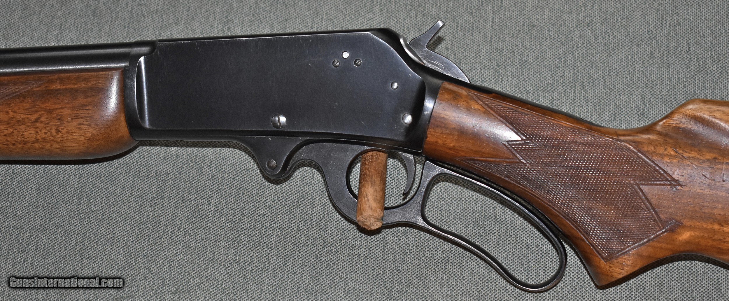 Description: Scarce Marlin model 336A deluxe rifle in 30-30. Built in 1949,this rifle is in great all original condition. It retains 98% of the original blue and 99% of the wood finish. The 24" barrel has a mint bore with sharp well defined rifling. The stock and forend are hand checkered and show no wear at all. The receiver has the "waffle top" matting. The rifle comes with a period correct leather sling installed. A hard to find configuration in true collector condition. Marked "JM" on the barrel. C&R eligible. SOLD Curio/Relic: Yes Rifle Caliber: .30-30 Winchester Manufacturer: Marlin Model: 336A Deluxe Serial Number: F38885 Barrel Length: 24 Condition: mint Metal Condition: mint Wood Condition: mint Bore Condition: mint Action: lever Butt Pad: factory buttplate Manufacture Date: 1949 |