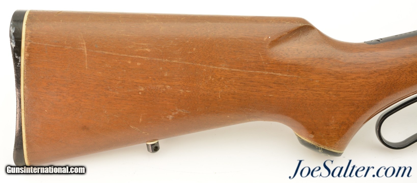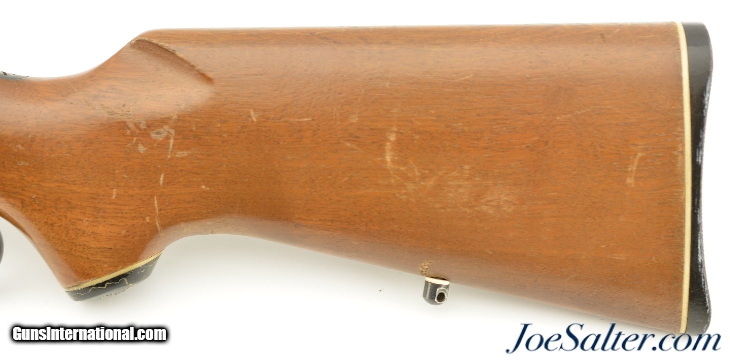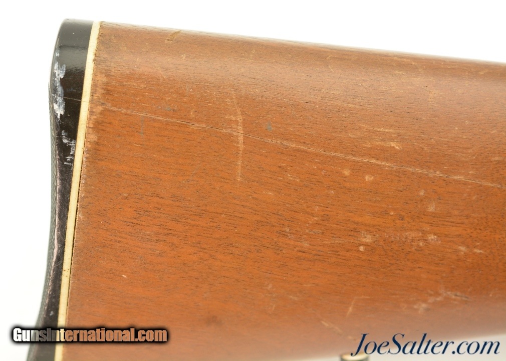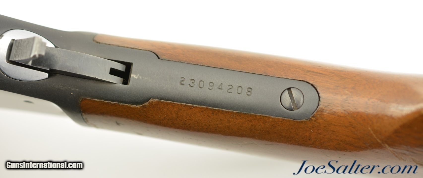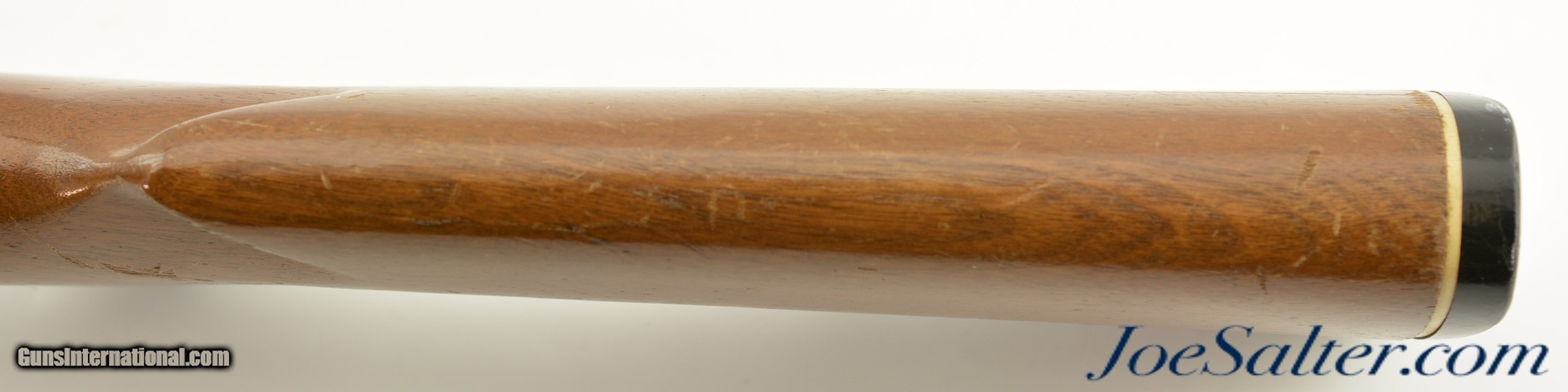 Description: Serial #23094208, .35 Rem., 20" barrel with an excellent, bright bore. This is a 1977-made carbine that has retained about 97-98% of the original blue finish, with a few small spots of silvering along some of the exposed edges, as well as a few small areas of finish loss on the left side of the receiver. The carbine still has the original iron sights fitted (including the sheet metal front sight hood), and also has a Weaver rail mount on the top of the frame. The walnut forend and buttstock are in good-very good shape with numerous handling marks and surface blemishes present throughout the original varnish, heaviest along the buttstock. The carbine is further equipped with QD swivel studs, and is in very good condition overall. FFL SOLD |