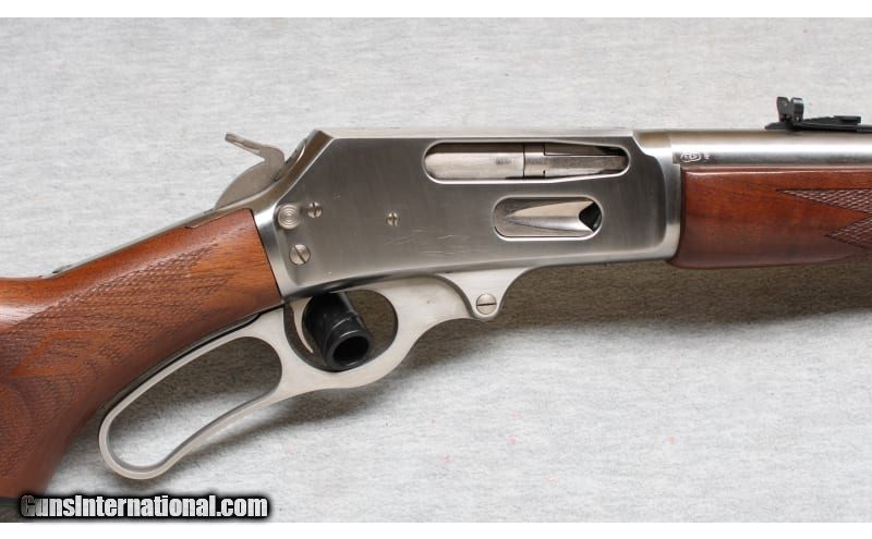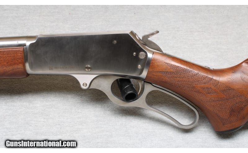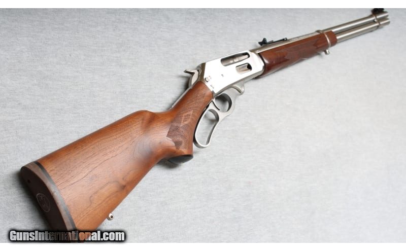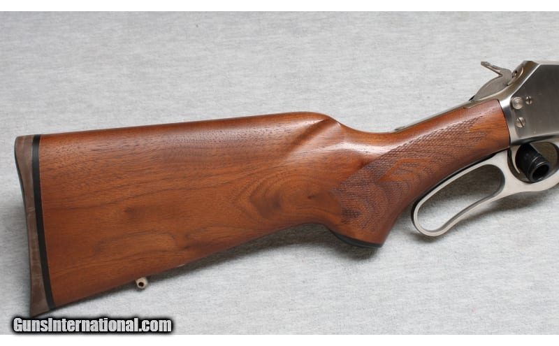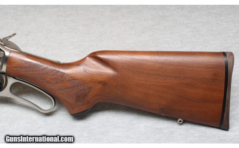 Description: Excellent condition, light finish wear, few small scratches. Marlin lever action rifle with 20" barrel, full length mag tube, stainless metal, smooth action and crisp trigger pull. Natural finish checkered hardwood forend and stock with factory recoil pad and sling swivel mounts. .30-30 Winchester SOLD Chambers: Lever action Metal Condition: Excellent Wood Condition: Excellent Bore Condition: Bright Barrels: 20 Triggers: Factory Stock Dimensions: 13 1/2" LOP Fore End: Checkered Butt Pad: Factory pad Sights: Iron sights Item Location: La Vista, NE |