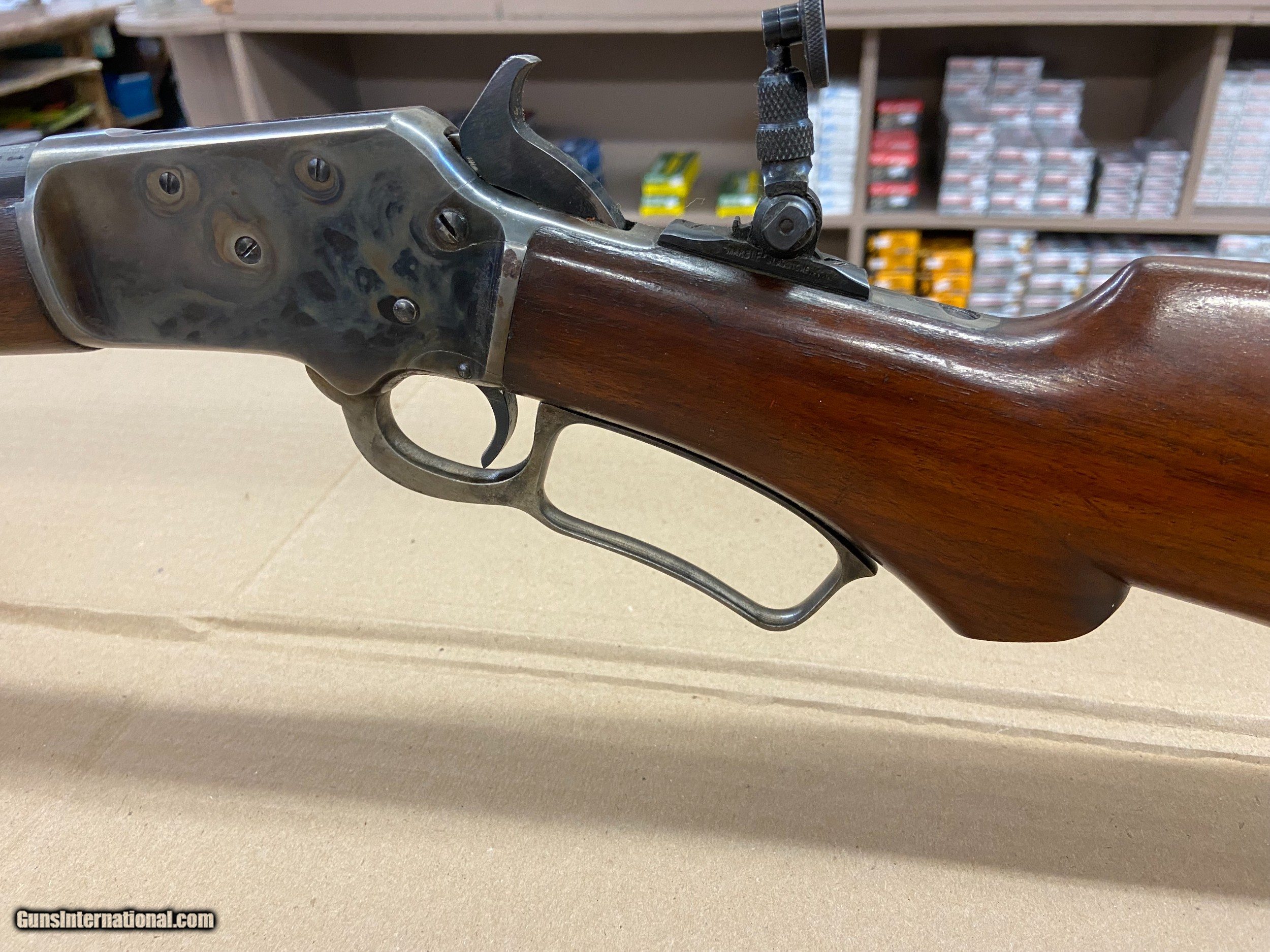Description: SOLD PENDING FUNDS!!!!----SUPER CONDITION ALL ORIGINAL MARLIN MODEL 39 IN .22 LR -- OCTAGONAL BARREL WITH SINGLE MARBLES FLIP SIGHT REAR WITH FIXED FRONT -- ORIGINAL LYMAN PEEP WITH EYE CUP IN PLACE -- BEAUTIFUL VIBRANT CASE COLORS AT A STRONG 90%++ -- VARNISH 97%+++ BLUE AT 95% --- HARD TO FIND GUN IN ANY CONDITION. WHAT A GEM AND COMPLETE WITH ITS ORIGINAL BUTTPLATE. PERFECT SCREWS -- CAPPED FOREND WITH VIBRANT BLUE -- PRICED TO FLY! SOLD Rifle Caliber: .22 Long Rifle Manufacturer: MARLIN Model: 39 Barrel Length: 24 Metal Condition: EXCELLENT Wood Condition: EXCELLENT Stock: PISTOL |