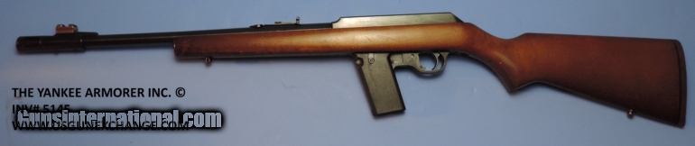 Description: Inv. 5145 Marlin Model 45 Camp Gun, Caliber .45 ACP, Serial Number 004205XX, Inv 5145. This just walked, something I am really not familiar with. However it looks kind of intimidating. The blue seems to be about 99%. The receiver does have the slight impression of having a scope mount at one time. The stock retains about 98-99% of the original lacquer with a couple of slight surface dings. Two sling eyes for detachable sling swivels have been added. A muzzle brake has been installed that is easily removed by removing the set screws. The bore is super fresh, sharp and bright showing little use. The gun comes with one original Marlin stamped magazine and two additional 10 round magazines. A bargain. $875. The buyer must be familiar with all the laws governing the purchase and the ownership of firearms in their own city and state. The Yankee Armorer, Inc is not responsible for any failure to comply with or observe these laws. The Yankee Armorer, Inc will only ship after full payment and receipt of all required documents. Shipping: Add $35.00 for handguns, $45.00 for long guns. New Jersey buyers are subject to a 7% sales tax. The Yankee Armorer, Inc offers a 3 day inspection period with full refund upon return of intact firearm and in the original condition. The Yankee Armorer, Inc offers a no interest lay away program - 25% down; 25% in 30 days; 25% in 60 days; and full payment in 90 days. Any violation of this policy is subject to restocking and forfeiture of all payments. Any variation from this policy must be agreed to in advance. Unshipped Cancelled sales are subject to a 20% restocking fee. We accept most major credit cards. Prices shown are Discounted 3% for Cash or Check. Be advised that all firearms sold by The Yankee Armorer, Inc. or the Gun Exchange, LLC (SELLER) are sold as collector’s items. They have not been fired or tested for safety and must be examined by a license gunsmith prior to use. By purchasing any item from the (SELLER), you are agreeing to hold the (SELLER) free from any damages or lawsuits of any nature. Any item left for transfer or storage will be charged to $25.00 per month, per item from the day of its receipt. Unless discussed with management prior to our receipt. Store hours 10:00 am to 5:00pm Tuesday -Saturday. It's always best to call for appointment. Store 201-512-0002, cell 201-512-5768. SOLD |