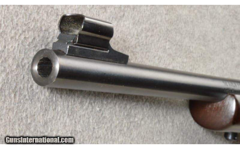 Description: Marlin Firearms Co. Model 9 "Camp Carbine" semi-automatic rifle chambered in 9 mm Luger. This features a blue finish, 16-1/2" Micro-Groove barrel, orange post front & adjustable buckhorn rear sights, tapped receiver and smooth walnut pistol grip stock with brown rubber Marlin recoil pad. Also included is one magazine. Overall, this looks to have been fired a few times if any. 9mm Luger SOLD Chambers: Semi auto 12+1. Metal Condition: A few minor handling scuffs. Wood Condition: A few handling marks but no cracks or deep scratches. Bore Condition: Shinny strong bore. Barrels: 16.5" barrel. Triggers: Single. Stock Dimensions: LOP 14". Fore End: Smooth walnut. Butt Pad: Marlin rubber. Weight: 6.25 lbs Sights: "Front post, adjustable rear. Item Location: Owatonna, MN |