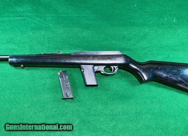 Description: Marlin model 9 "camp carbine" wood stock painted black somewhere along the way, crisp bore, nice looking little rifle. Includes one Marlin marked 12 round magazine. SOLD Rifle Caliber: 9x19mm Parabellum (9mm Luger, 9x19mm NATO) |