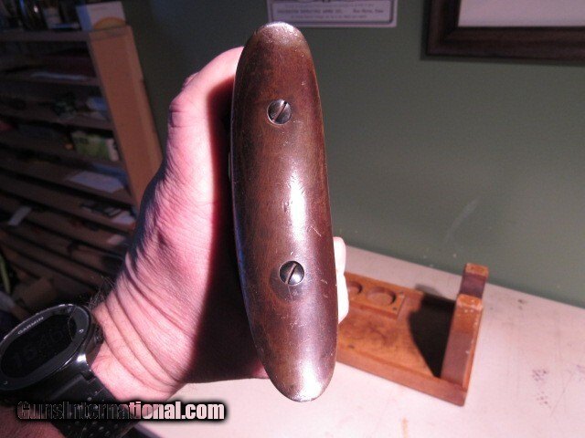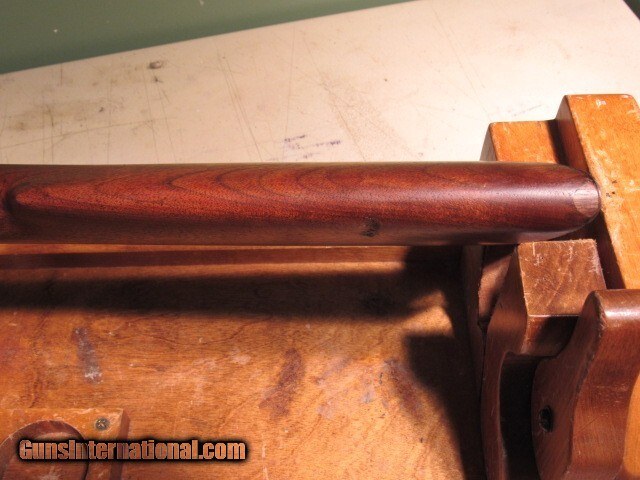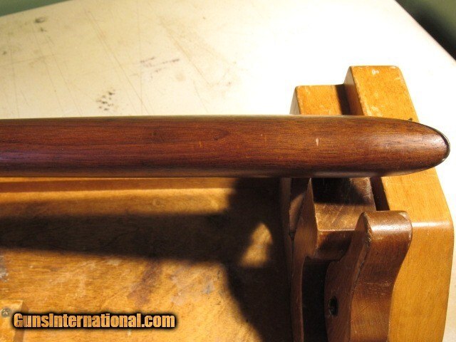 Description: ***** CABIN FEVER SPECIAL - FREE SHIPPING ***** Marlin Model 94 44-40 Rifle Star-Marked, made early 1930s DESCRIPTION: Marlin Model 94 rifle in caliber 44-40 Winchester, with all typical rifle features: 24" octagon barrel, plain walnut stocks, plain trigger, rifle butt with crescent steel butt plate, blued and case hardened finish, sporting rear sight, Rocky Mountain front sight. Serial number D7969 and the Star Marking indicate production in the early 1930s. CONDITION: Receiver has faded case colors, basically the typical nickel-silver; likewise for the lever and butt plate. Loading gate retains 50% dull original blue. Fore end cap 50% plum blue. Original sporting rear sight is 85% original blue. Bolt 95% bright original blue, as is the barrel blue. Mag tube has 70% bright original blue with some loss and mix of plum on the front underside due to wear. Action is crisp with a strong hammer spring and properly working half cock safety. Stocks exhibit expected nicks and dings with some light wear. Fore arm is a little loose at receiver end. Butt stock cleaned and sanded, loss on lower left tang, chip repaired top toe, no serial number in upper channel as it has been removed, inside of butt plate has D7074 so not matching the serial number on the receiver. Mag tube is tight with no wobble. Bore is excellent, a 9.0 of 10, with just minor wear and very light scattered black powder fouling, no rings or bulges, mostly bright and sharp, might clean better, should spin a bullet fine. Flat end of muzzle has some pinprick pitting from storage and/or lack of proper cleaning, not bad and won't affect function but worth noting so there are no surprises. Upper tang correctly drilled and tapped for tang peep sight; receiver top correctly drilled and tapped for the Hepburn receiver peep sight. Serial numbers match where they should. Overall grades NRA Very Good and is a popular, desirable, late variation to add to your lever action collection. TERMS: Must ship to FFL or C&R license. New York State buyers must have the item ship to an FFL dealer only, no C&R, no exceptions. 3 day non-firing inspection. Buyer pays return shipping. Payment by personal check, bank check, or USPS money order only, sorry no credit cards, no electronic payments. Have a competent gunsmith give it a clean bill of health before using as it has not been test-fired. Packed with great care to survive the trip. Ships by FedEx Ground with tracking. Curio/Relic: Yes Rifle Caliber: .44-40 Winchester Manufacturer: Marlin Model: 94 Serial Number: D7969 Barrel Length: 24" Octagon Condition: Very good Metal Condition: Very good Wood Condition: Good Bore Condition: Very Good Action: Lever Triggers: Standard/plain Sights: Standard Manufacture Date: 1930s Item Location: New York Price: $1,850.00 Shipping: $75.00 Contact Seller |