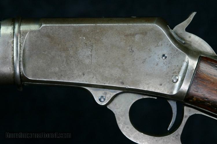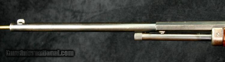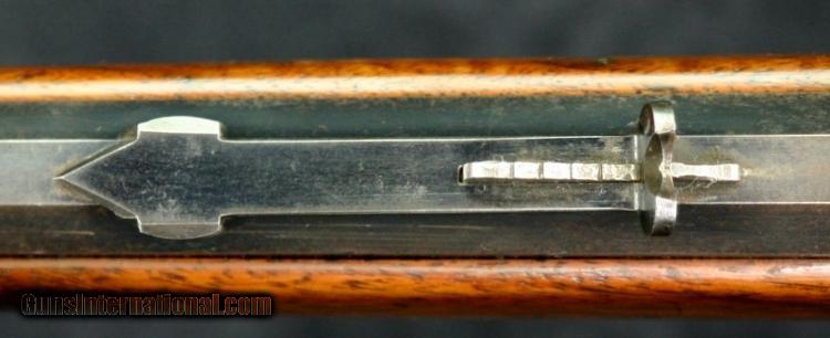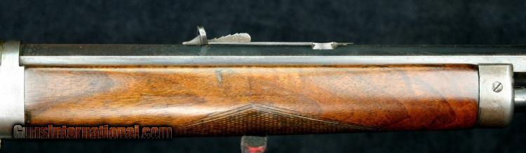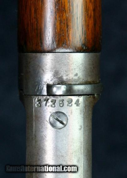 Description: #373624 (approximately 1907), ,25-20M, 24 inch half round barrel, blue & case color finish, walnut pistol grip stock, checkered stock & fore arm, correct sights, take down, outside letterable range. Condition: bright bore, 20% silvering case color on receiver, 40% case color on lever & hammer, some "persuasion marks" around take down lever, 90% barrel blue, silver on sharp edges, wood is solid & tight against metal, excellent mechanically, excellent marks. SOLD Curio/Relic: Yes |