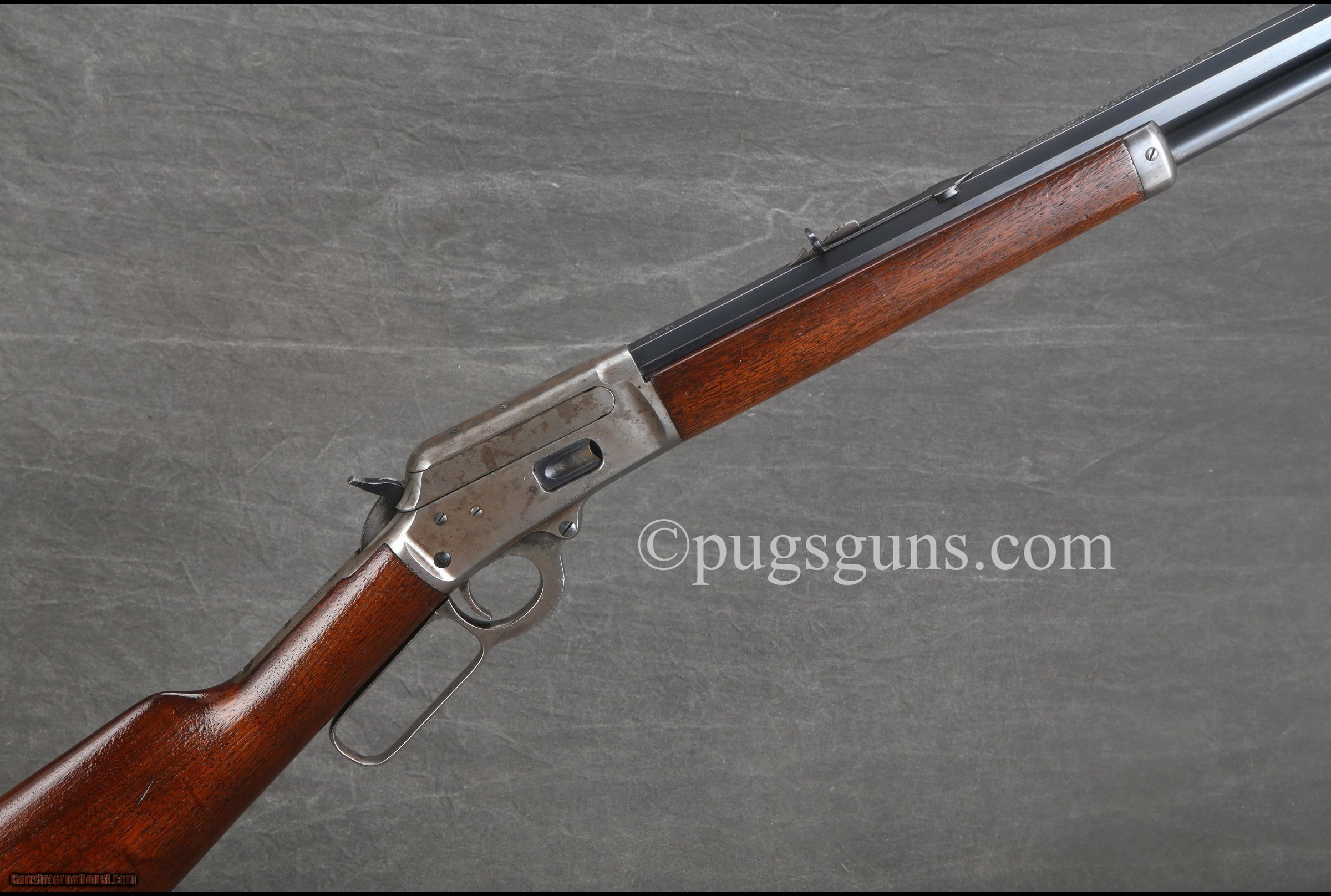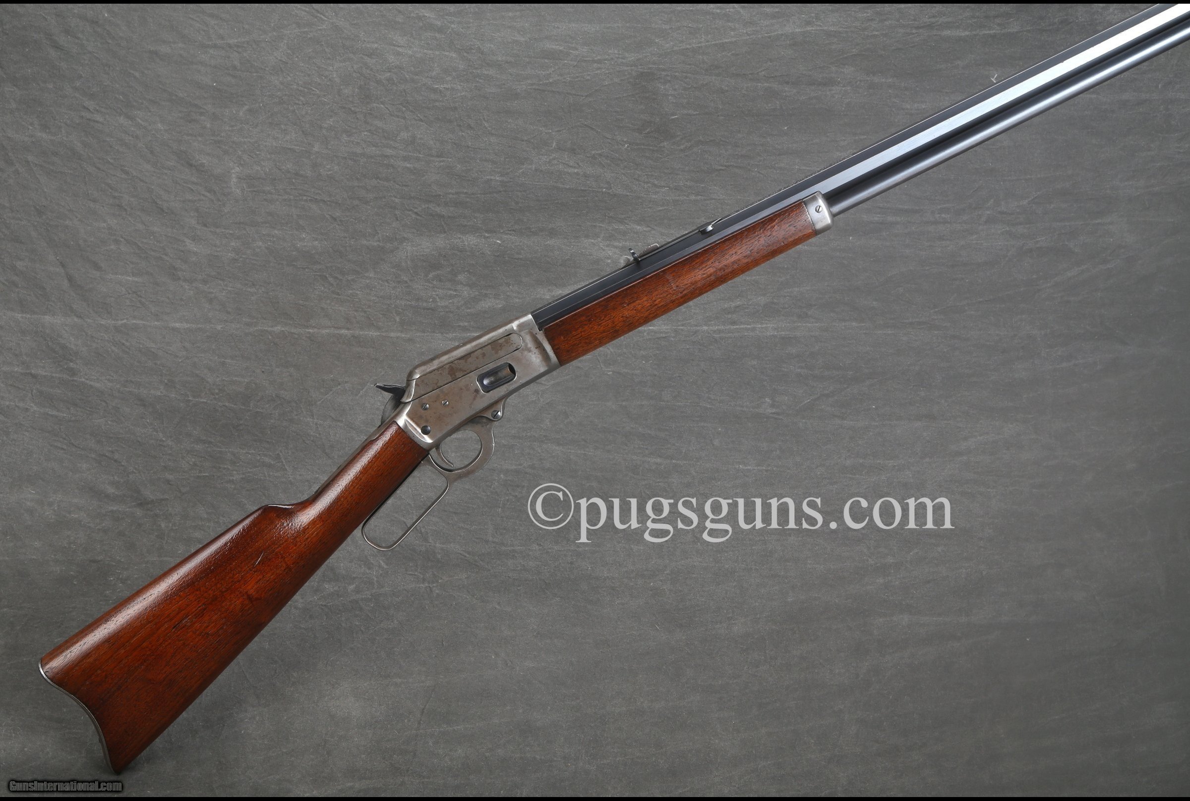 Description: When Marlin entered bankruptcy in the early 1920’s they discovered that there were some leftover parts--including some 1894 Musket receivers. They ordered to have the sling swivel boss ground off and to chamber them in the musket calibers (38-40 or 44-40) and to be sold at a discount. These were also given a unique 3 or 4 digit serial number that was stamped on the receiver, under the forend (as opposed to under the bottom tang)--they also put the matching serial number on the left-hand side of the upper tang, and also on the underside of the butt plate (see pictures). There is very little information about these guns out there and have only been able to get it via people in the Marlin Firearm Collectors Association, which I’ve had a couple different guys give me the same story on them when I showed them the rifle. \n \nThe same people pointed out that had only seen these examples sent out with 20� carbine barrels as opposed to the full 24� rifle barrel--however I was also told that it doesn’t mean it wasn’t done at the factory as these were, after all, “parts guns�\nThere were only 152 muskets built--of which 80 went to Bureau County in Illinois. It is hard to say how many of these guns were built, but its believed to possibly be less than the actual Musket count.\n SOLD Curio/Relic: Yes Manufacturer: Marlin Model: Model 94 (Discount Musket) Serial Number: 565 Caliber Info: 38-40 Barrels: 24 inches Action: RL LOP: 13 inches Weight: 6 lbs. 15 oz. |