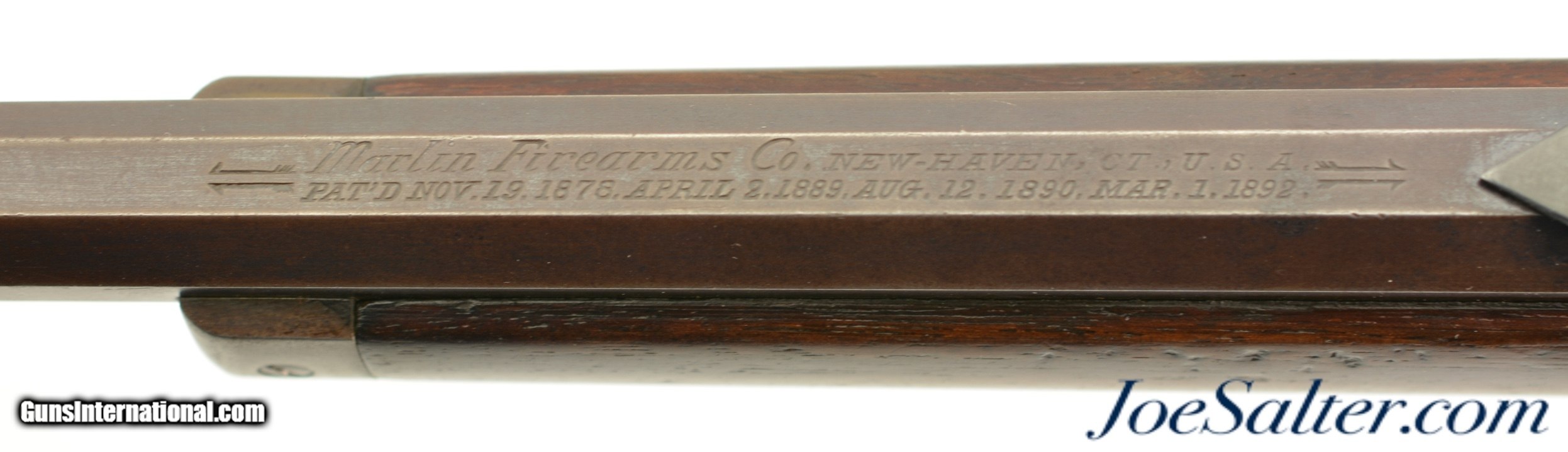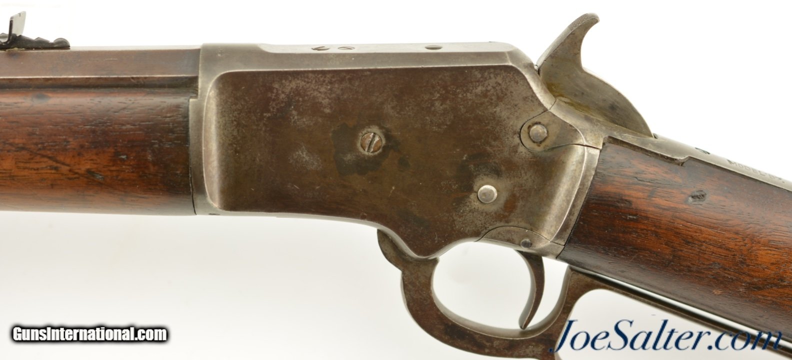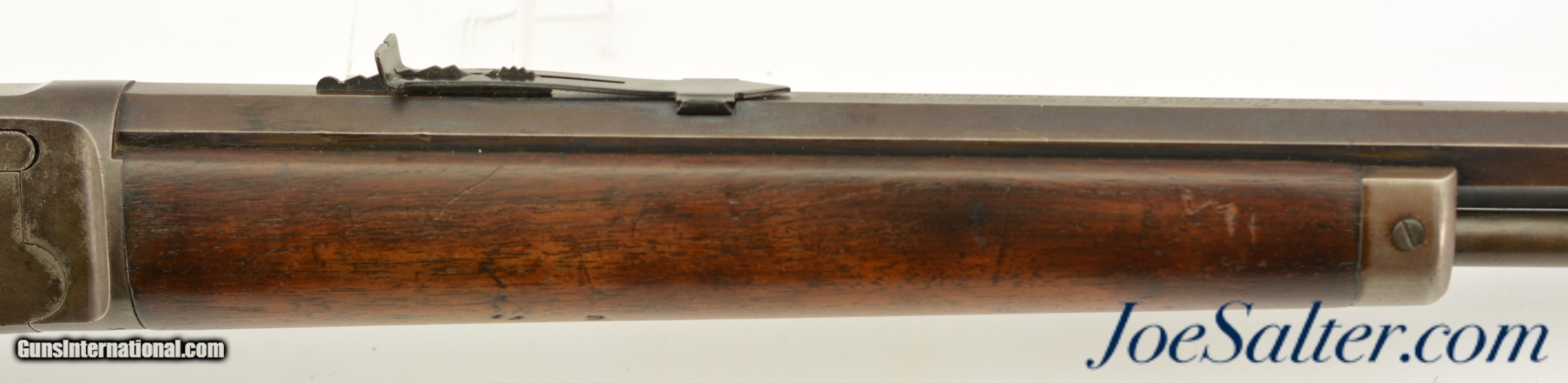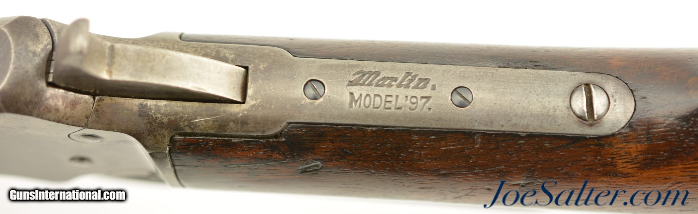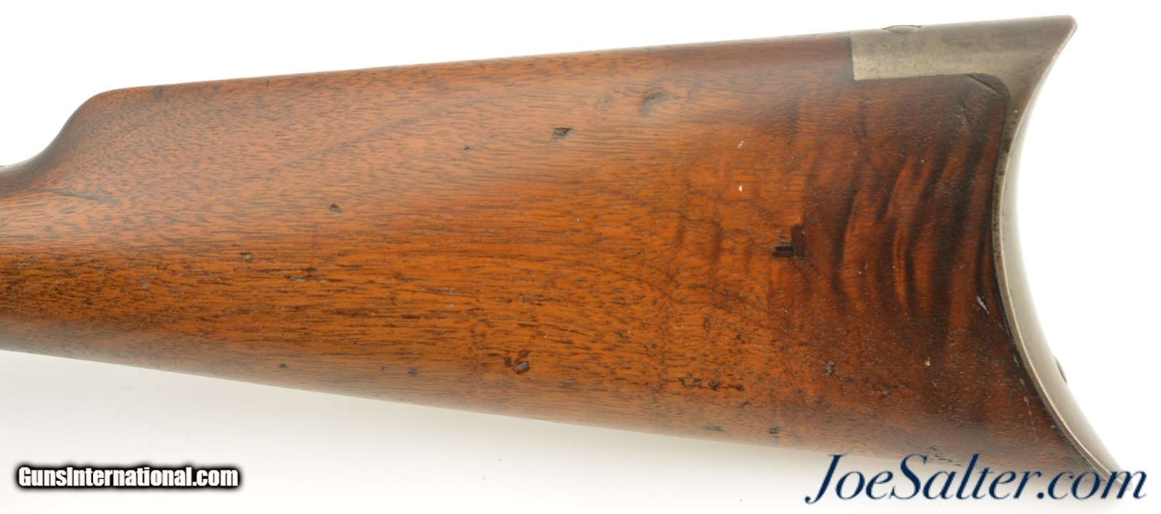 Description: Serial #359008, .22 S,L, LR, 25 inch octagonal barrel with a fine,dark lightly pitted bore with moderate rifling that will still spin a bullet. This is the Model 97 manufactured between 1905 and 1922 as indicated with the model designation on the tang. In fine plus overall condition the barrel retains perhaps 75-80% of the original finish which is now mostly turned plum-brown with silvering on the high edges with scattered scratches and tiny impact marks. The receiver shows a mottled pewter gray with light scratches and impact marks. The walnut stock is solid with slight shrinkage around the tang with some small missing chunks of wood and some scattered contusions overall. Mechanically it functions properly with a very smooth action and nice trigger. A very nice Model 97 that would be a great candidate for a full cosmetic restoration. SOLD Curio/Relic: Yes |