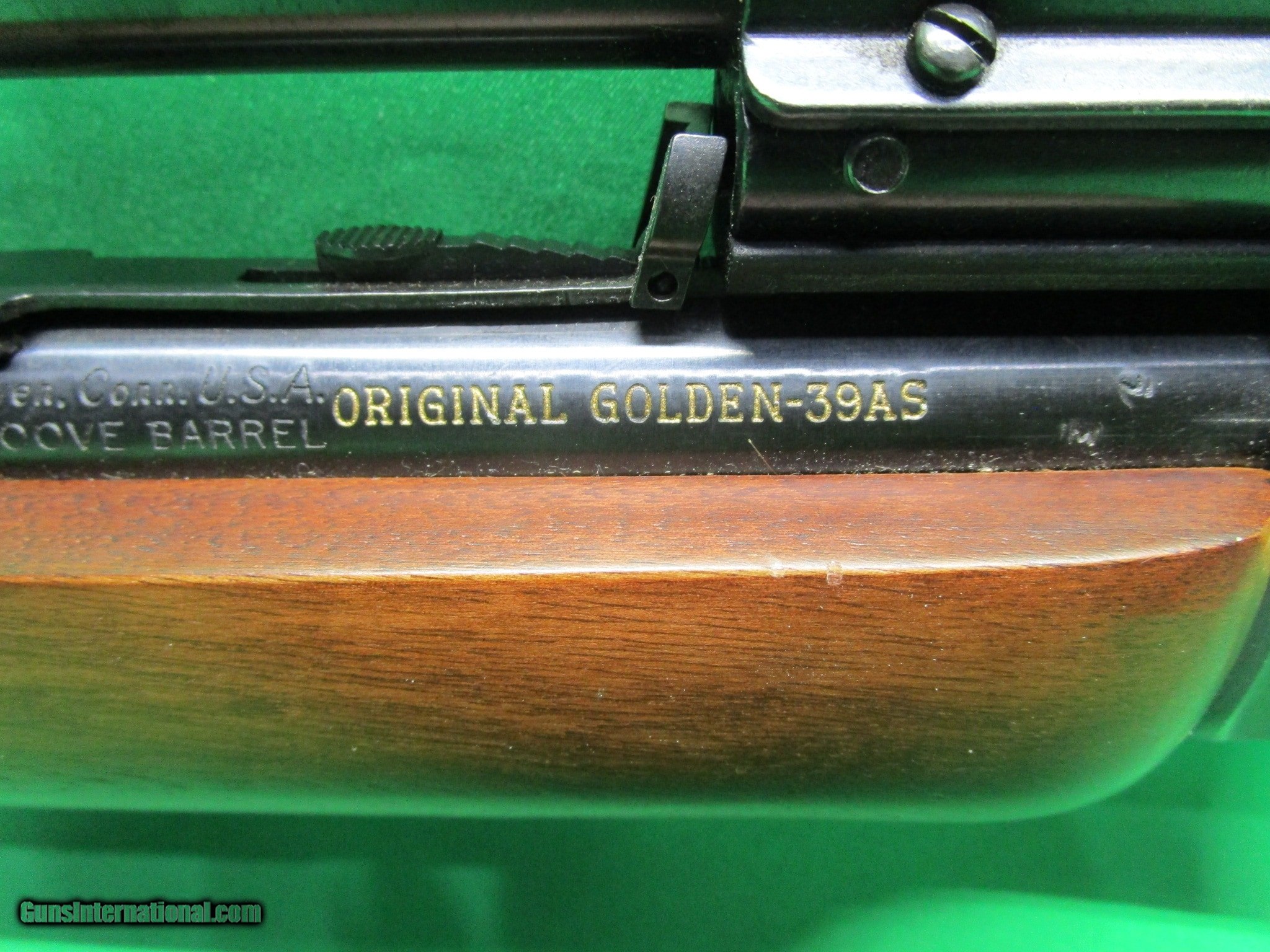 Description: Guns Listing ID: 550524 We have a used Marlin Original Golden 39AS lever action rifle for sale. This is chambered in 22LR with a 24\" barrel. It comes as shown in pictures with a scope. This is in Good Used Condition and can use a good cleaning. It also has some small scratches and a hairline crack in the stock. Overall we would grade at approx 98%. Check out the pictures and feel free to call or email with any questions. SOLD Manufacturer: MARLIN Model: ORIGINAL GOLDEN 39AS Caliber Info: .22 LR Condition: Used - Non-Certified Barrels: 24 BARREL |