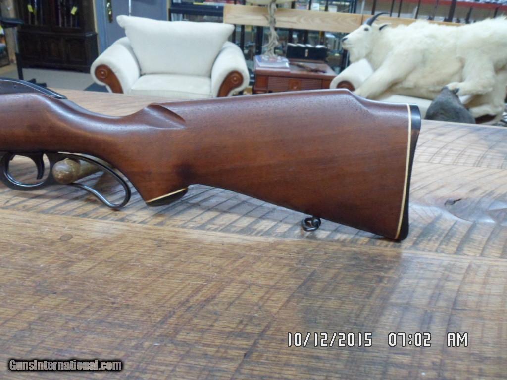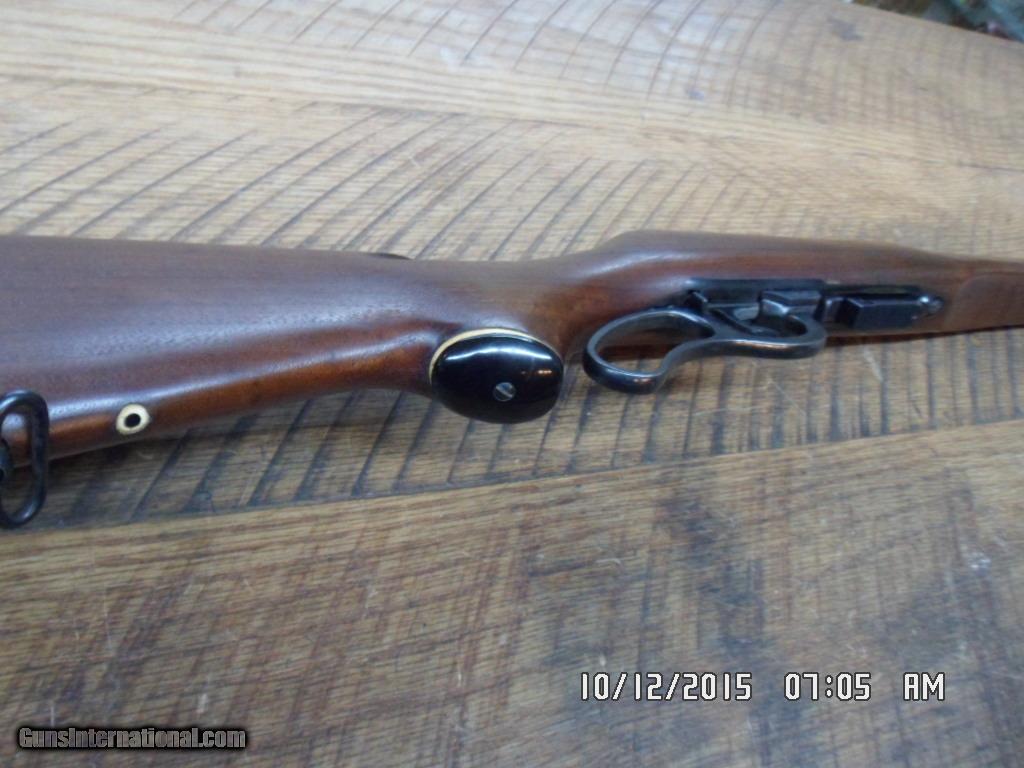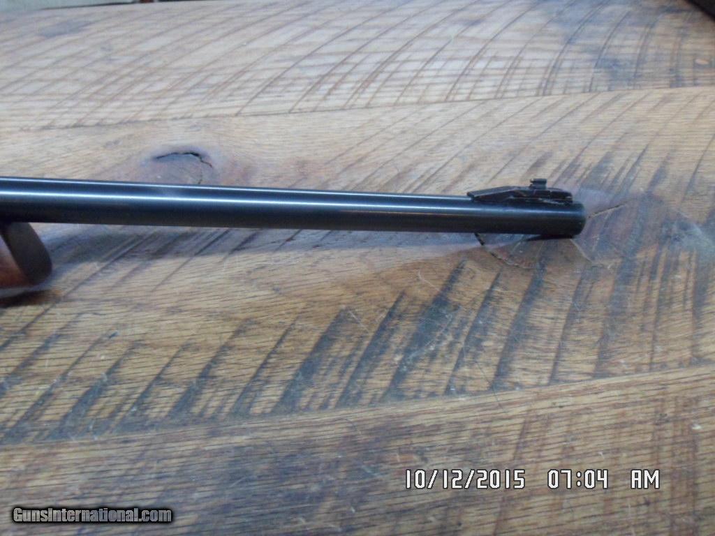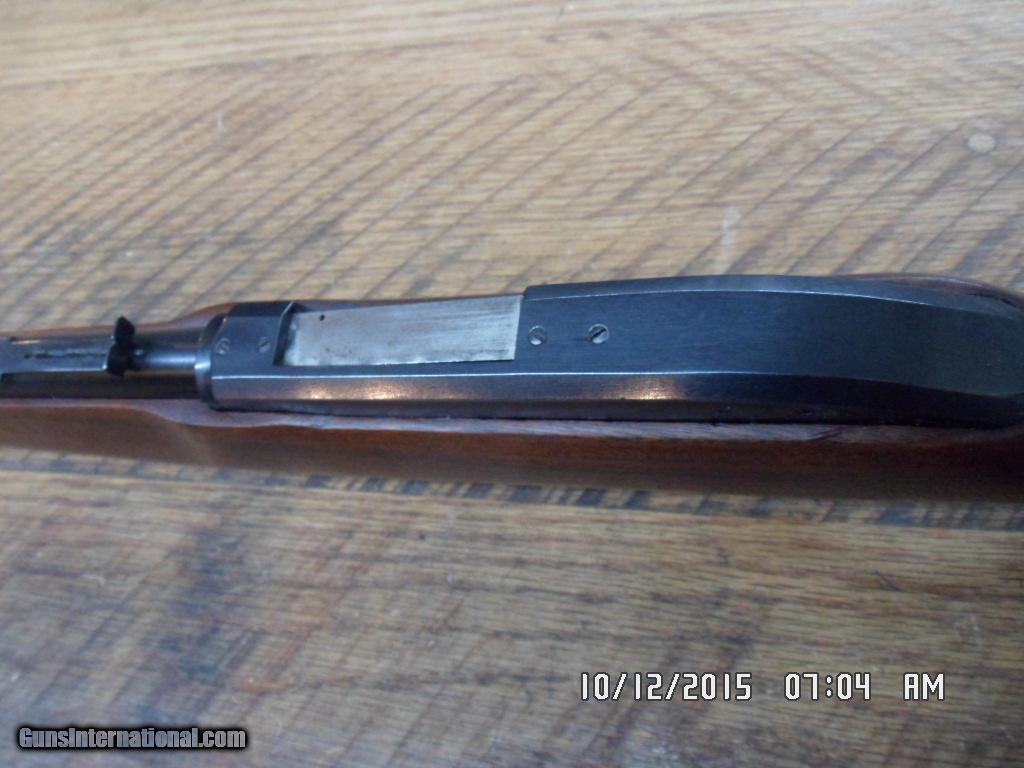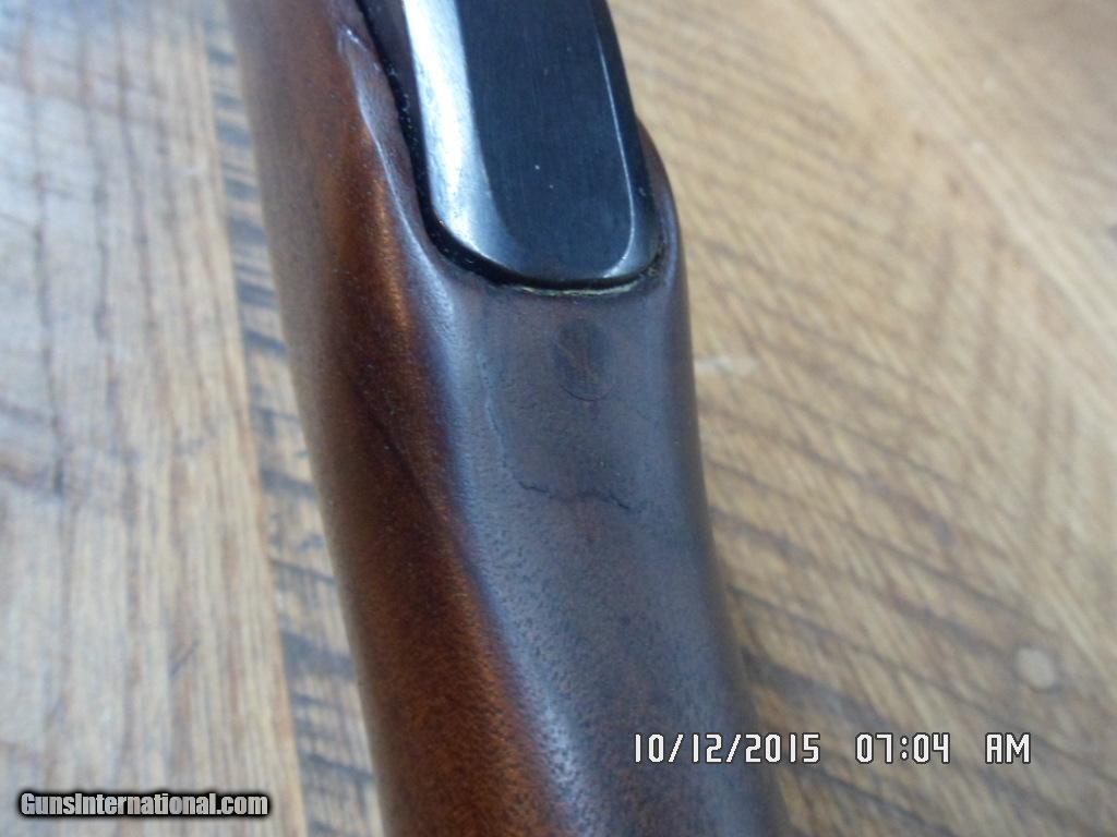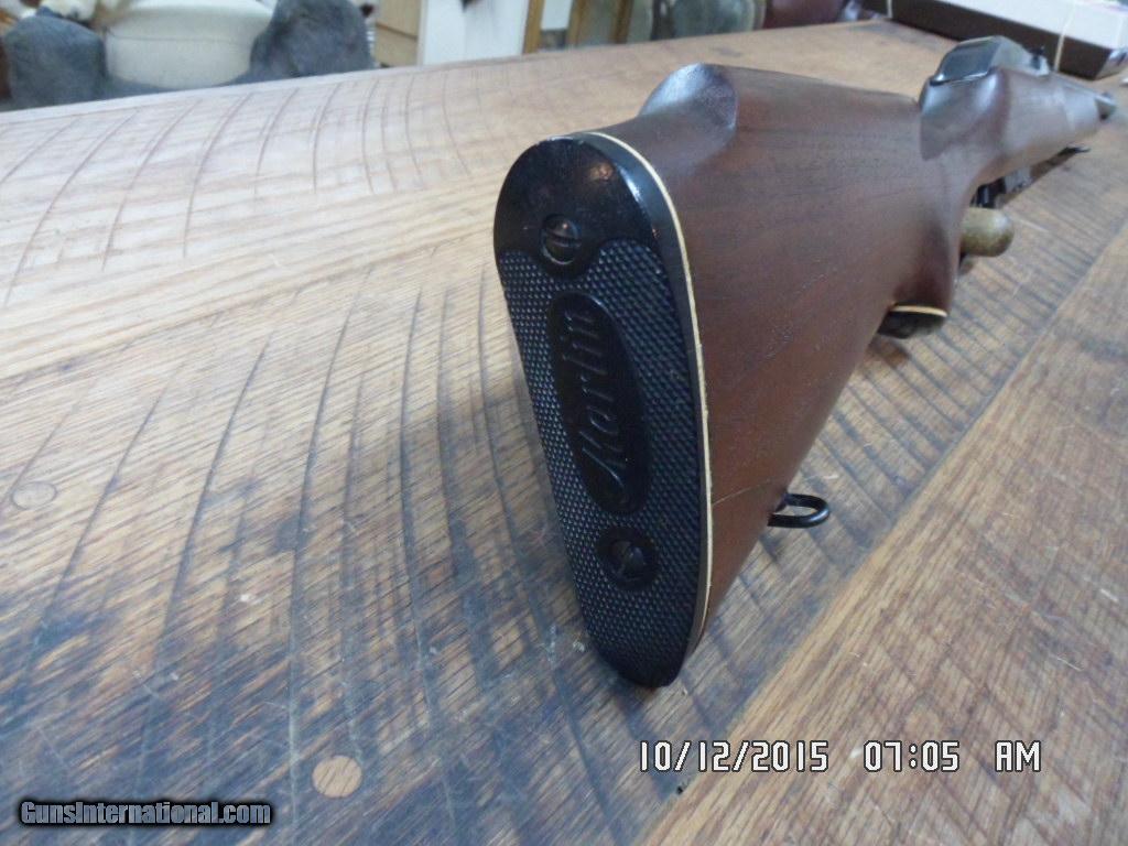 Description: RARE MARLIN MODEL 62 LEVERMATIC 30 US CARBINE CAL LEVER RIFLE. MFG 1966-1969 ONLY(LESS THAN 8000 PRODUCED).20" MICRO-GROOVE BARREL WITH EXCELLENT BORE AND FACTORY OPEN SIGHTS.SHORT THROW LEVER ACTION,DRILLED AND TAPPED BY FACTORY FOR SCOPE MOUNTING(DOES NOT LOOK LIKE SCOPE WAS EVER MOUNTED) AND ALL OF 98% ORIGINAL METAL BLUE REMAINS.UNCHECKERED WALNUT STOCK WITH ALL ORIGINAL FINISH , FACTORY BUTT PLATE AND FACTORY SLING SWIVEL STUDS.SMALL CRACK WAS REPAIRED BY PROFESSIONAL GUNSMITH AT TOP TANG ,ALL VERY SOLID ( SEE PHOTO) COMES WITH 2 FACTORY MAGS.HARD TO FIND MARLIN COLLECTIBLE CARBINE.795.00 PLUS 40.00 SHIPPING.M/O'S ONLY FOR PAYMENT. CALL DANNY AT 828-243-6269 IF NEED.GOD BLESS! SOLD |
