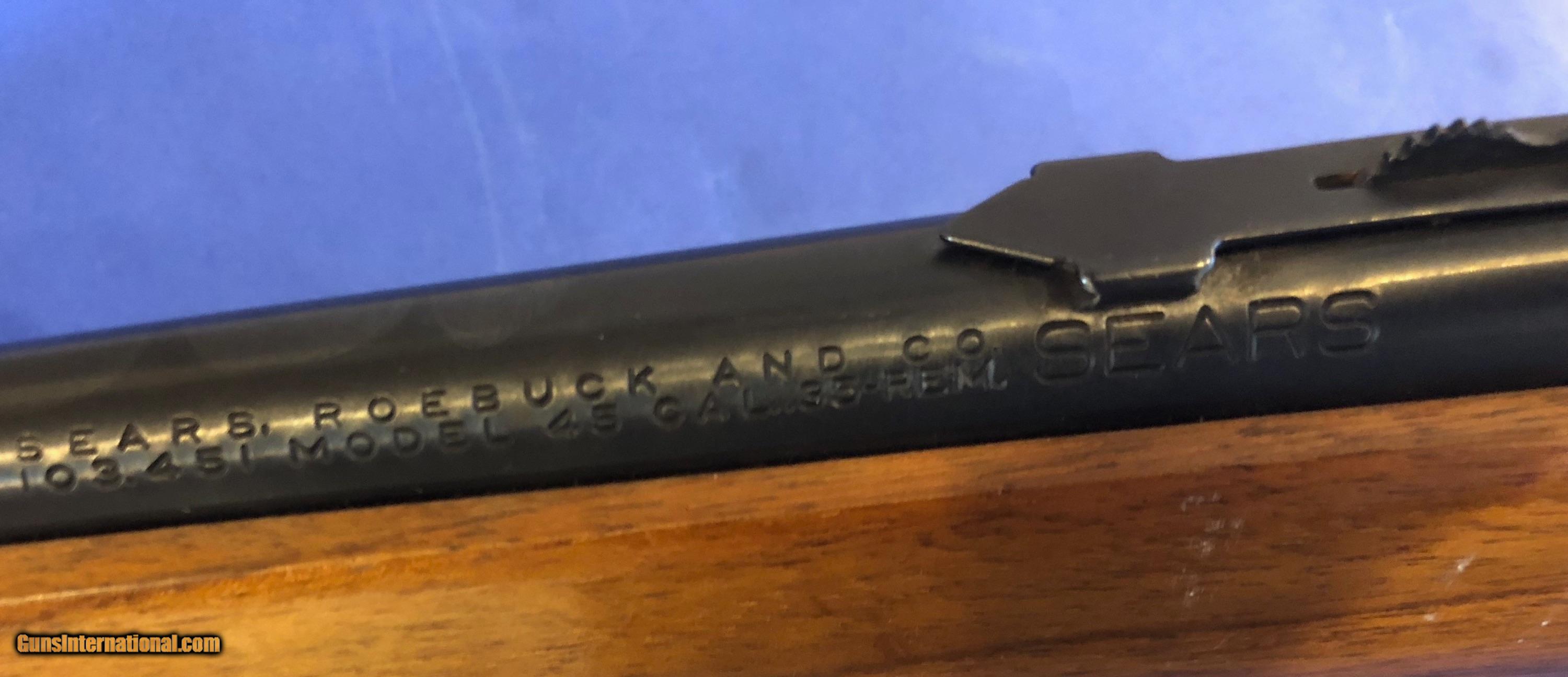 Description: Inv. 6780 Marlin 336, (Sears), Cal. 35 Remington, Ser. Y23862. This little beauty has the old time materials and machining and is in "current times" condition. The gun retains about 98-99% of the original factory blue. The only loss is from some slight sharp edge silvering. There are no pits scratches, or rub marks anywhere. The walnut stock also retains about 98-98% of the original lacquer finish with just the very slightest bit of surface wear near the butt plate. The barrel like the rest of the gun is minty.The " micro groove" bore is sunshine bright with razor sharp rifling. Not a hint of frost anywhere. It comes complete with a quality leather sling, sling swivels and a scope rail that uses the original scope rail holes and is easily removed. $345. To purchase this firearm or if you want to request more information contact us at: Email ckgunsymail Phone 201-512-0002 Cell 201-575-6838 FAX 201-215-4759 We accept most major credit cards. Prices shown are Discounted 3% for Cash or Check. The buyer must be familiar with all the laws governing the purchase and the ownership of firearms in their own city and state. The Yankee Armorer, Inc is not responsible for any failure to comply with or observe these laws. The Yankee Armorer, Inc will only ship after full payment and receipt of all required documents. Shipping: Add $35.00 for handguns, $45.00 for long guns. New Jersey buyers are subject to a 7% sales tax. The Yankee Armorer, Inc offers a 3 day inspection period with full refund upon return of intact firearm and in the original condition. The Yankee Armorer, Inc offers a no interest lay away program - 25% down; 25% in 30 days; 25% in 60 days; and full payment in 90 days. Any violation of this policy is subject to restocking and forfeiture of all payments. Any variation from this policy must be agreed to in advance. Unshipped Cancelled sales are subject to a 20% restocking fee. Be advised that all firearms sold by The Yankee Armorer, Inc. or the Gun Exchange, LLC (SELLER) are sold as collector’s items. They have not been fired or tested for safety and must be examined by a license gunsmith prior to use. By purchasing any item from the (SELLER), you are agreeing to hold the (SELLER) free from any damages or lawsuits of any nature. Any item left for transfer or storage will be charged to $25.00 per month, per item from the day of its receipt. Any variation from this policy must be agreed to in advance. Store hours 10:00 am to 5:00 pm Tuesday -Saturday. It's always best to call for appointment. Store 201-512-0002, cell 201-575-6838. SOLD |