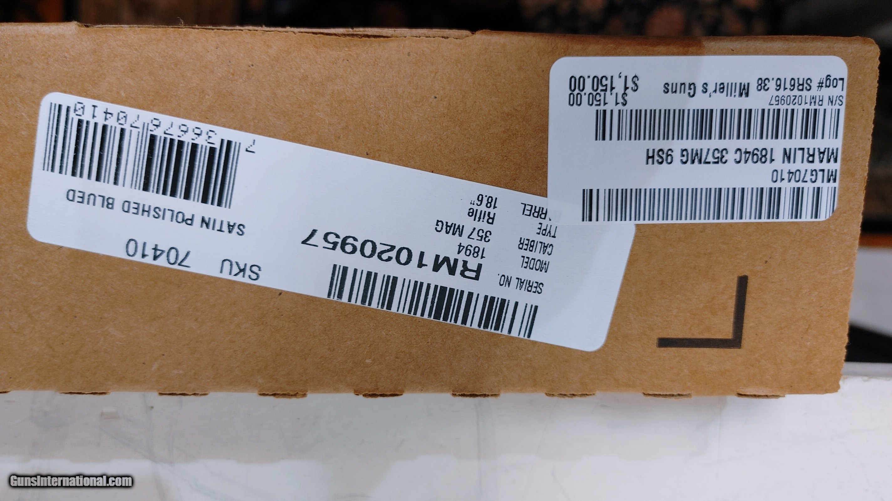 Description: new MAR 1894 CLASSIC 357 9RD WAL new in box (CALIBER:357); (MAG CAPACITY:357); (GUN TYPE:RIFLE: LEVER ACTION); (MODEL SERIES:1894); (ACTION:LEVER ACTION); (CAPACITY:9+1); (FINISH:SATIN BLUED); (STOCK:AMERICAN BLACK WALNUT STOCK); (SIGHTS:FT: BRASS BEAD RR: ADJUSTABLE SEMI-BUCKHORN); (BARREL LENGTH:18.63); (OVERALL LENGTH:36); (FEATURES:SLING SWIVEL STUDS); (DEPT:LONG) Buyer pays shipping Millers Gun Center Located in New Castle, Delaware "Home of TAX-Free shopping" No Credit Card Fees Send Gun international inquiry and then call 302-328-9747 to complete your purchase SOLD Serial Number: RM1020957 |