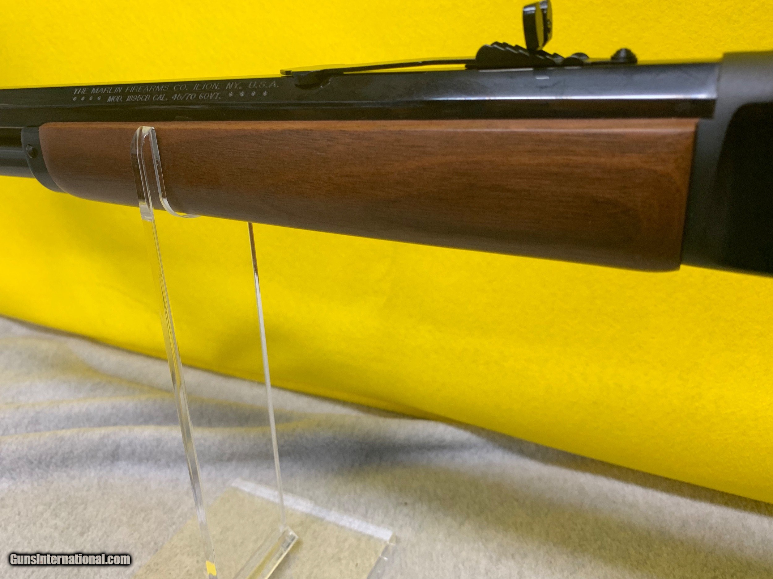 Description: Marlin 1895 45-70 straight stocked with octagon 18" barrel. New in box made by Remington. Very nice not a mark on it. Price firm. Sales tax to Kansas residents. Comes with box and manual and lock. SOLD Rifle Caliber: .45-70 Government, .45-70 Government, .45-70 Government Manufacturer: Marlin Model: 1895 Barrel Length: 18” Bore: New Chambers: New Condition: New Metal Condition: New Wood Condition: New Bore Condition: New Barrel Type: Octagon Action: Lever action Finish: Blue |