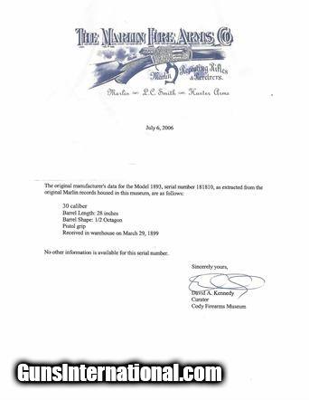 Rare Marlin 1893 Special Order Deluxe .30-30 (R27632)