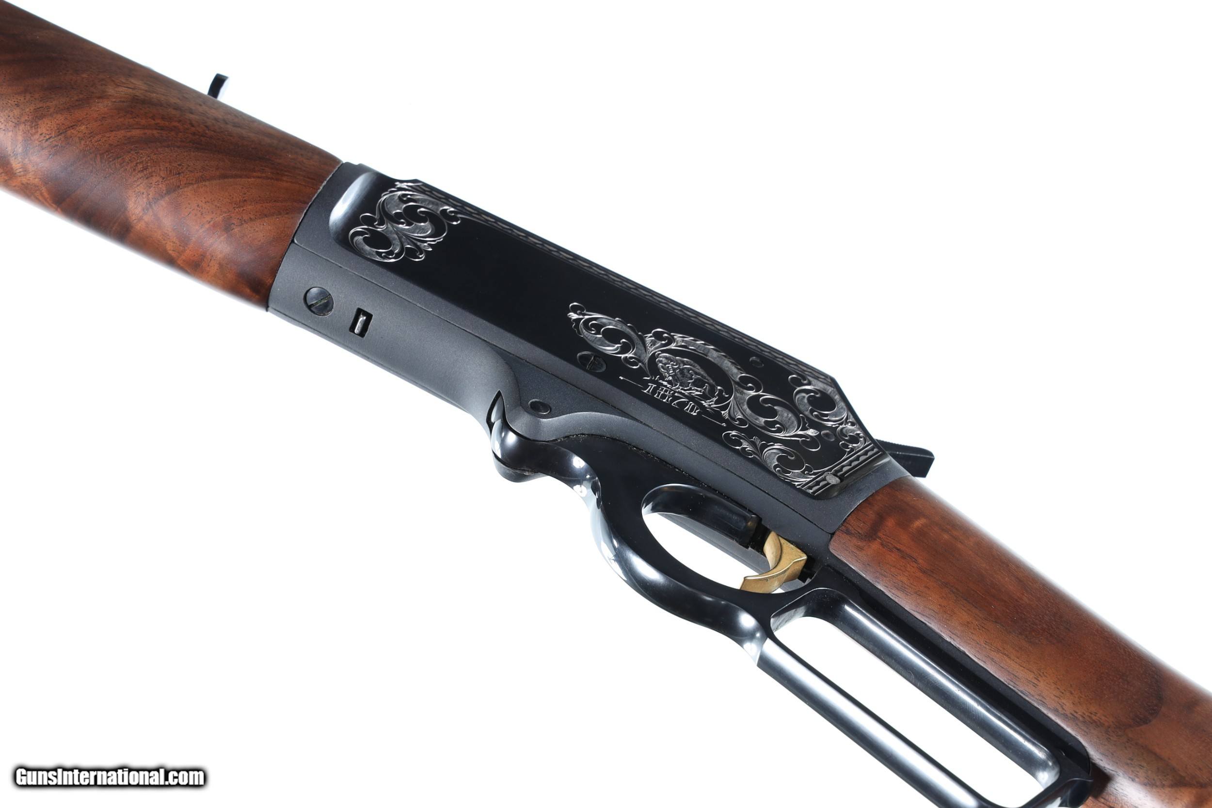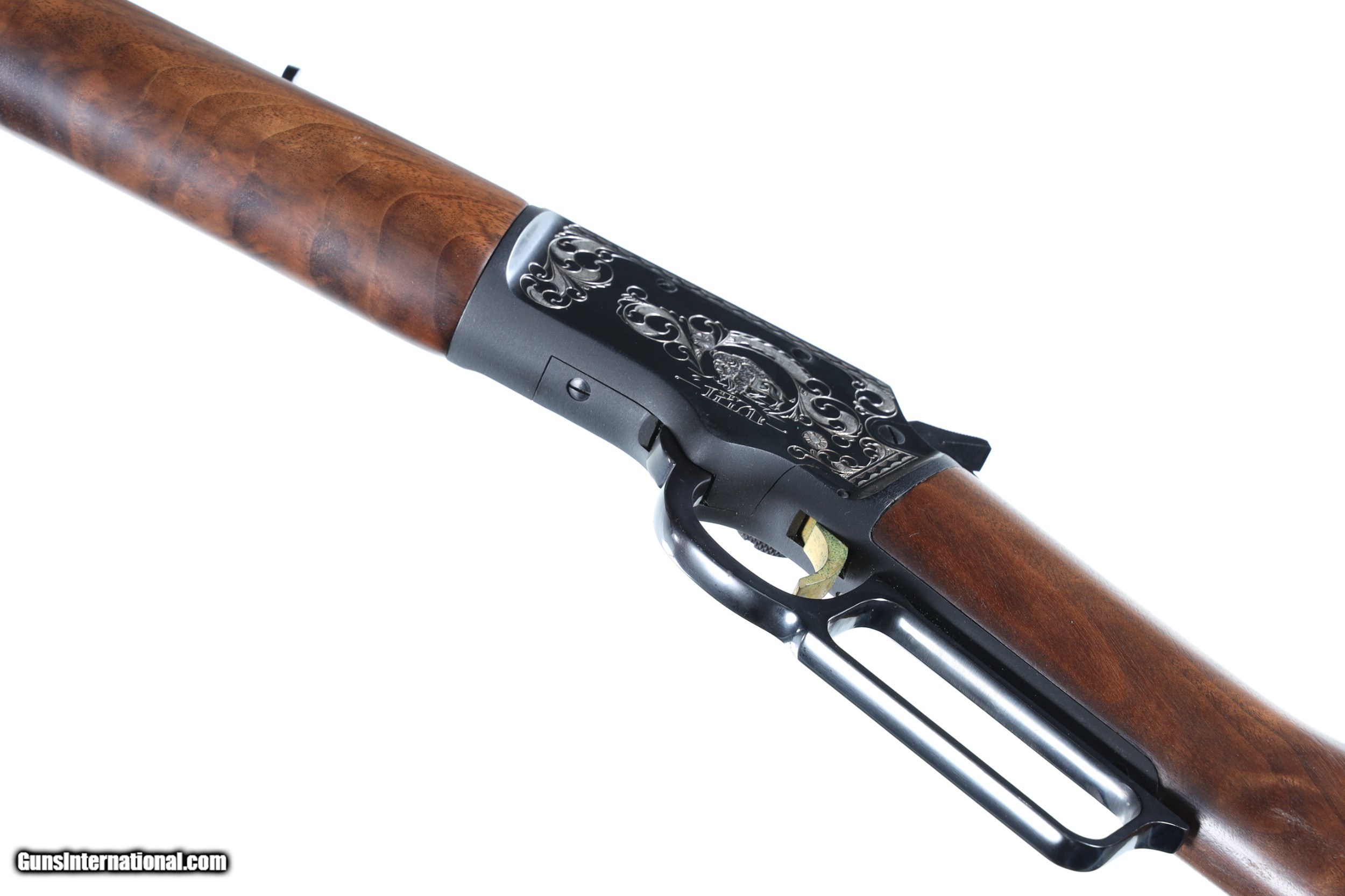 Description: Cased Pair of Engraved Marlin Centennial "Brace of 1,000" Lever Action Rifles with double gun case (interior deteriorated), vinyl banner, and shipping box. Both rifles rate excellent with slight tarnishing of brass components. • Free Shipping, No Credit Card Fees. • Lay-a-way available for this firearm. • 1/3 Down, a 1/3 in 30 Days 1/3 in 60 Days. SOLD Manufacturer: Marlin Model: 336/39 Centennial Serial Number: 301 Barrel Length: 20 |