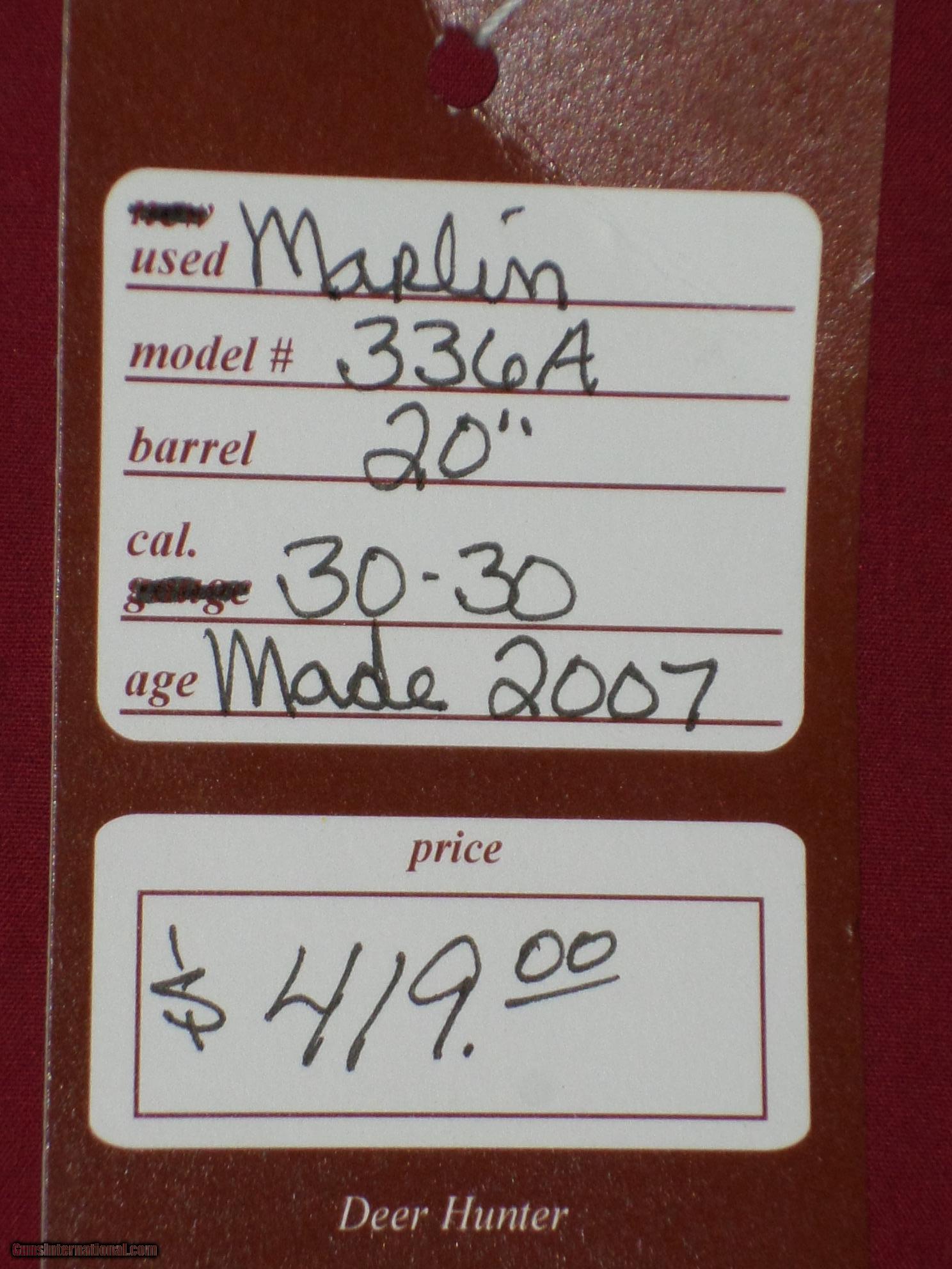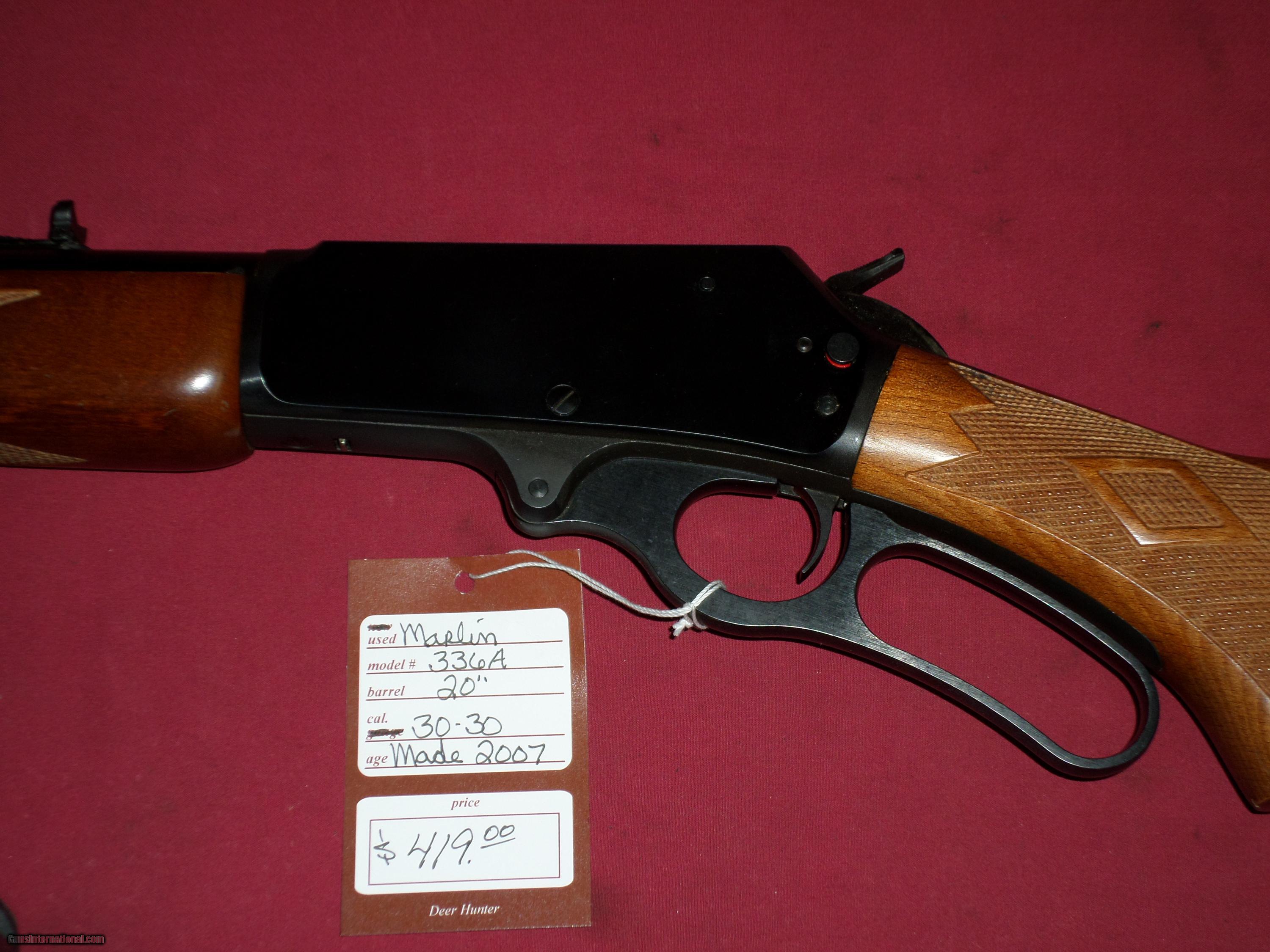 Description: SOLD For Sale, Marlin 336A .30-30 20" bbl. Very good to excellent condition. Circa 2007 To see more of our inventory, visit deerhunterguns,com We accept MC, Visa and Discover, no AmEx. No Sales to California. Like us on Facebook: Deer Hunter Guns SOLD |