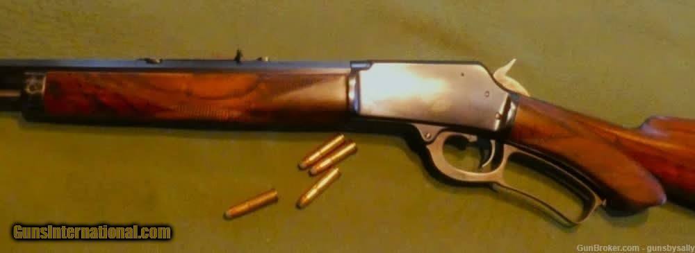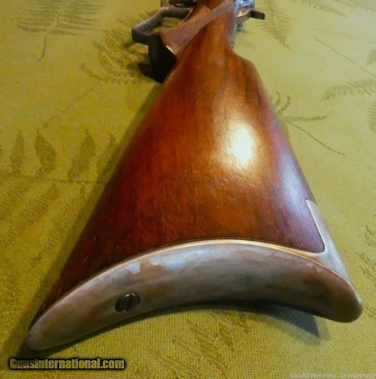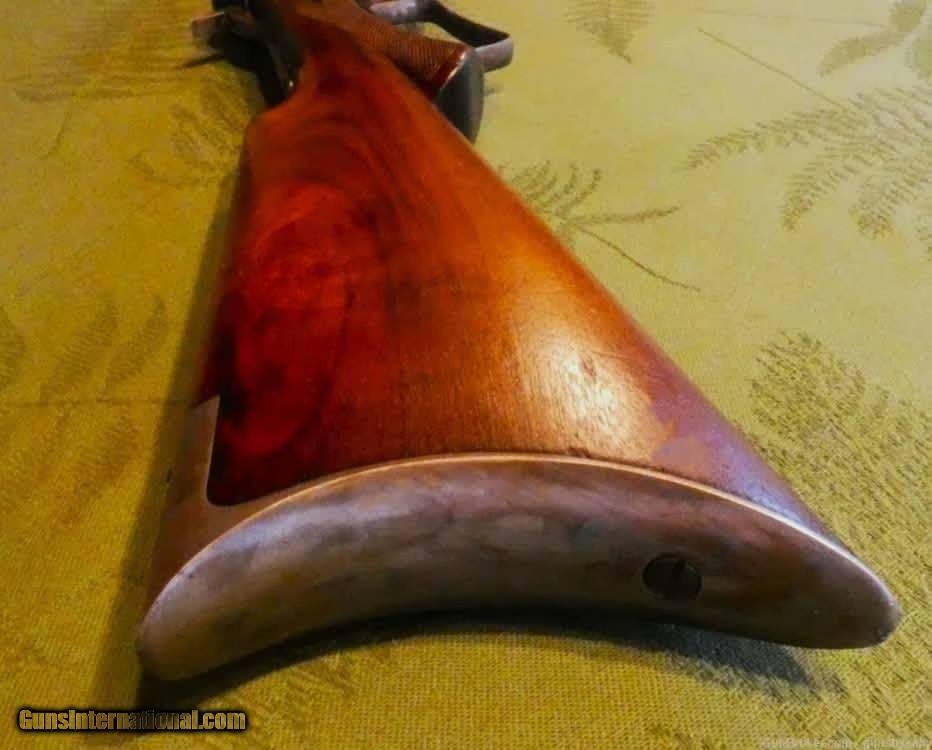 Description: Guns by Sally-always the best for less. We are so proud to offer this fine example of Marlin's first side eject rifle, the model 1889. This one is decked out in deluxe form, with a checkered pistol grip stock made of fine walnut. Made in the year of our Lord 1890, she is in very good condition for being 134 years old. She has received very good care, as all the markings are sharp and clear. The action is crisp and smooth, and works as designed, including the half cock safety. The bore of the longer than standard 26 inch octagonal barrel is quite good, with plenty of shine and strong rifling. A few patches of light pitting are the only detraction. . She is chambered in 32-20 WCF. The walnut, is also in very good condition. Only a few light handling marks can be found. The serial number, 35602, can be found on the receiver, tang, stock, and butt plate. The fine folks at the Cody Museum verified the original specififications of this rifle in a Marlin factory letter. It is interesting to note that the 1889 is the only Marlin to have a lever retainer built into the frame. Only about 55 thousand were produced, and much fewer were made in deluxe form. When asked why Marlin rifles are so valuable, I point to the numbers. Only about 360 thousand were made in all models combined. That includes the 1881, 1888, 1889, 1891, 1892, 1893, 1894, and 1895 models. Compare that to the Winchester 1894, which sold over 6 millions copies, alone. The Marlin 1889 has really gained in value, even when compared to other Marlin models. The plainest rifle with lots of use typically still brings thousands, telling me that it is a favorite among collectors. If you have been looking for the right Marlin 1889 to collect or for investment, but want the added clout of a Cody lettered deluxe special order, then look no further. Antique: Yes Handgun Caliber: .32-20 Winchester (.32 WCF, .32-20 Marlin, .32 Colt Lightning ) Price: $4,500.00 Buy Now Contact Seller |