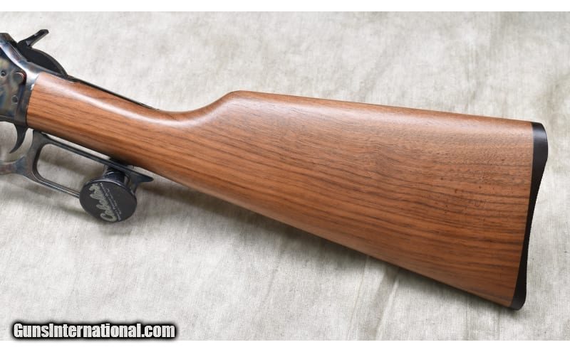 Description: This Cowboy Competition Marlin features 20-inch hex barrel, light walnut stock with nice grain, cross-bolt safety, and case colored receiver and lever. It does not appear to have been fired. .45 Colt SOLD Chambers: 9 Metal Condition: Excellent. ANIB. Wood Condition: Excellent. ANIB. Bore Condition: Excellent. ANIB. Barrels: 20-inch hexagonal. Triggers: Factory trigger. Stock Dimensions: 13-1/4 inch LOP Fore End: Well-matched smooth walnut. Butt Pad: Black plate. Weight: 6 lb - 6 oz. Sights: Bead and semi-buckhorn open sights. Item Location: Rogers |