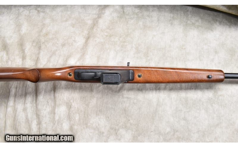 Description: The Marlin Camp Carbine was designed as a pistol cartridge chambered autoloader to be used around camp for defense and camp meat harvesting. The Model 9 is chambered for 9mm Luger and can use a variety of magazines from other sources with of 20 rounds and more. This one is the version with the high visibility orange fore sight. The stock is high grade birch. 9mm Parabellum SOLD Chambers: "Magazine dependent, 4-round magazine furnished, Metal Condition: Excellent. Wood Condition: Very good to excellent. There are a few very minor handling marks. Bore Condition: Shiny and bright with good rifling. Barrels: 16-1/2 inch Micro-Groove bbl. Triggers: Factory trigger. Stock Dimensions: 14-inch LOP. Butt Pad: Rubber pad. Weight: 6 lb - 9 oz Sights: "High visibility orange fore sight, notch rear sight, drilled and tapped for scope. Item Location: Rogers |