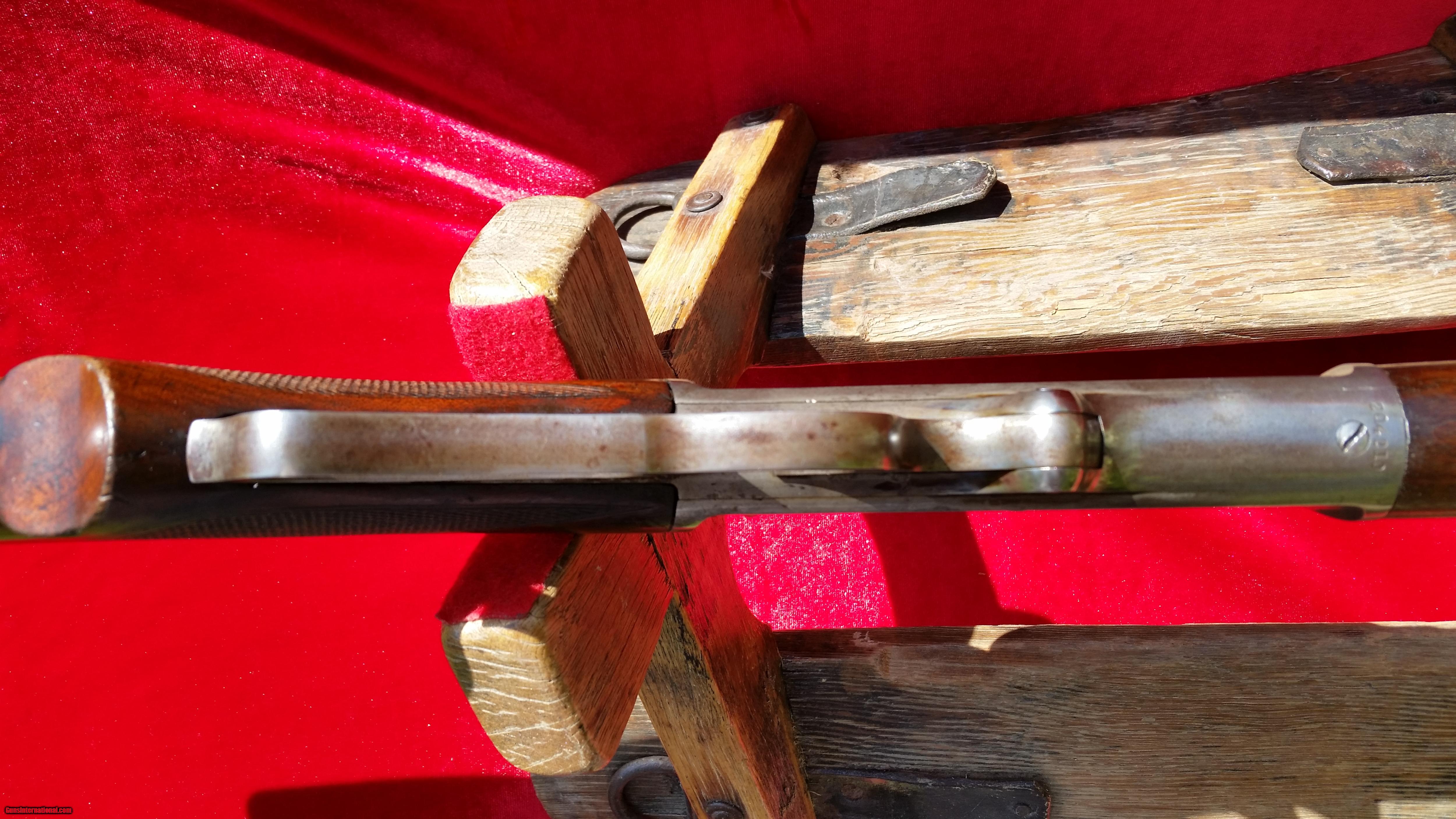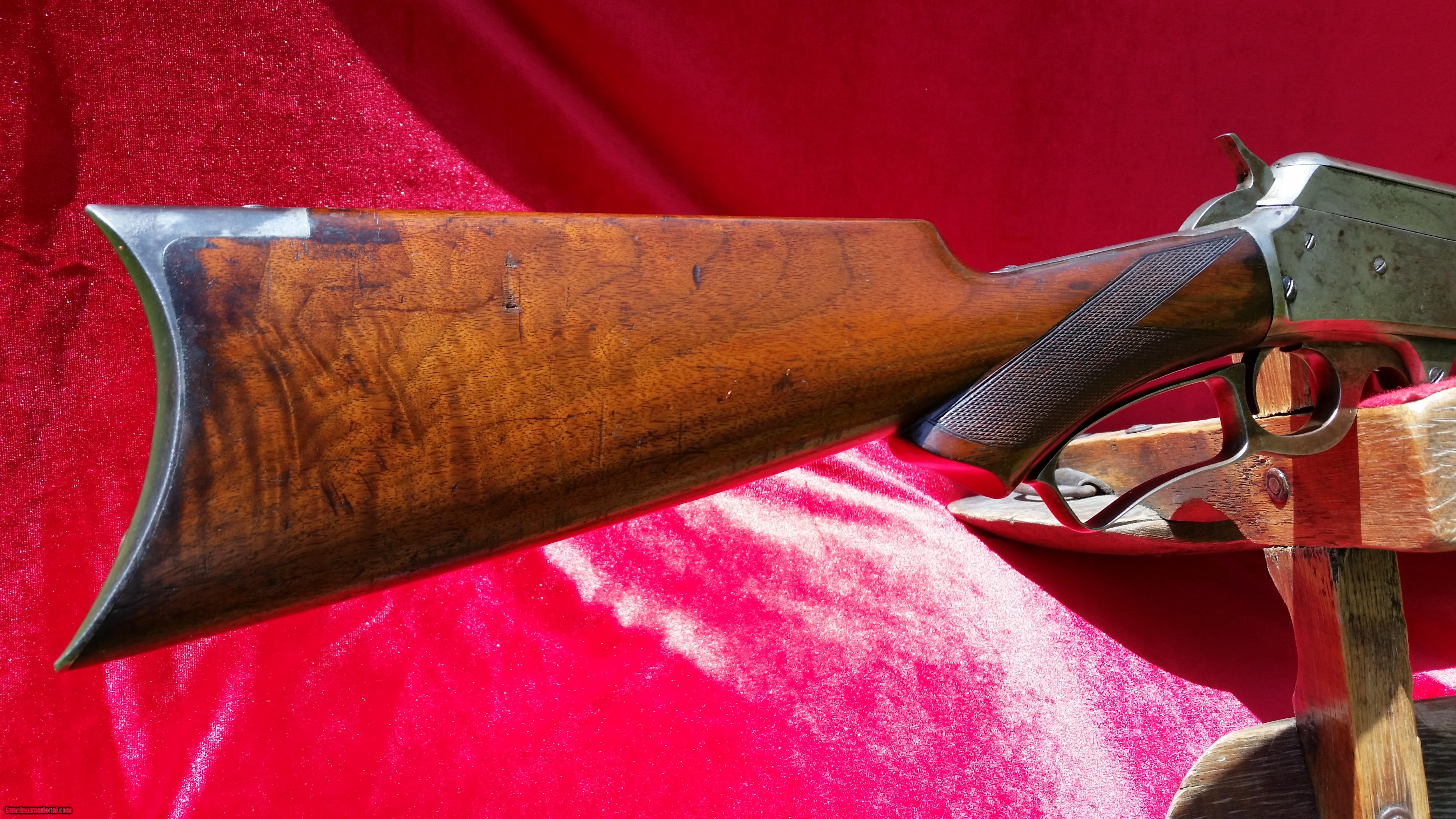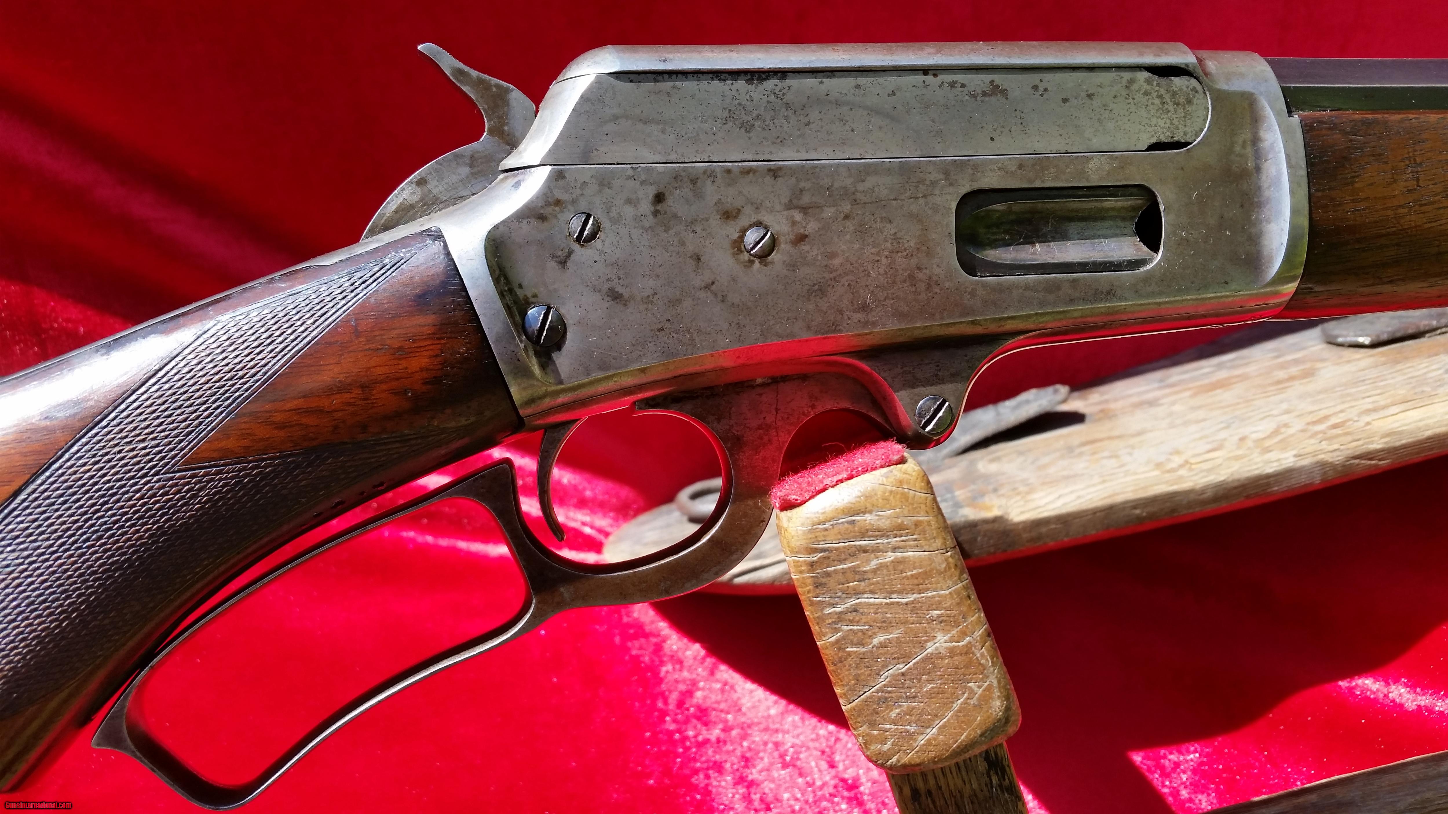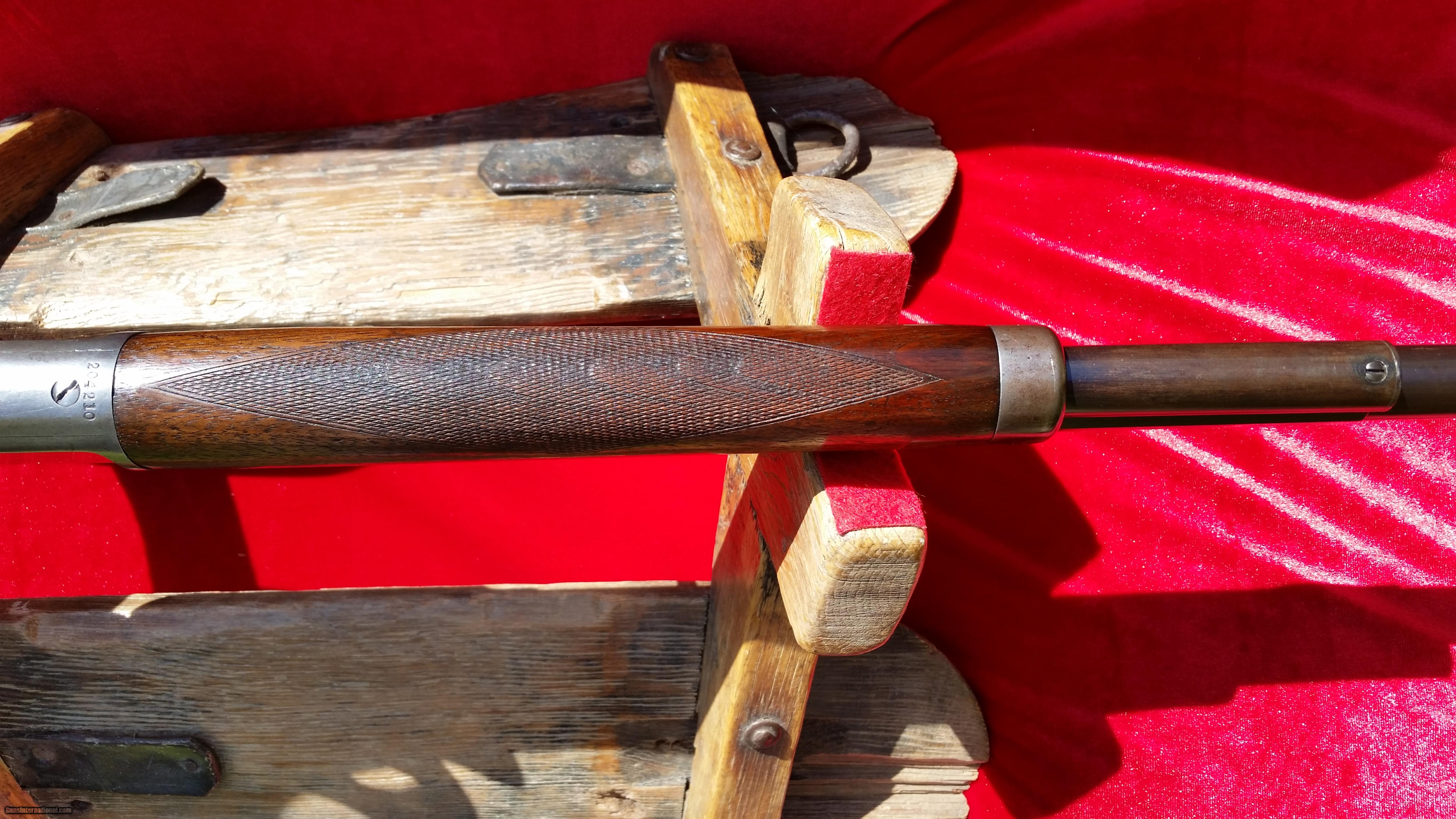 Description: Very rare special order Marlin 1895. There are very few Marlin 1895's made. Finding one that is special order like this one is quite rare. It features a pistol grip and checkered wood and a half octagon half round 26" Barrel chambered in 38-56. It is in very nice condition inside and out. It has fading case colors on the receiver showing mostly silver with case colors evident in protected areas. The blue is still quite good. I've done my best to take pictures in the sun so you can see it well. It is still tight and I'm sure it would make a good shooter. The bore is very good for the period and has minimal corrosion scars. Please see the pictures and ask any questions before . I am open to reasonable offers . Ships to an FFL or C&R license. Shipping is $45 including insurance. SOLD Curio/Relic: Yes Manufacturer: Marlin Model: 1895 Caliber Info: 38-56 Bore: good condition bore Condition: overall very good condition Metal Condition: Fading case colors on the receiver with good blue on the barrel. Wood Condition: Nice varnish and checkering with no cracks. Bore Condition: good condition Barrel Type: 1/2 round and 1/2 octagon Action: lever action Stock: pistol grip checkered walnut with metal crescent buttplate Fore End: checkered Sights: Marlin sights |
