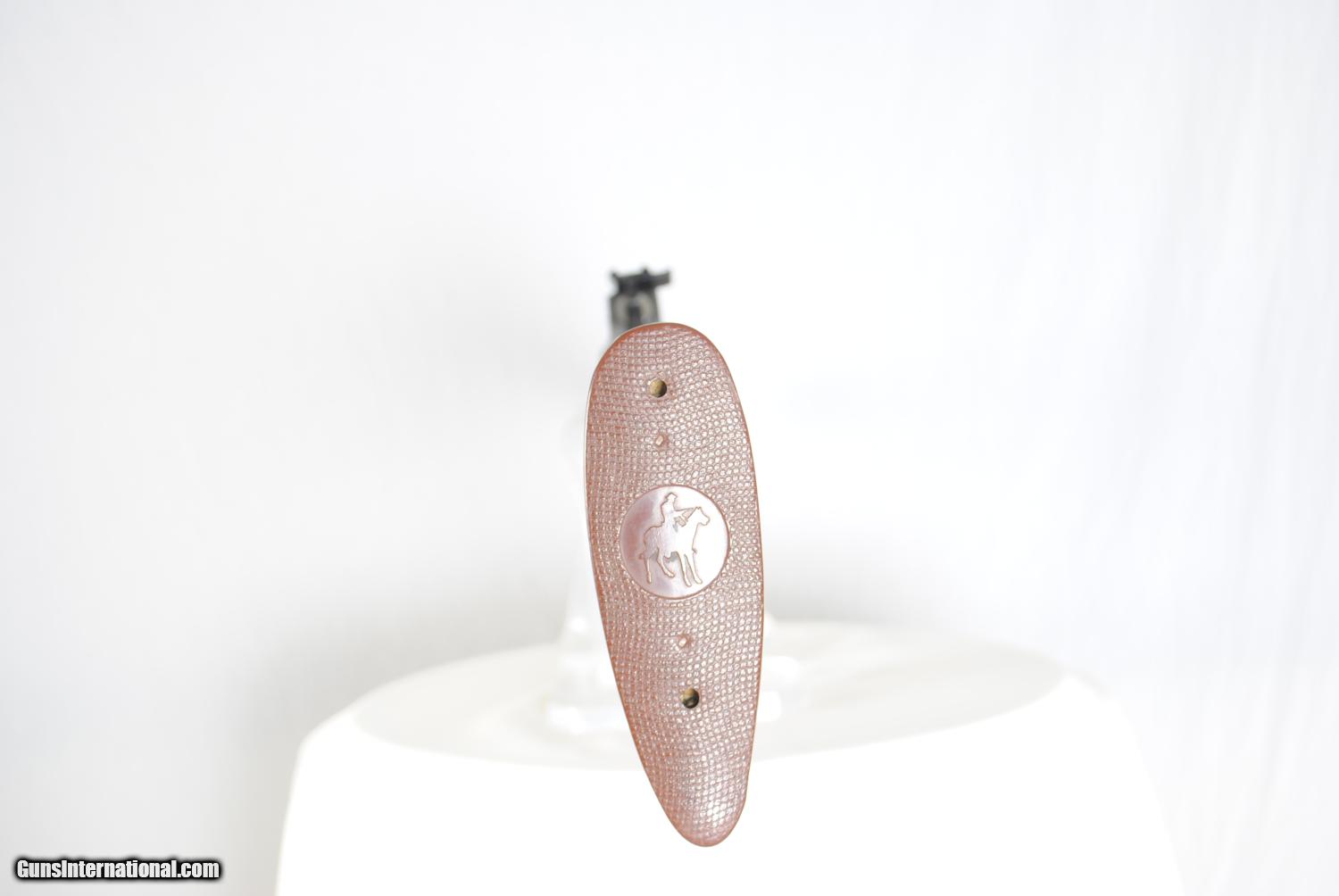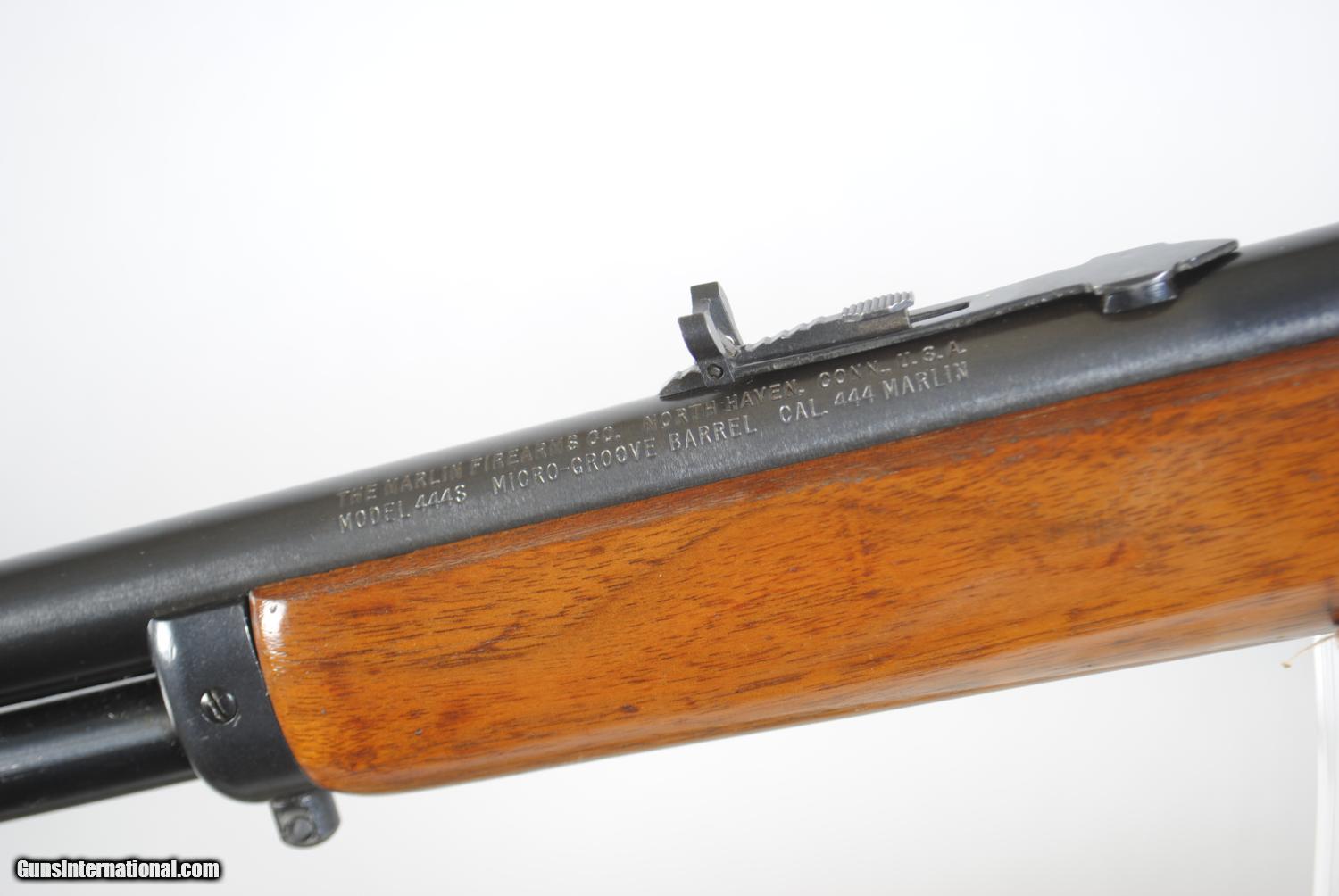 Description: SALE PENDING. Here is a vintage Marlin 444S as original. Barrel is 22". Scope mounts as shown. JM Stamped barrel. No appreciable blue wear. Weight 7LBS 8 3/4 OZ. The 444 is a terrific caliber. Shipping is $40. For inquires please call Guy Ave 407-721-3748 SOLD |