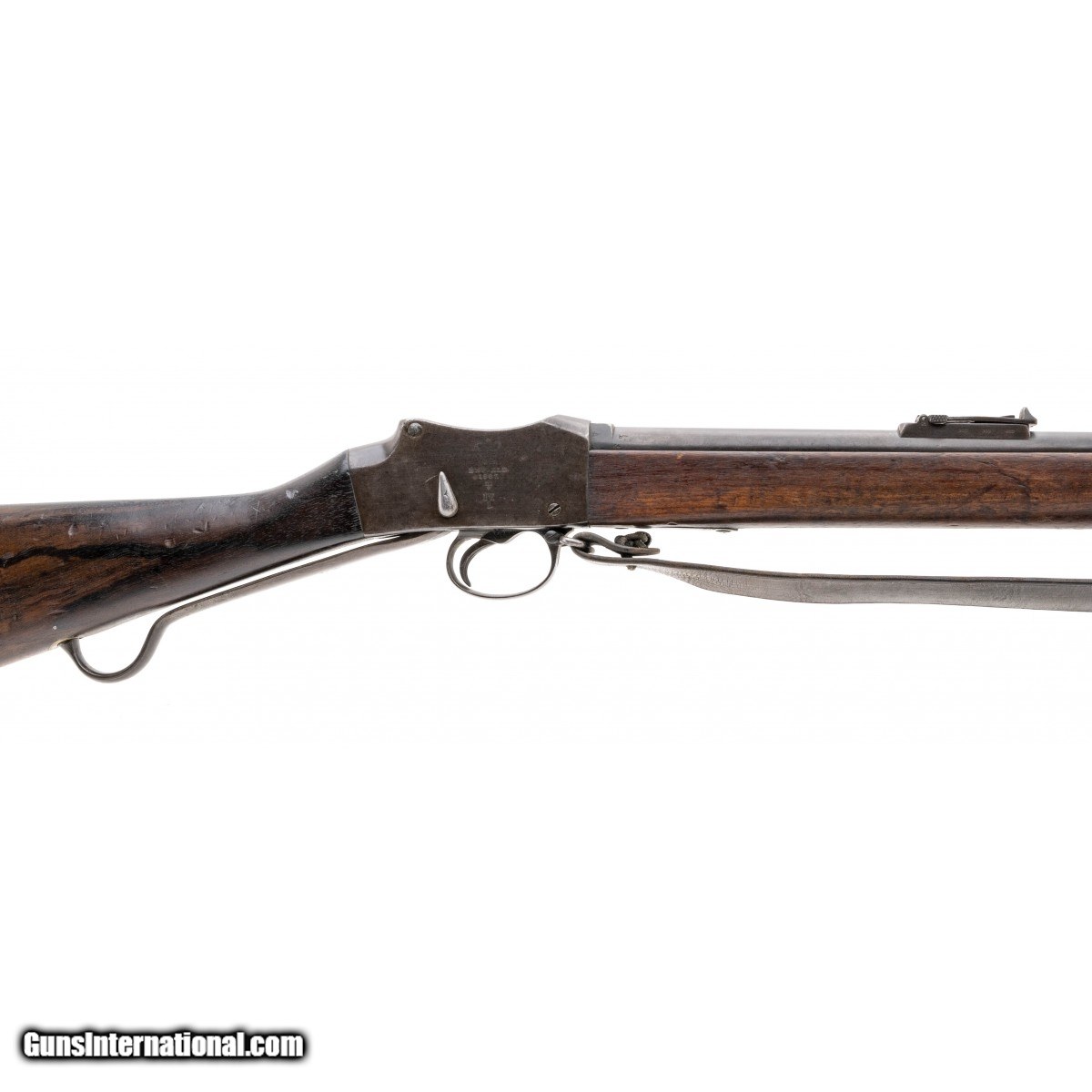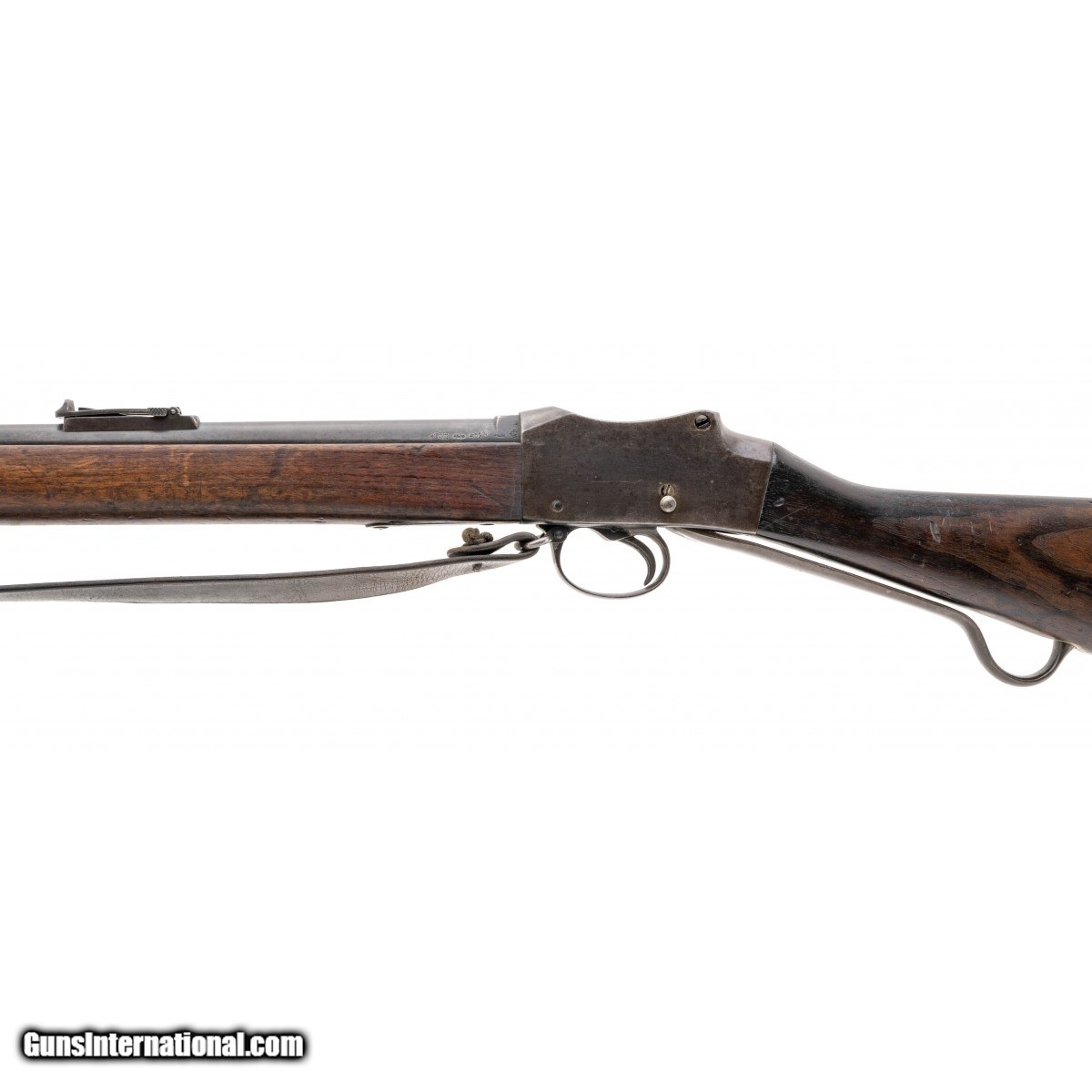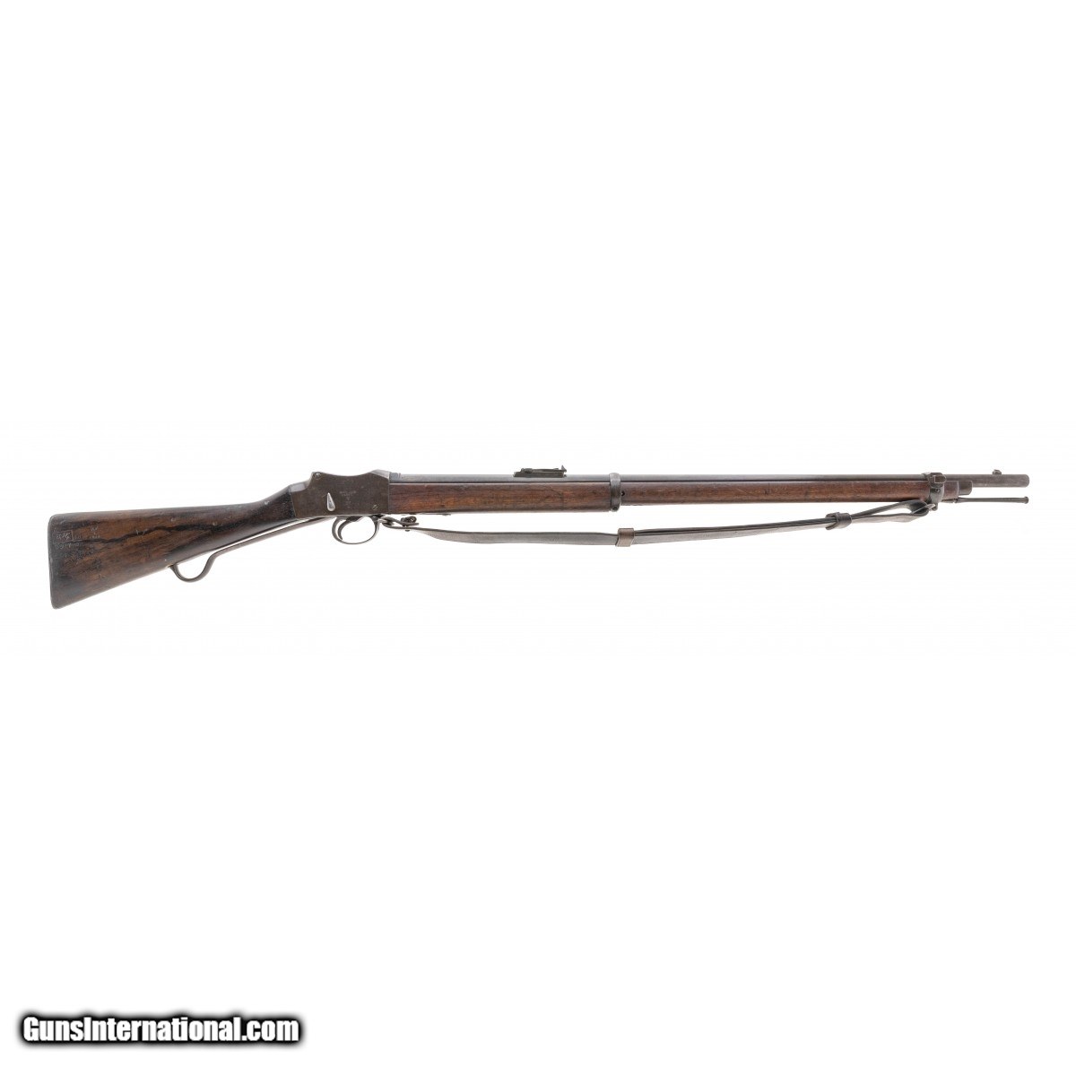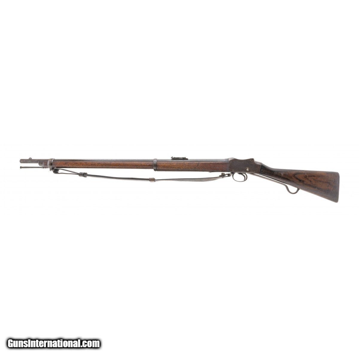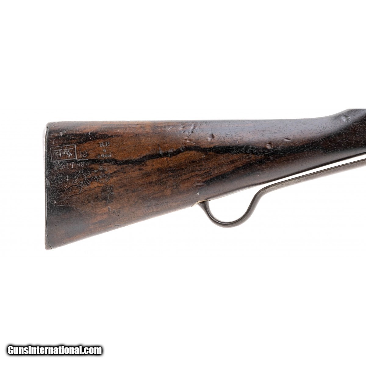 Description: " NSN, made in 1887, .577-450, 33"" round barrel. Long Lever MK lV rifle in overall good condition. Bore has strong rifling visible with minor frosting in the grooves. Stock shows very minor handling wear with handsome cartouches present. This rifle went through the Rawul Pindi Arsenal in 1908. SOLD Antique: Yes |