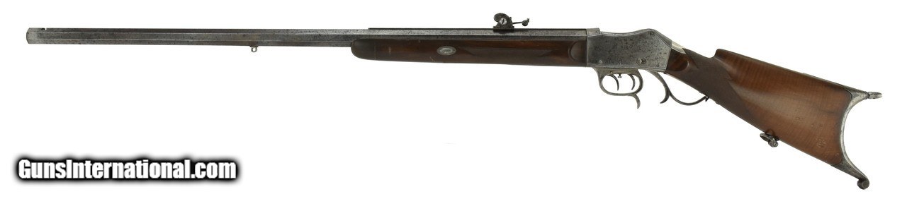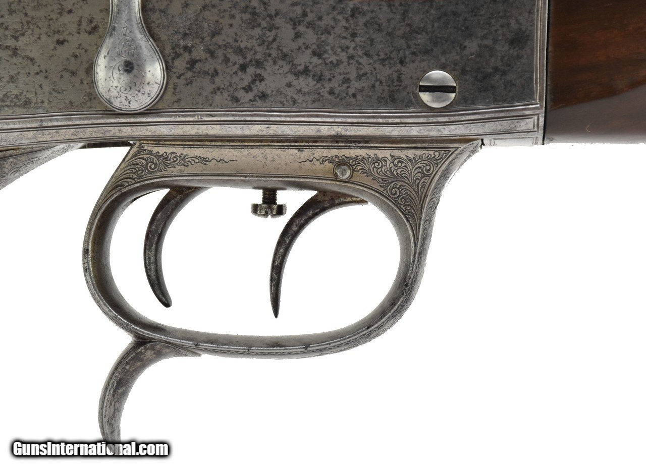 Description: "Henry Martini action target rifle. Approximately .44 caliber and appears to be a short straight case cartridge. Double set triggers. Barrel, buttplate and trigger guard and lever are fine scroll engraved. Barrel length is 31 1/2"" and has an excellent bore. Rear sight adjusts along a 12"" grooved rib for longer sight radius. Barrel is marked in gold lettering ""Verney Y Gobert a Buenos Aires"". Very good overall with a sharp grayish patina. (DALLAS LOCATION) Antique: Yes Price: $2,495.00 Contact Seller |
