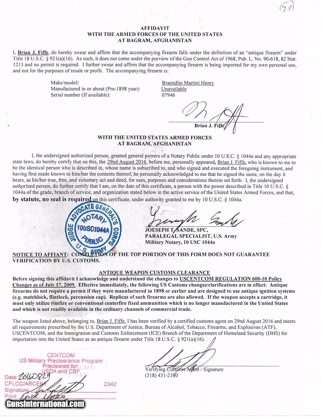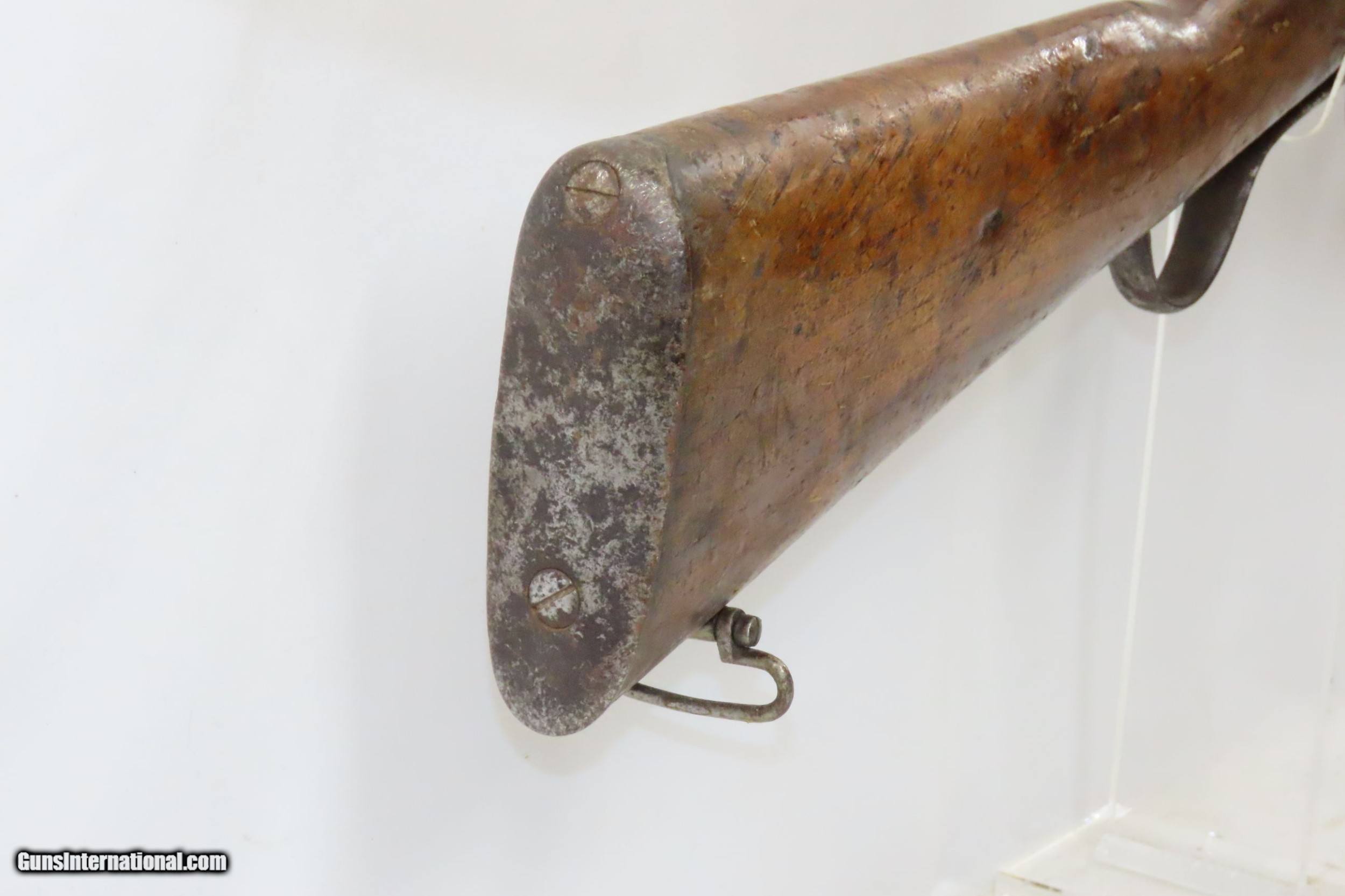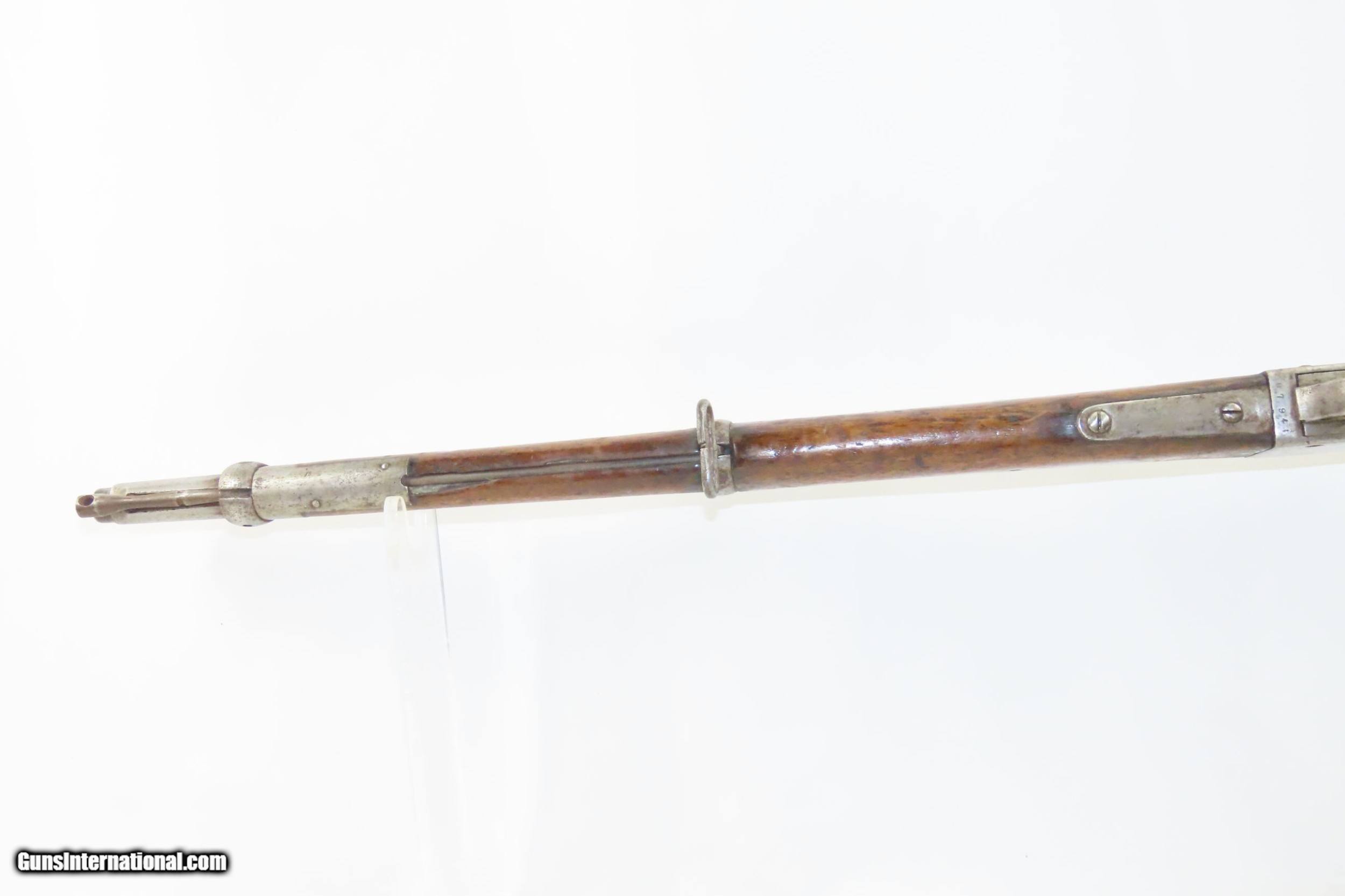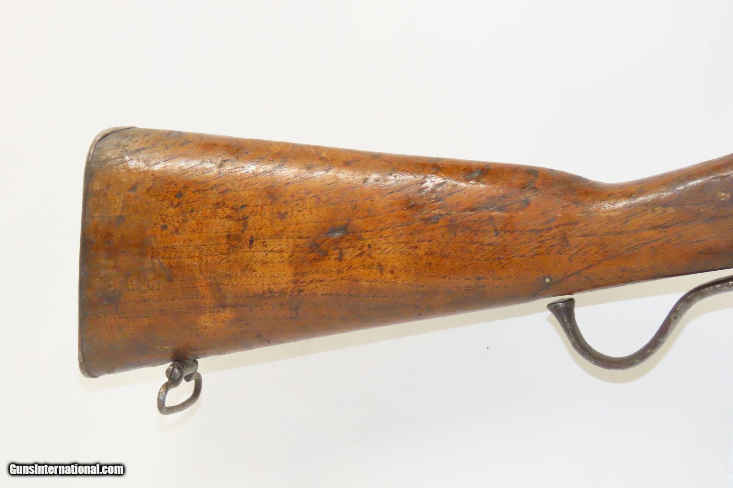 Description: BRAENDLIN ARMOURY Antique MARTINI-HENRY .577/450 Cal. FALLING BLOCK Carbine British Imperial Legacy MILITARY Rifle w/AFGHAN PAPER Here we present an antique Braendlin Armoury Martini-Henry Single Shot Falling Block Military Carbine made circa 1885 with a production run between 1871 and 1889 with somewhere between 500,000 and 1,000,000 produced. Martini-Henry Carbines are quite hard to find, especially in the original .577/.450 chambering, as many were converted to .303 British. The markings on the carbine show that it definitely has had a somewhat interesting history and came out of Afghanistan in 2016. In 1839 the British invaded Afghanistan with over 3,000 troops, attempting to expand their empire. In 1841 just one survivor emerged, a military surgeon, while the remaining all had perished. In 1878 a Second British Invasion was attempted and by 1880 it appeared that Afghanistan was firmly under British Control. Masses of men and material were poured in including Military Armorers and local production on British machinery by British workers started making small arms for use of the British Authorities in Afghanistan. This also allowed the Emir of Afghanistan to order from Non-Military sources based in Great Britain. The first iteration of the rifle came about in 1871 and was adopted by the British Army to replace the Enfield Snider Breech Loading Rifles that were being phased out. The action is based on the patent by American and Boston native Henry O. Peabody, which was improved by Swiss inventor Friedrich von Martini. The new polygonal barrel rifling was the design of Scotsman Alexander Henry. This is where the rifle derives its name. Martini–Henry variants were used throughout the British Empire for 47 years. Like other British weapons, the Peabody-Martini-Henry saw action all over the world, and most famously in the Zulu Wars in Africa. Also included is a U.S. Armed Forced affidavit “Bring Back” paper from Bagram, Afghanistan dated August 29, 2016 listing this gun by serial number. The overall condition is good. Strong action. The bore is in good shape for is age. Solid stock, contains an expected amount of wear. The wrist has some chipping at the frame and remains stable. Legible markings. Many British proofs can be fond throughout this example. Own the original! This is a legitimate antique and not a reproduction. Barrel is 21-3/8 inches. Caliber: .577/450 Centerfire Overall condition as seen in photos. Very Fast. Very Safe. FREE SHIPPING WORLDWIDE. Delivered directly to your door by express mail! Guaranteed AUTHENTIC & Includes CERTIFICATE OF AUTHENTICITY. ancestryguns $1050 #226046 SOLD Antique: Yes |
