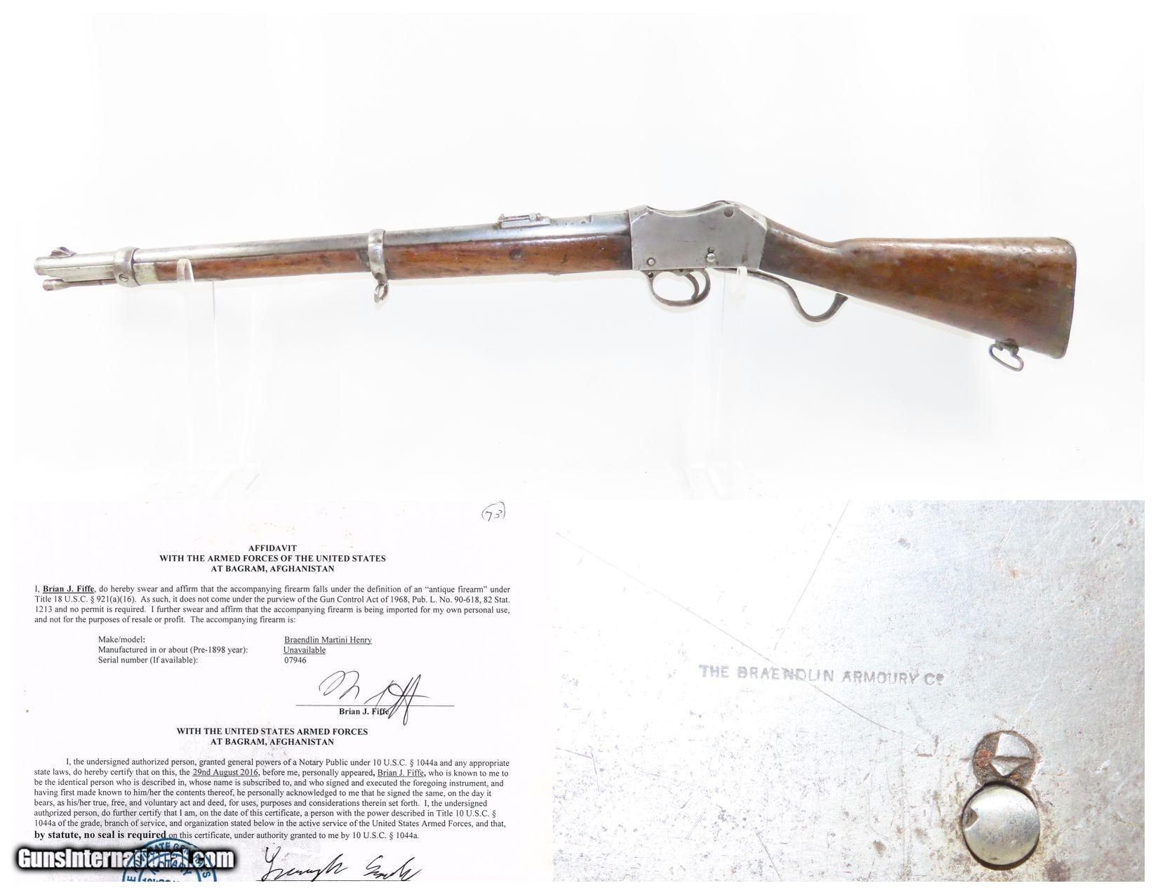 BRAENDLIN ARMOURY Antique MARTINI-HENRY .577/450 Cal. FALLING BLOCK Carbine British Imperial Legacy MILITARY Rifle w/AFGHAN PAPER