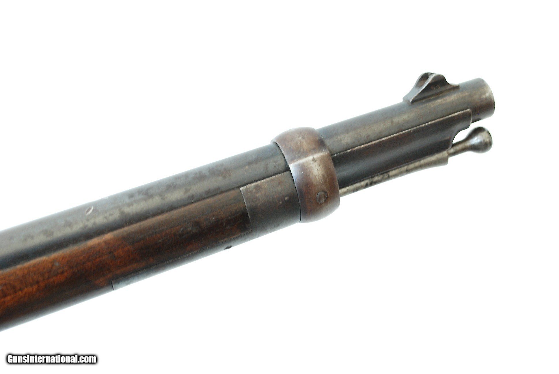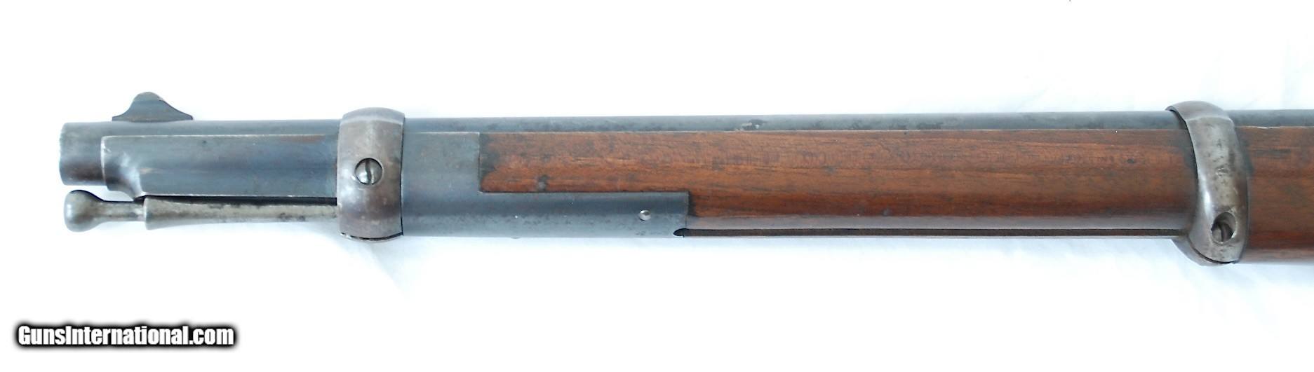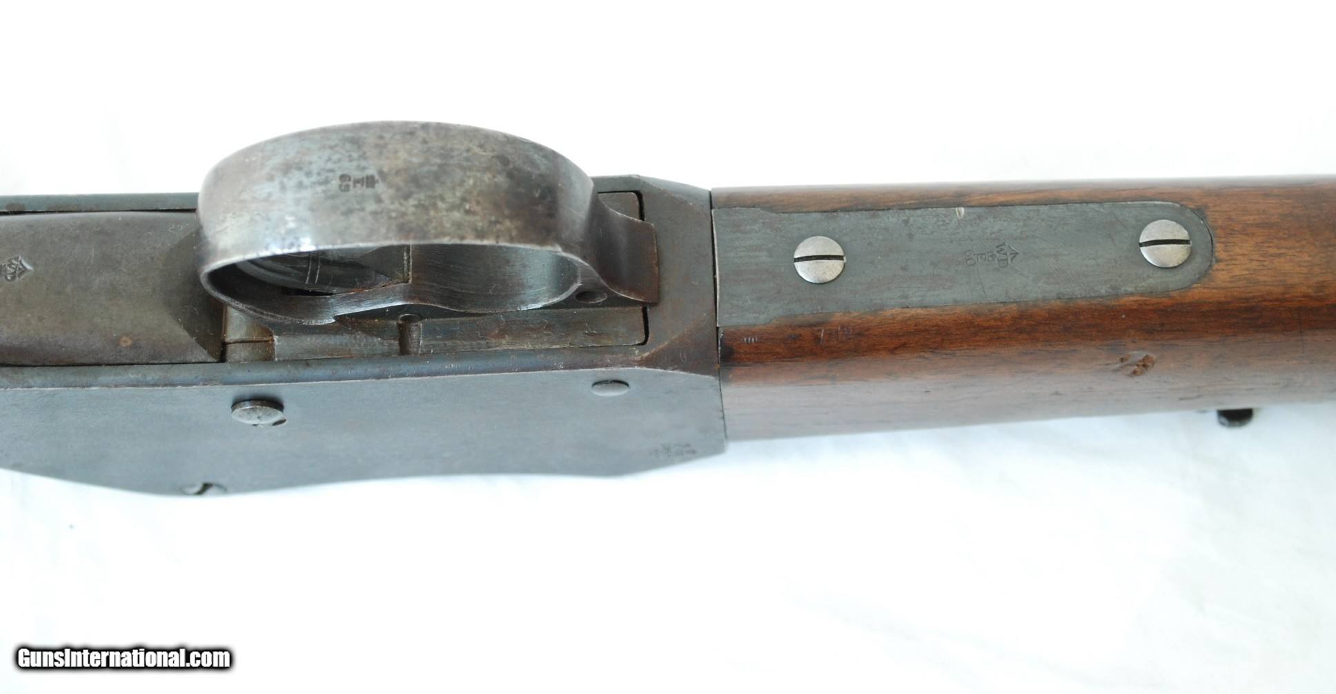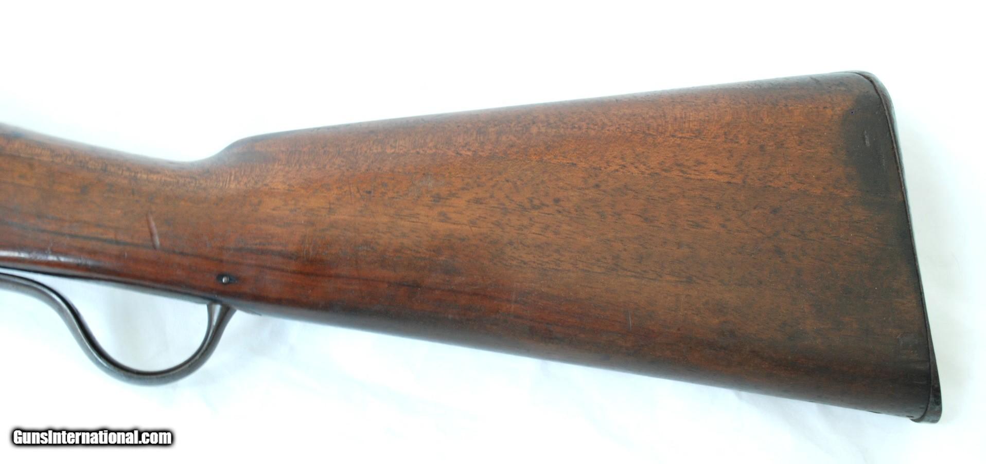 Description: This gun is in way better shape than 90% of Martini Henry rifles out there. It is completely untouched, with nice open grain walnut stock that shows crisp arsenal cartouches. Metal still has a lot of original blue, bore is excellent with strong rifling. A total of 5000 of these .577/450 cal carbines were ever made and only 850 were handed over to South Africa during Zulu wars of 1879. No license required except NJ and NY residents. Thanks, check my other listings. SOLD Antique: Yes |