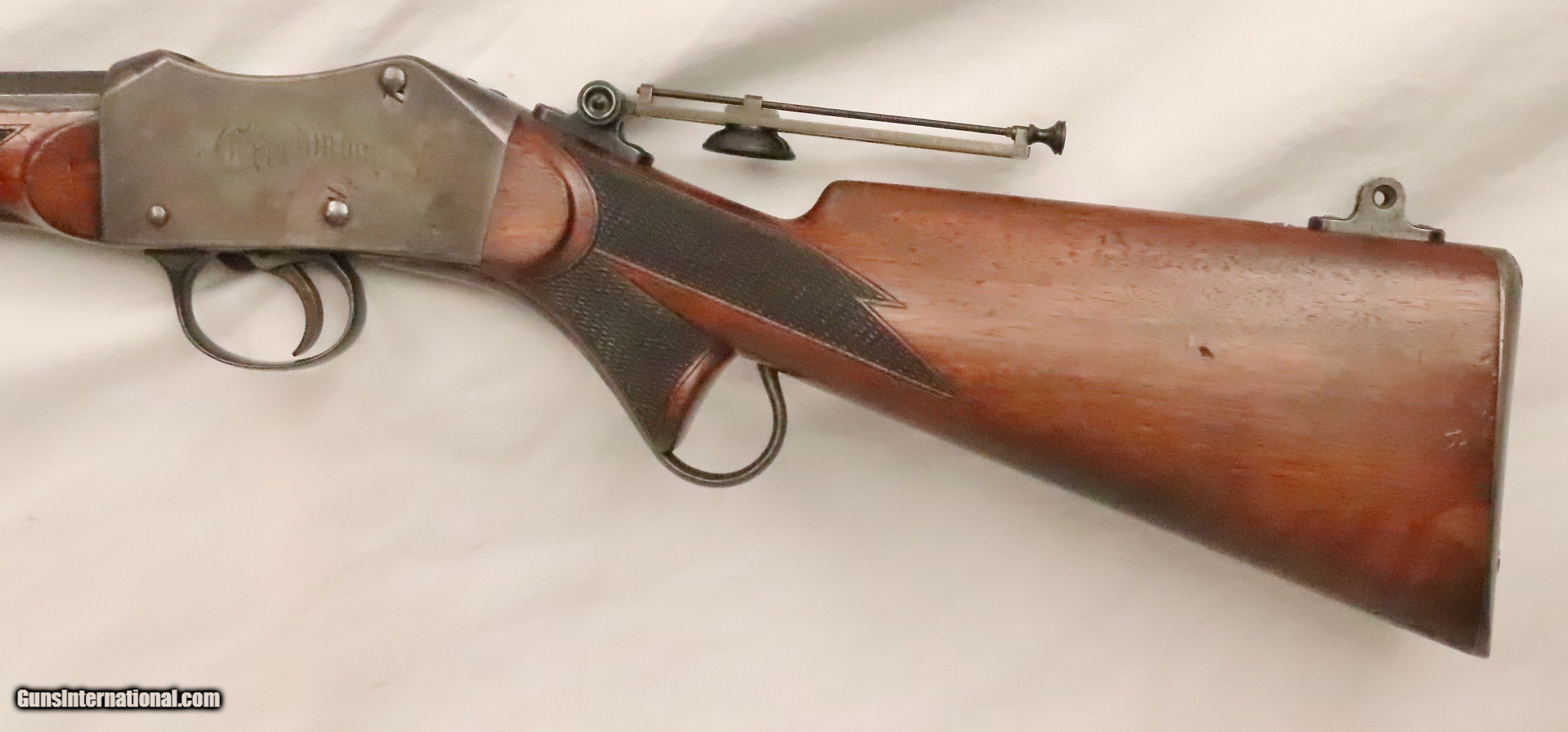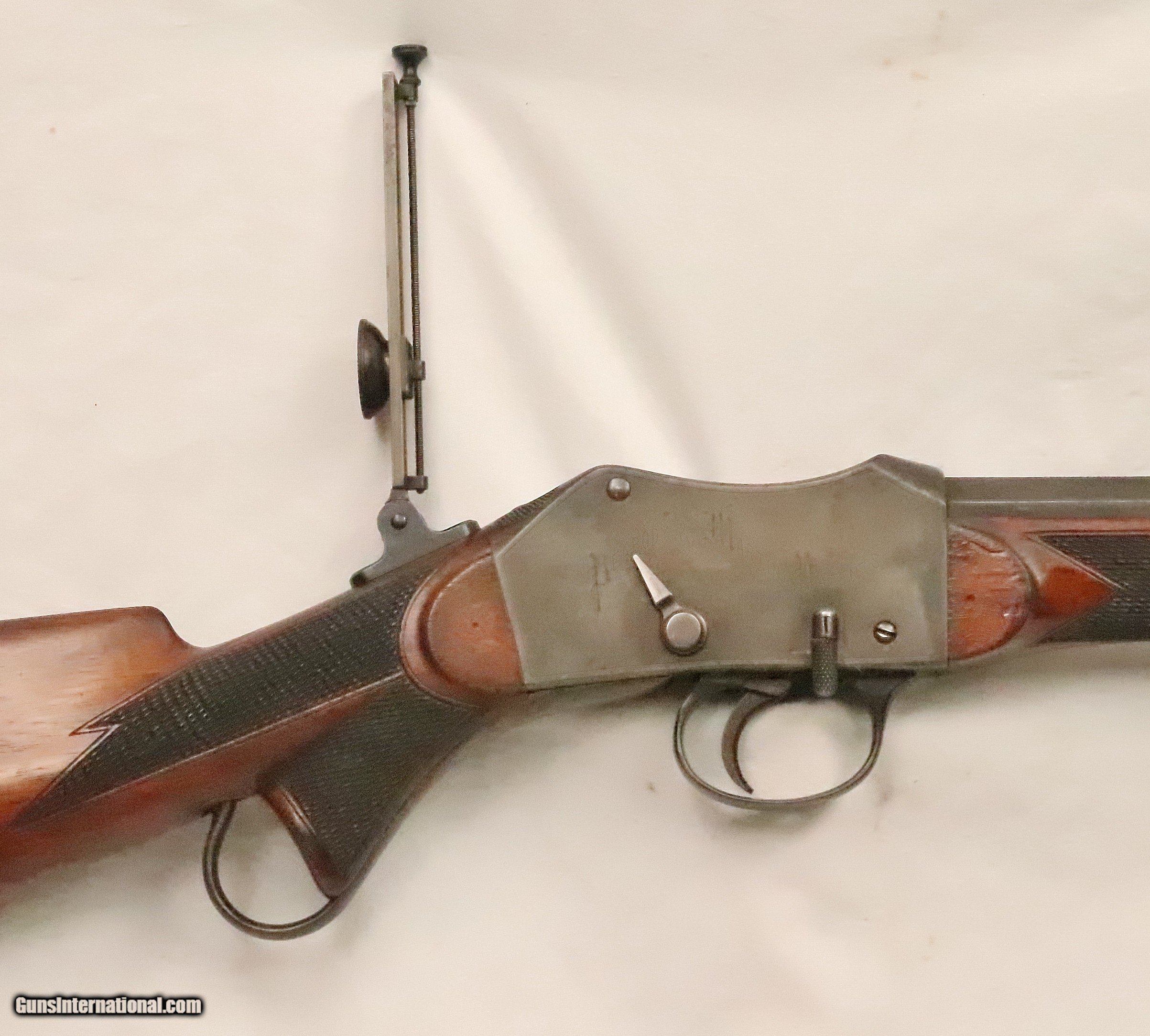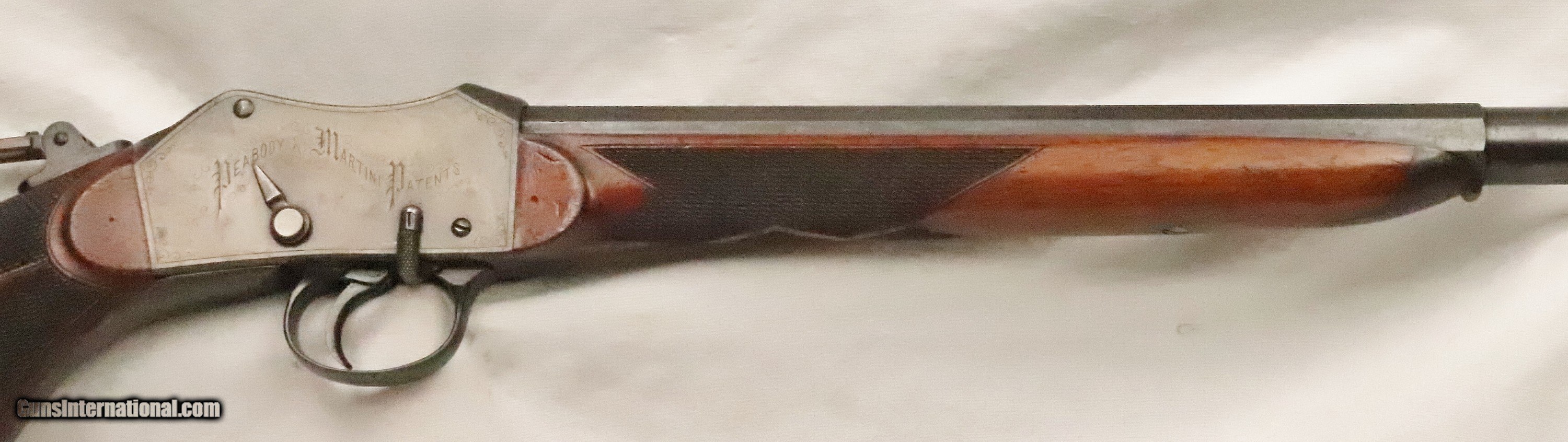 Description: The Providence Tool Co. made this early PEABODY-MARTINI, CREEDMORE target rifle around 1873. It is number 176 of less than 1000 built. It is built around a 32 inch, part round, part octagonal barrel featuring Zettler rifling. It is chambered for the .44-100 black powder cartridge and retains an excellent bright bore. The exterior surface is starting to turn brown but without corrosion or pitting. The octagon flats show speckling from age. It is configured with a shotgun style butt and multi point checkering on the buttstock and forearm. The wood shows only light handling marks with no cracks. The right side of the receiver is engraved “PEABODY & MARTINI PATENTS”. The left side is engraved “CREEDMORE”. Both sides are further embellished with boarders and scrollwork. The receiver shows slightly faded color case hardening. The rifle is provided with its original windage adjustable front sight having a bubble level. The original long range folding peep rear sight is mounted in the normal position on the rear of the receiver. A second sight mounting base is mounted just ahead of the butt plate for the “Old School” back shooters. This is a very rare rifle from the Golden Age of American Marksmanship and a great addition to any collection. .44-100 caliber with a 32 inch barrel. Serial Number: 176. ANTIQUE, No FFL or C&R Required. Beaver Creek Arms TERMS & CONDITIONS Objective: As a collector of 40 years and Licensed Firearms Dealer since 1989 I have a clear definition of a satisfactory transaction. I will be paid as we agreed to, and you will be satisfied with your purchase. My goal is to establish a client list of satisfied repeat customers who will recommend me to other collectors. It’s just that simple. Exiled Saudi princes with secret funds needing change from an over paid purchase need not apply. Notice: ALL Federal, State, & Local firearms laws will be followed. I will take NO shortcuts in the process of a legal sale or transfer, so please don’t ask. SHIPPING: Shipments are made via U.S.P.S. Priority Mail, Insured, with Signature required. Packing, Shipping and Insurance cost for this Long Gun is $75.00. Checks to be made out to: Steve Clark Mailed to: 380 Beaver Creek Rd. Dillsburg PA 17019 FIREARMS: Antique firearms, pre 1898 do not require a Federal License. For purchase, a copy of a Government Issued Identification (Drivers License, Etc), showing date of birth and current address will be required. GUARANTEE: Your complete satisfaction is assured, see objective above. If you are not satisfied, please contact me within 3 days of receipt. Please don’t fire the weapon, safety, function and accuracy are NOT Guaranteed. Any weapon offered by Beaver Creek Arms is never test fired nor is there any representation the gun is functional and safe to fire. These guns are sold for collectors and only represented as used firearms that must be checked by a competent person, observe all the necessary safety precautions prior to attempting to load and fire one of these weapons RETURNS: Returns must be made within 3 days of receipt. They must be received in exactly the same condition with no parts exchanged. If it has been altered, damaged, or fired, a refund will not be made. Packing, shipping and insurance cost will not be refunded. All layaway purchases are returnable for merchandise credit only. PAYMENT: Bank check, Personal check, and Money Orders are preferred. Visa and MasterCard are accepted with a 4% processing fee. Checks, both Bank and Personal must clear before the order will be shipped, usually a 2 week delay. LAYAWAYS: A 20% deposit is required. Balance is due in 30 days. Deposits are non-refundable and are forfeited after 45 days. Layaway sales are returnable for merchandise credit only. SALES TAX: Pennsylvania state sales tax is 6% for in state purchases. The payment of other states sales tax, if applicable, for shipped items is the buyers responsibility. DISCREET: Client information will remain Confidential. Your privacy is protected. SOLD Antique: Yes |