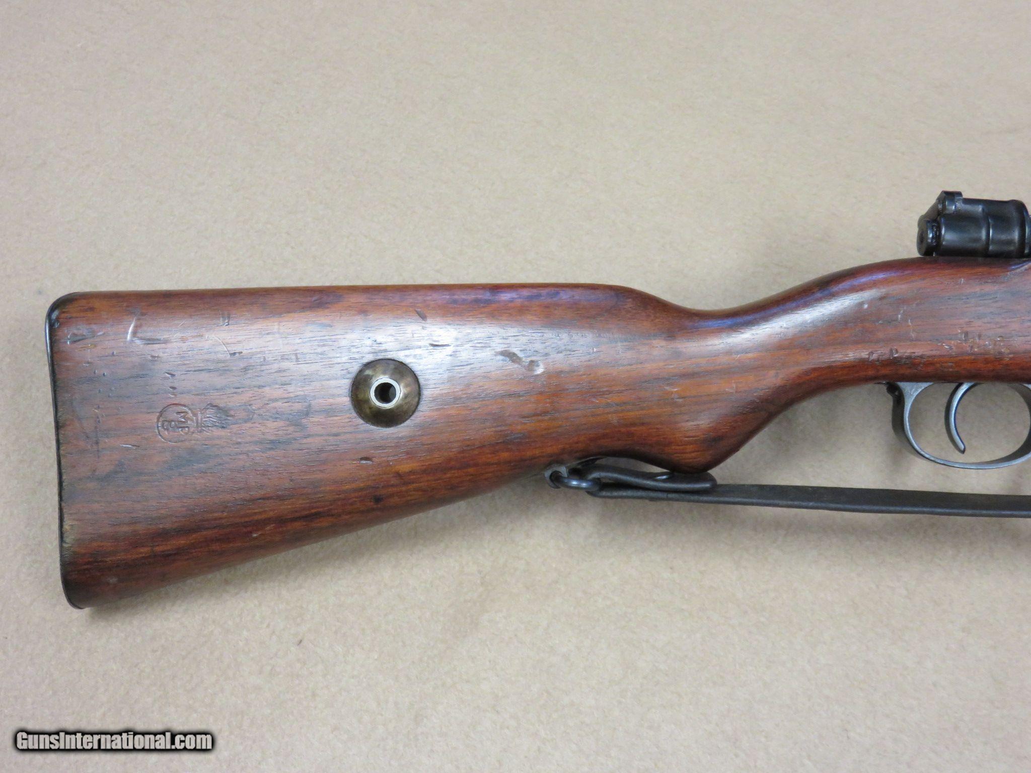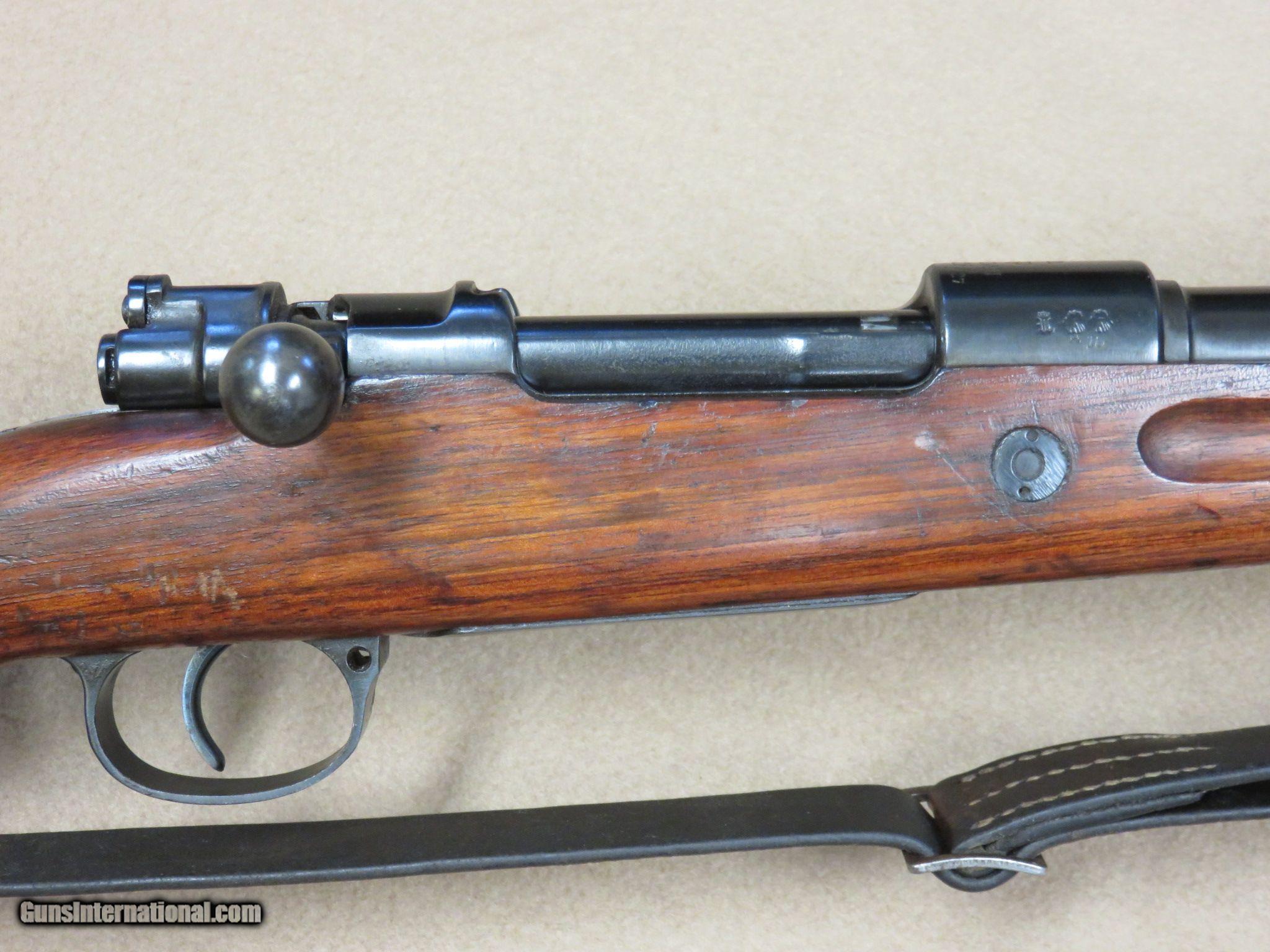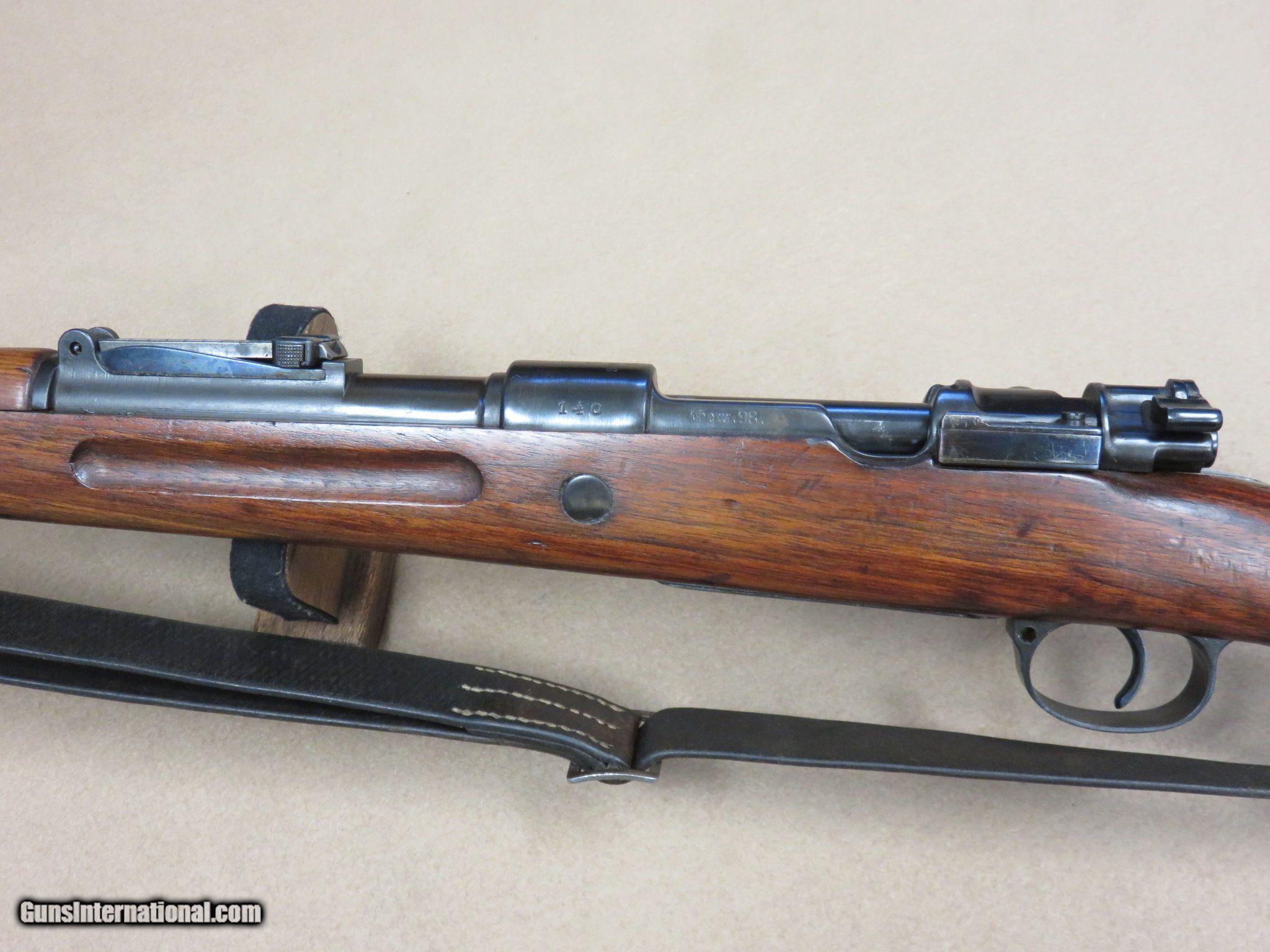 Description: This is a beautiful Weimar period rework of a WW1 Gew 98 Mauser made by Spandau in 1917. These rework variations are quite interesting and have a significant amount of history in each of them. Most of the WW1 era Gew 98s still in the hands of the Germans after WW1 ended were used extensively in the inter-war years and many again saw service under Nazi rule during WW2 in various capacities. This particular Mauser started life in 1917 as a Gew 98 manufactured by Spandau in a standard configuration as an infantry rifle. It was retained after the Treaty of Versailles and used by the German Weimar Republic for some time until being sent to the Zeithahn Depot for re-working 1927. These re-works vary to a large degree with any number of changes or parts being replaced depending on condition and availability. In some cases whole rifles were created from servicable receivers and parts stripped from otherwise unusable rifles. This particular rifle has numerous parts from other rifles on it, suggesting that everything was scrapped except for the bolt and receiver which are both numbered 140. The barrel was updated to an "S" bore barrel with the new flat rear sight instead of the Lange "roller coaster" model, while all the other Gew 98 parts appear to be original finish pieces in good condition that were stripped from other WW1 vintage Gew 98s.. All of the parts including the receiver and bolt that needed to be blued were finished and the rifle was assembled. As you can see from the pictures this rifle is very handsome and has a great look to it. It still has some fire blued parts and the bayonet lug left "in the white" that give it some attractive contrast. Everything works 100% on this Spandau and the action is smooth and locks up tight. The bore still shows nice rifling but appears dark from light pitting throughout. It comes with a nice original period leather sling. These re-work variations are a collecting field in their own right, but if you would like to have one nice example in your military collection this would be an excellent choice. It is not often we get these re-works that are this attractive and well-marked. SOLD Curio/Relic: Yes Manufacturer: Spandau Model: 1917 Gew 98 - 1927 "Zn" (Zeithahn Depot) Re-work Serial Number: 140 Caliber Info: 8mm Mauser (8x57) Manufacture Date: 1917 |