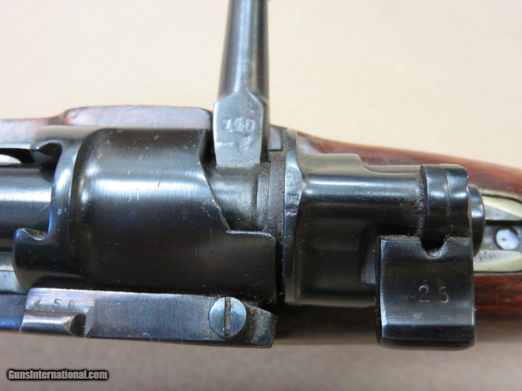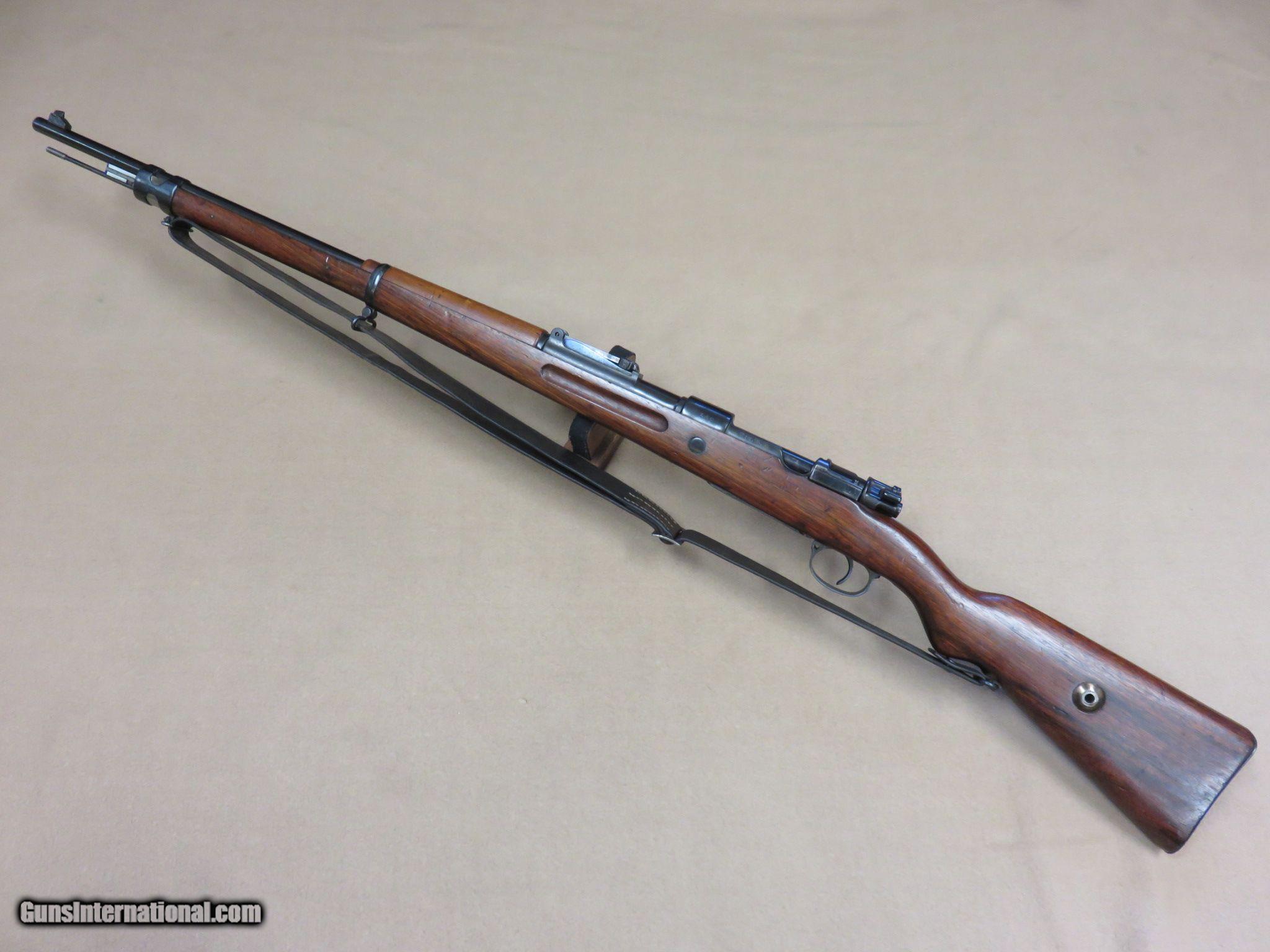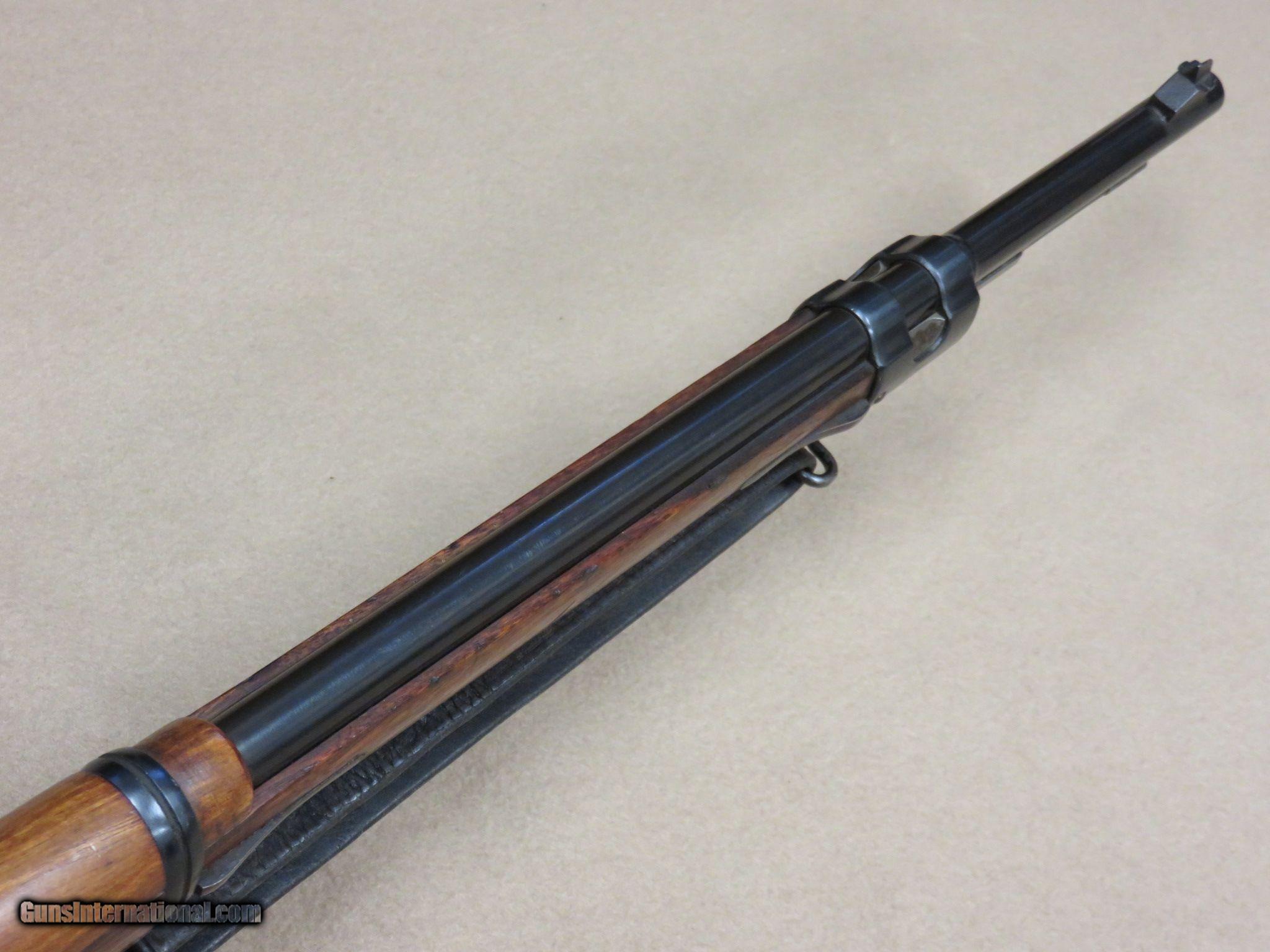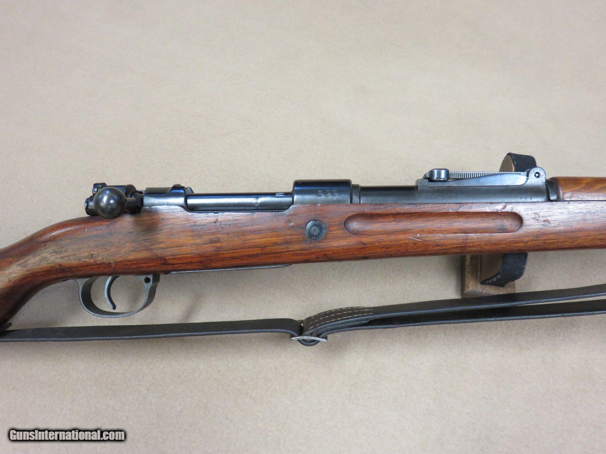 Description: This is a beautiful Weimar period rework of a WW1 Gew 98 Mauser made by Spandau in 1917. These rework variations are quite interesting and have a significant amount of history in each of them. Most of the WW1 era Gew 98s still in the hands of the Germans after WW1 ended were used extensively in the inter-war years and many again saw service under Nazi rule during WW2 in various capacities. This particular Mauser started life in 1917 as a Gew 98 manufactured by Spandau in a standard configuration as an infantry rifle. It was retained after the Treaty of Versailles and used by the German Weimar Republic for some time until being sent to the Zeithahn Depot for re-working 1927. These re-works vary to a large degree with any number of changes or parts being replaced depending on condition and availability. In some cases whole rifles were created from servicable receivers and parts stripped from otherwise unusable rifles. This particular rifle has numerous parts from other rifles on it, suggesting that everything was scrapped except for the bolt and receiver which are both numbered 140. The barrel was updated to an "S" bore barrel with the new flat rear sight instead of the Lange "roller coaster" model, while all the other Gew 98 parts appear to be original finish pieces in good condition that were stripped from other WW1 vintage Gew 98s.. All of the parts including the receiver and bolt that needed to be blued were finished and the rifle was assembled. As you can see from the pictures this rifle is very handsome and has a great look to it. It still has some fire blued parts and the bayonet lug left "in the white" that give it some attractive contrast. Everything works 100% on this Spandau and the action is smooth and locks up tight. The bore still shows nice rifling but appears dark from light pitting throughout. It comes with a nice original period leather sling. These re-work variations are a collecting field in their own right, but if you would like to have one nice example in your military collection this would be an excellent choice. It is not often we get these re-works that are this attractive and well-marked. SOLD Curio/Relic: Yes Manufacturer: Spandau Model: 1917 Gew 98 - 1927 "Zn" (Zeithahn Depot) Re-work Serial Number: 140 Caliber Info: 8mm Mauser (8x57) Manufacture Date: 1917 |