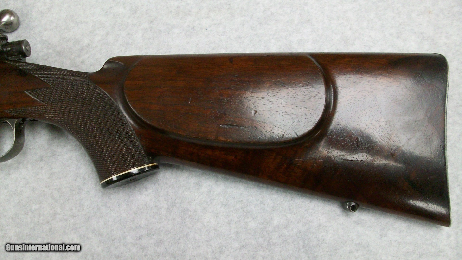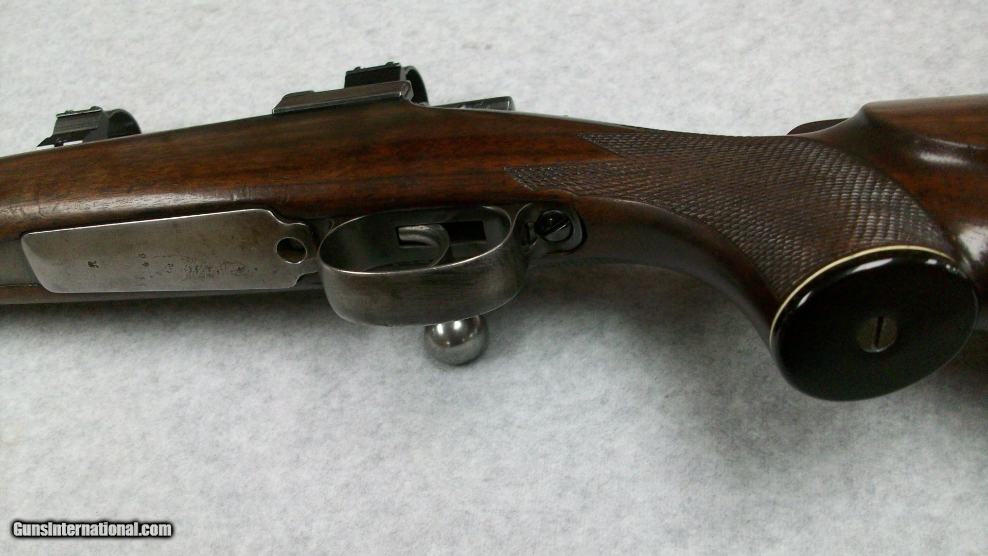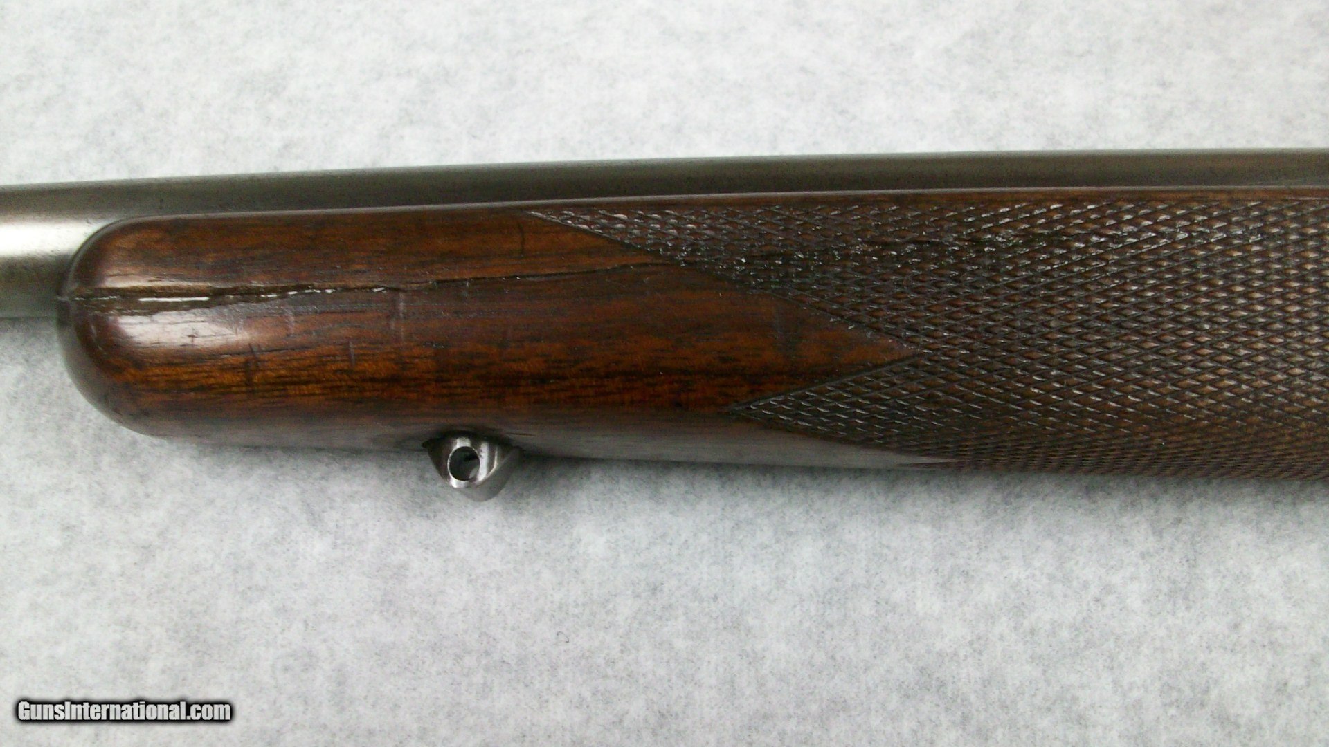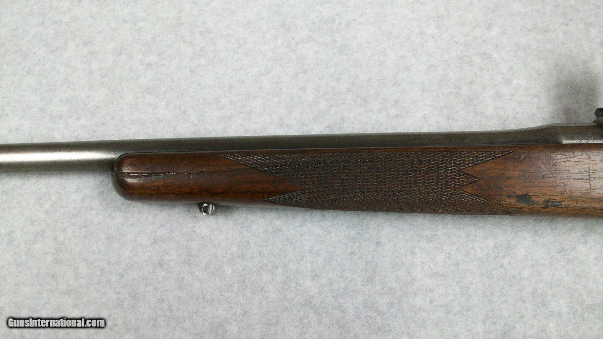 Description: German 98 Mauser sporter in .257 Roberts, Barrel by TJ Miller of Olean NY. This rifle is a diamond in the rough, forend is cracked on the left side as seen in the pictures, bore is ok and sericable but by no means perfect. Mechanics all seem good and would be fine to hunt with as is. Classic Sporting Rifle most likely from the 1950s in a great cartridge! Shipping $45 SOLD Rifle Caliber: .257 Roberts |