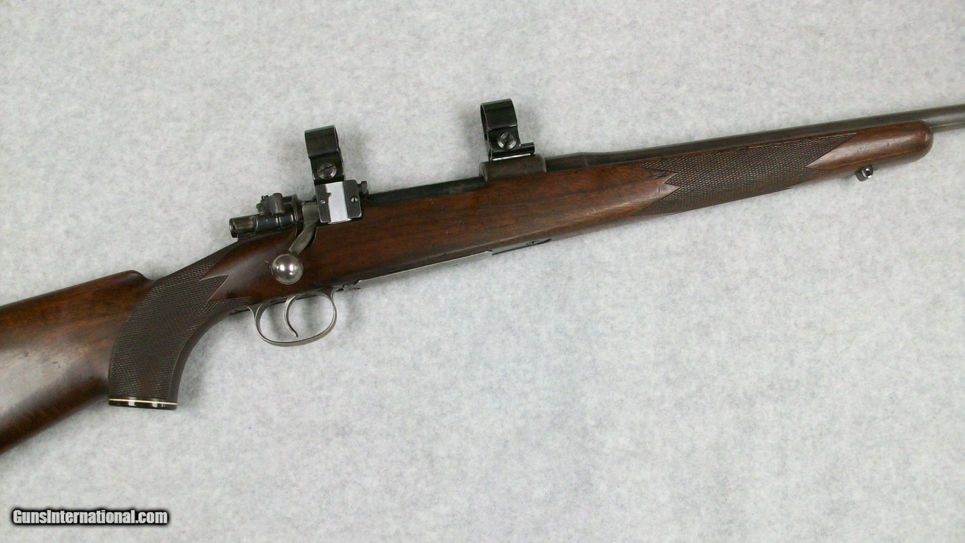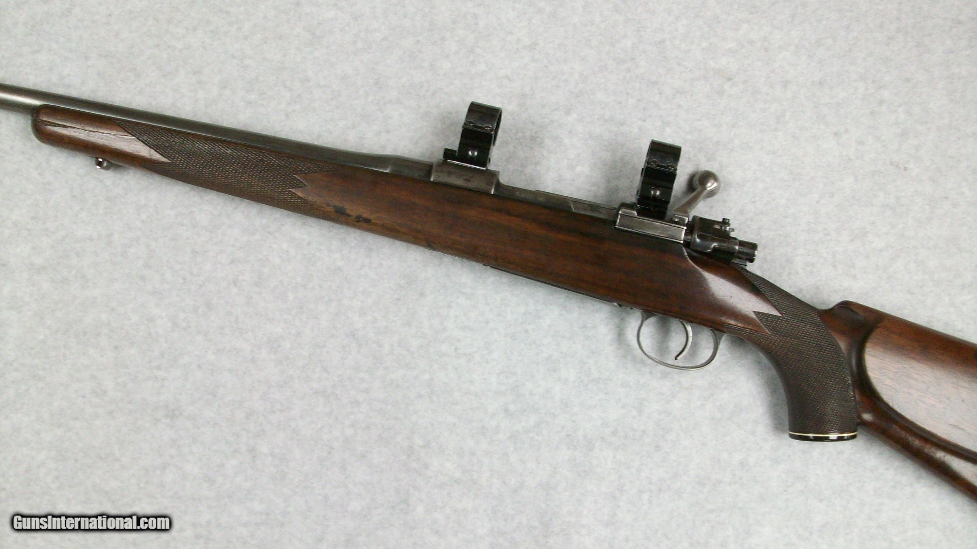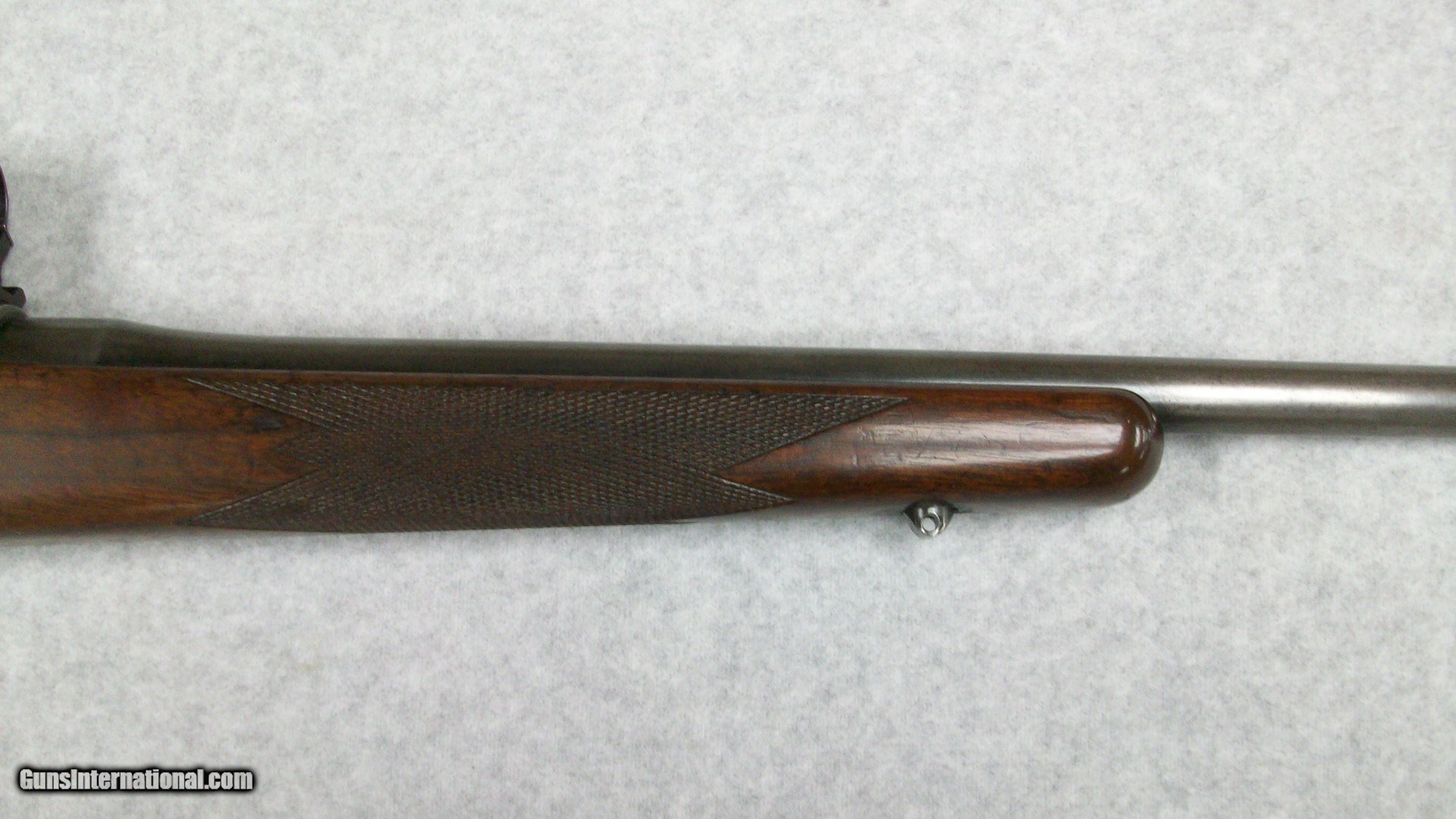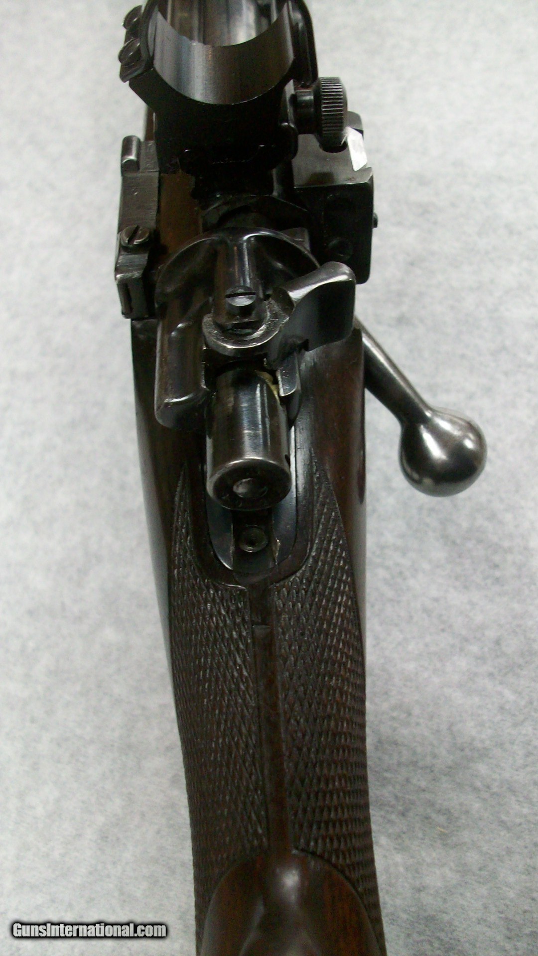 Description: German 98 Mauser sporter in .257 Roberts, Barrel by TJ Miller of Olean NY. This rifle is a diamond in the rough, forend is cracked on the left side as seen in the pictures, bore is ok and sericable but by no means perfect. Mechanics all seem good and would be fine to hunt with as is. Classic Sporting Rifle most likely from the 1950s in a great cartridge! Shipping $45 SOLD Rifle Caliber: .257 Roberts |