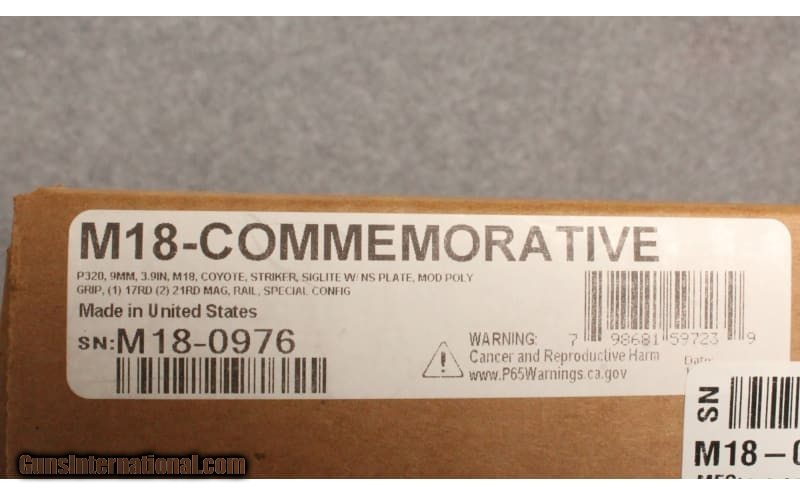 Description: This Sig Sauer M18 Commemorative is a semi-automatic pistol that is chambered in 9mm Luger. This variant shares the same components and markings that was awarded to the U.S. military contract. Sporting the coyote finish, this particular pistol is in excellent condition and has seen very light use. Not only is this a fantastic pistol, it is a great piece to add to any collectors collection or Sig Sauer enthusiasts. 9mm Luger SOLD Metal Condition: Excellent Bore Condition: Minty Barrels: 3.5 Weight: 3lbs Item Location: Tualatin, OR |