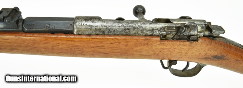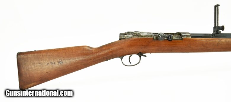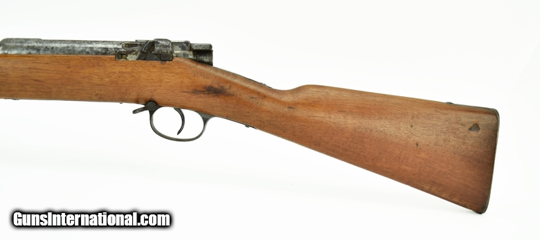 Description: German Model 71/84 11mm Mauser caliber rifle. Produced in 1888 at the Spandau Arsenal. Serial numbers are matching except for the magazine tube. Bore is excellent. Wood is very good plus with nice cartouches. Receiver has a gray patina. Very good overall condition. SOLD Antique: Yes |