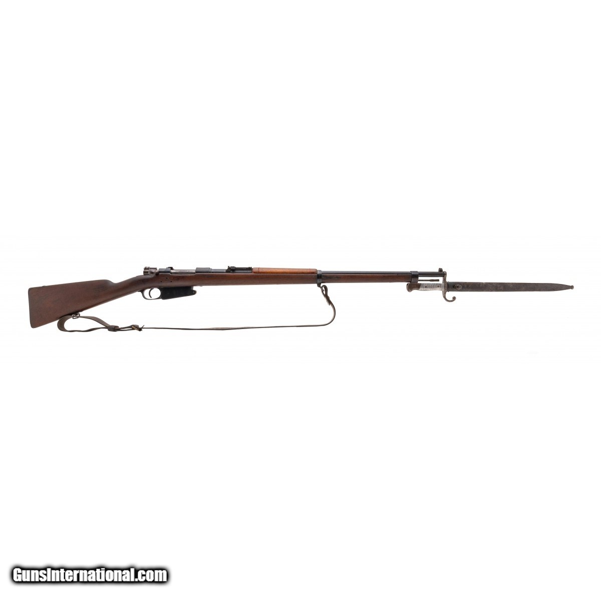 Serial No. A6364, circa 1891, 7.65x53, 29.5"" round barrel. Serial numbers are matching, bore is good with light frosting visible in the grooves. Rifling remains strong. Stock has 3 holes right side above the magazine, upper forearm has been replaced. Light wear is noted. Action functions correctly, comes original bayonet with a 15.75"" length blade. ConsignmentÂ
