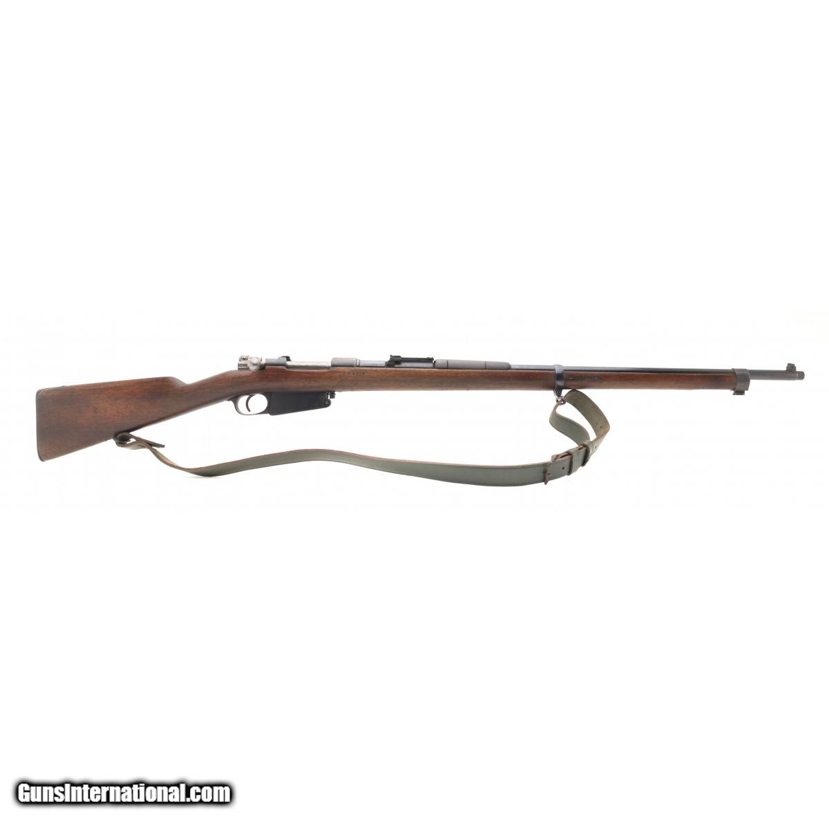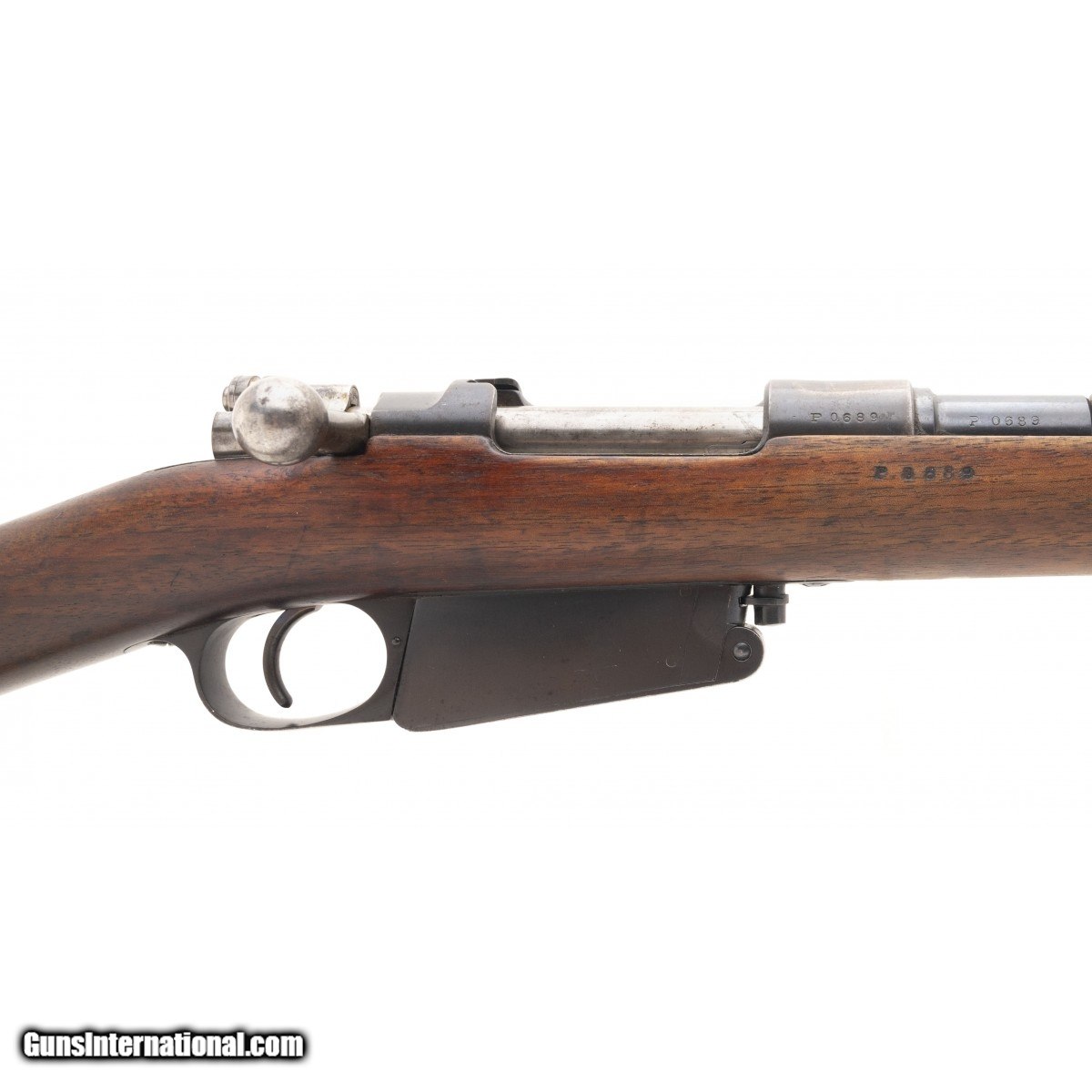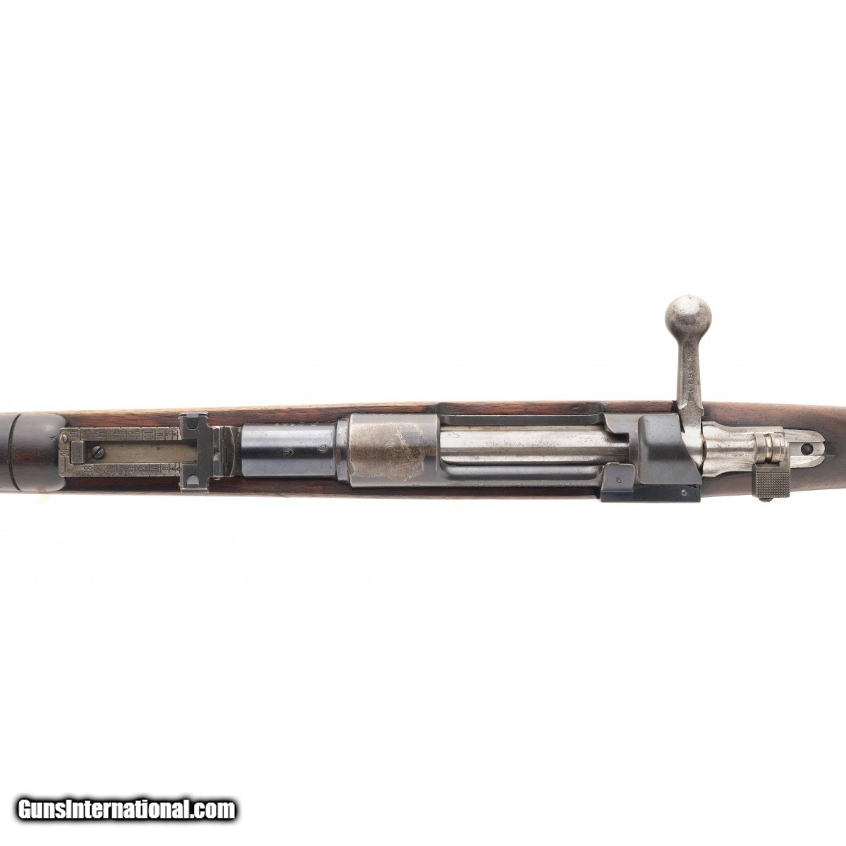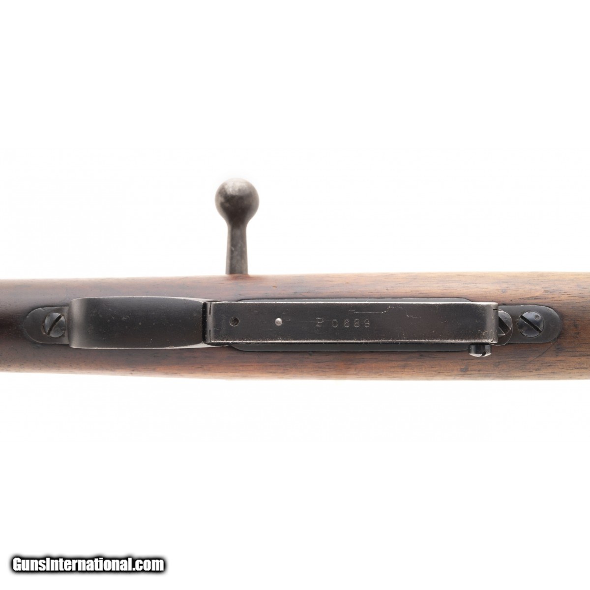 Description: " South American contract Mauser. Manufactured by Loewe. Serial numbers are matching. Crest has been ground. Bore is excellent with strong rifling. Stock is in very good condition. Small cartouche located between trigger guard and rear swivel. Comes with sling. Overall condition is very good. SOLD |