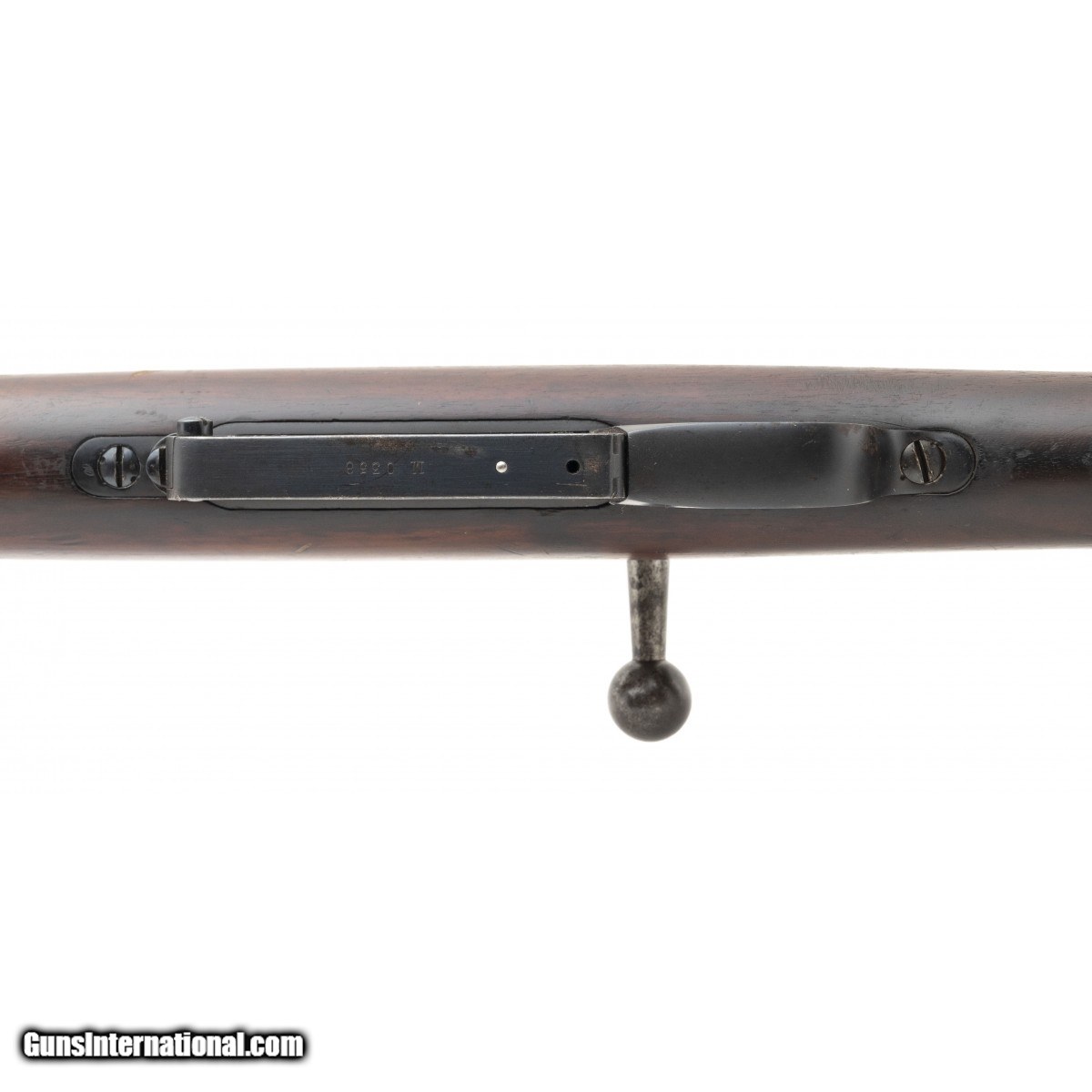 Description: " The 7.65X53mm Argentine caliber Model 1891 rifle was used from 1891 to 1909. The 29.1"" barrel has a dark bore with strong rifling which may clean better. The gun has approx. 95% blue. As is the case with the majority of these rifles, the Argentine crest over the chamber was removed prior to its sale by the government. The left side of the receiver is marked MAUSER MODELO ARGENTINO 1891 over MANUFACTURA LOEWE BERLIN. All the numbers, including the stock, cleaning rod, floorplate, and bolt are matching. The stock is fine with a mar on the left at the receiver and a repair on the left forward of the rear band. It has the oval Argentine inspection stamp on the right butt. The swivels are present. The action functions correctly. This is a nice looking example of the Model 1891 Argentine Mauser rifle. It's ready for your South American military rifle or export Mauser rifle collection. SOLD Curio/Relic: Yes |