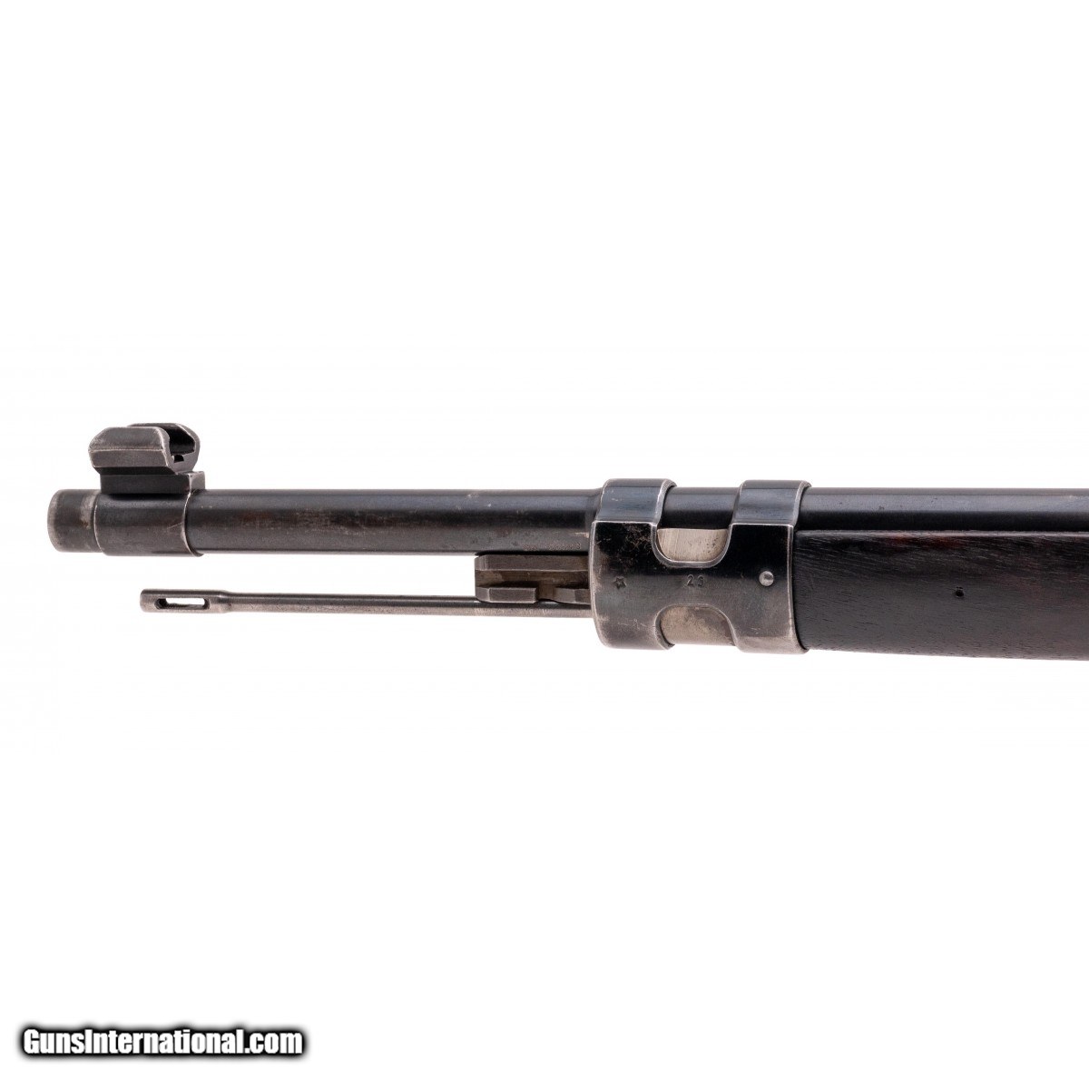 Serial No. 29, made in 1935, 7mm, 22"" round barrel. Rifle retains majority of its original blue with sharp Mauser banner and Chilean crest stamped on the receiver. Bore is excellent, stock has light handling marks with sharp cartouches visible left side. Serial Numbers are matching, action functions correctly. CONSIGNMENT