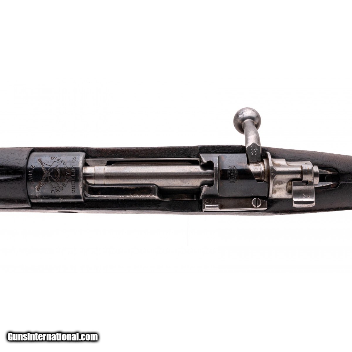 Description: " Serial No. 29, made in 1935, 7mm, 22"" round barrel. Rifle retains majority of its original blue with sharp Mauser banner and Chilean crest stamped on the receiver. Bore is excellent, stock has light handling marks with sharp cartouches visible left side. Serial Numbers are matching, action functions correctly. CONSIGNMENT SOLD |